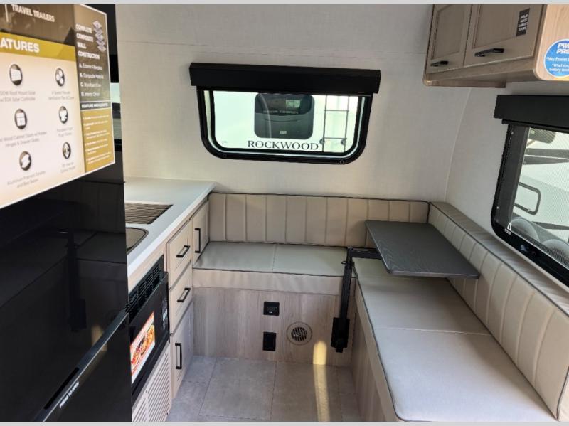 With any Rockwood GEO Pro travel trailer by Forest River you will enjoy easy towing, durable construction, and off-road capabilities with larger laminated roof! Each model is constructed with complete composite wall construction for added strength and durability, and Dexter® axles that will make towing easier than ever. Inside, you'll find sleek back up camera prep for added security, a refrigerator and a microwave, plus many other interior amenities that will make you feel at home on the road.
