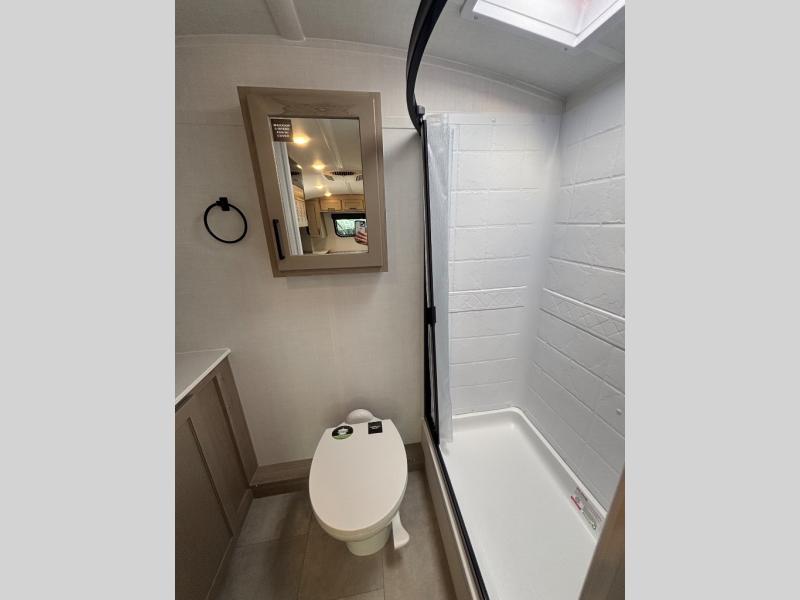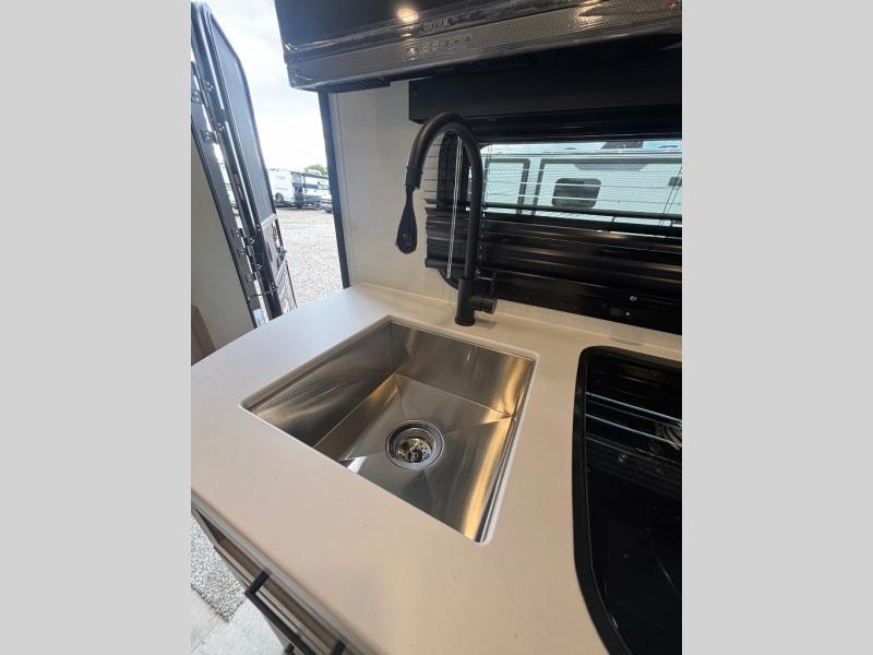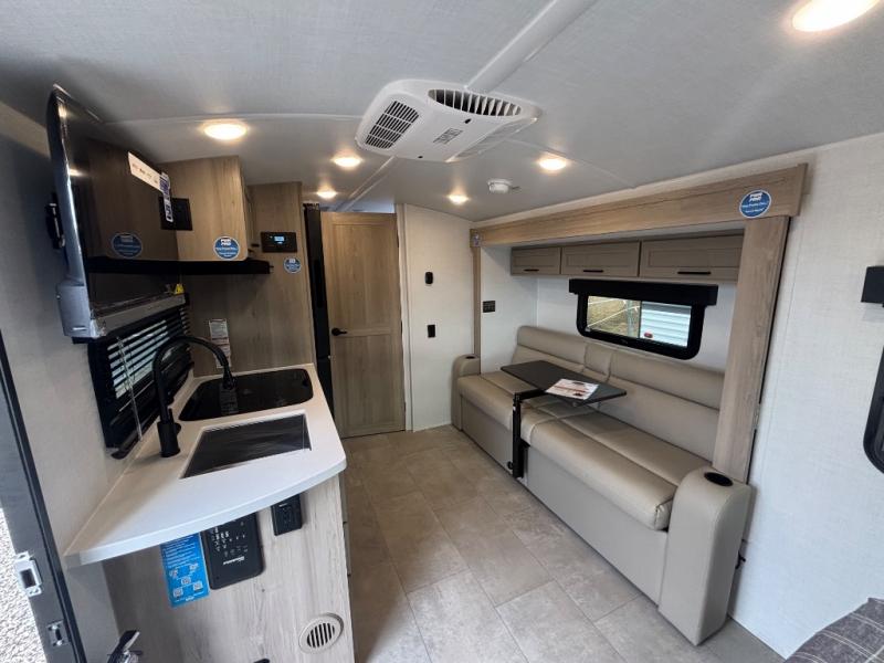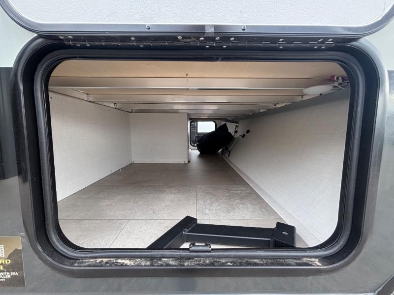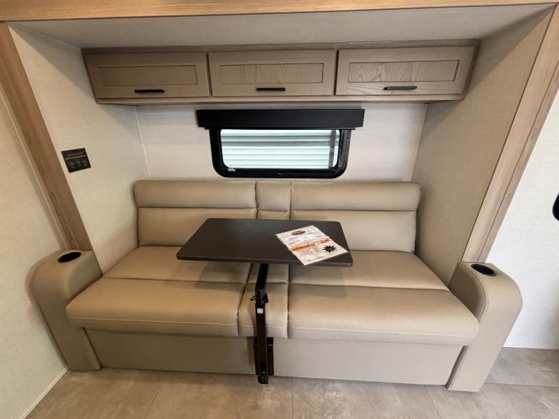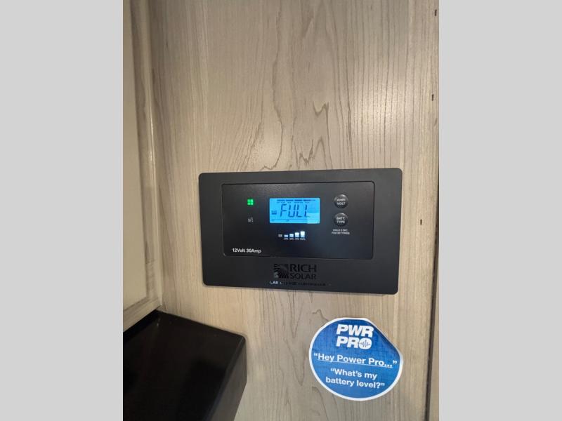 This travel trailer will feel more like home with its front bedroom and walk-around full-size bed. You'll enjoy the 32" 12V TV as you relax on the 72" sofa with a table and cupholders. The full rear bath includes a spacious shower to clean up in each day and there is a linen closet for clean towels. When you're ready to prepare dinner you'll have a three burner cooktop and microwave oven indoors, and a griddle outdoors! And don't forget the exterior storage allows you to bring along beach toys and tackle boxes. The optional Power Package available on this model includes three 200W solar panels, a side solar plug-in, a 3kW 160A inverter, and more off-grid features!