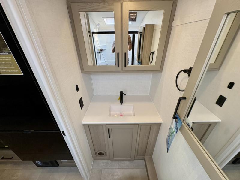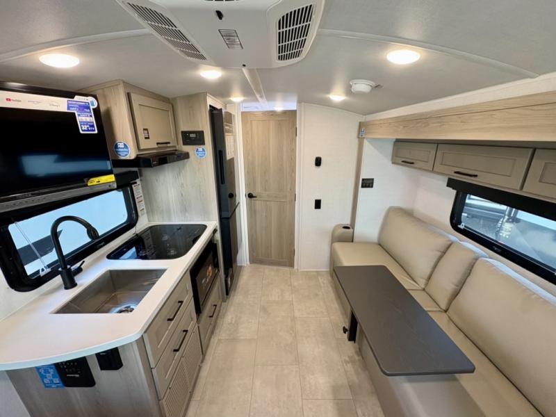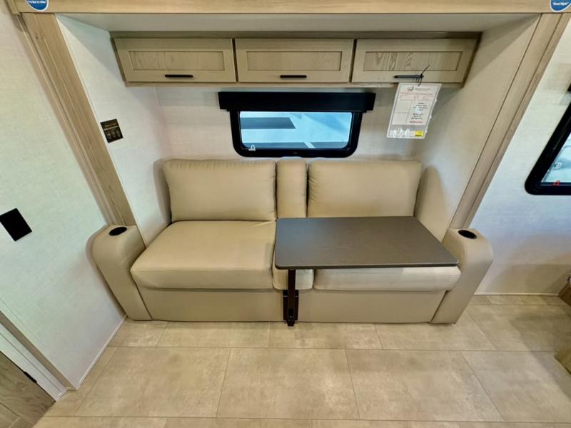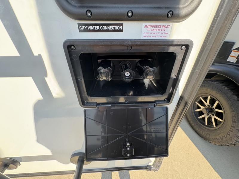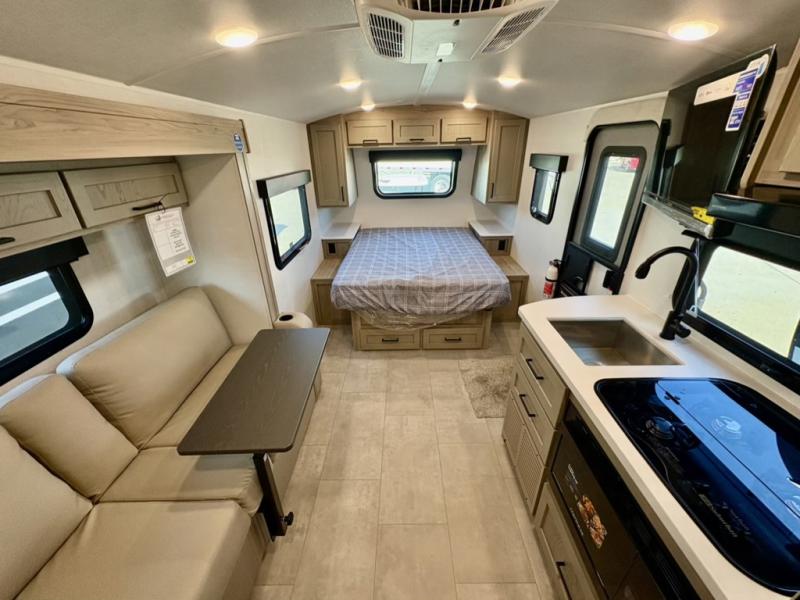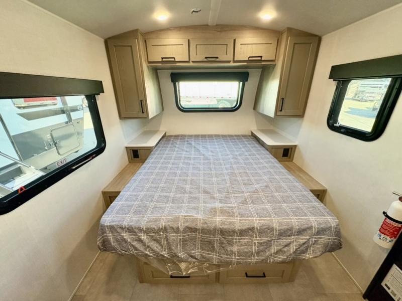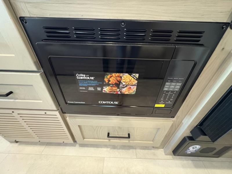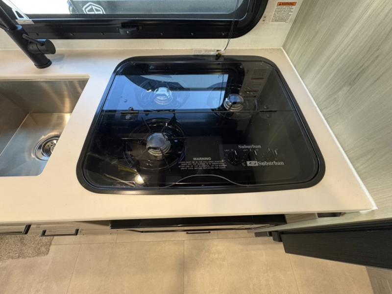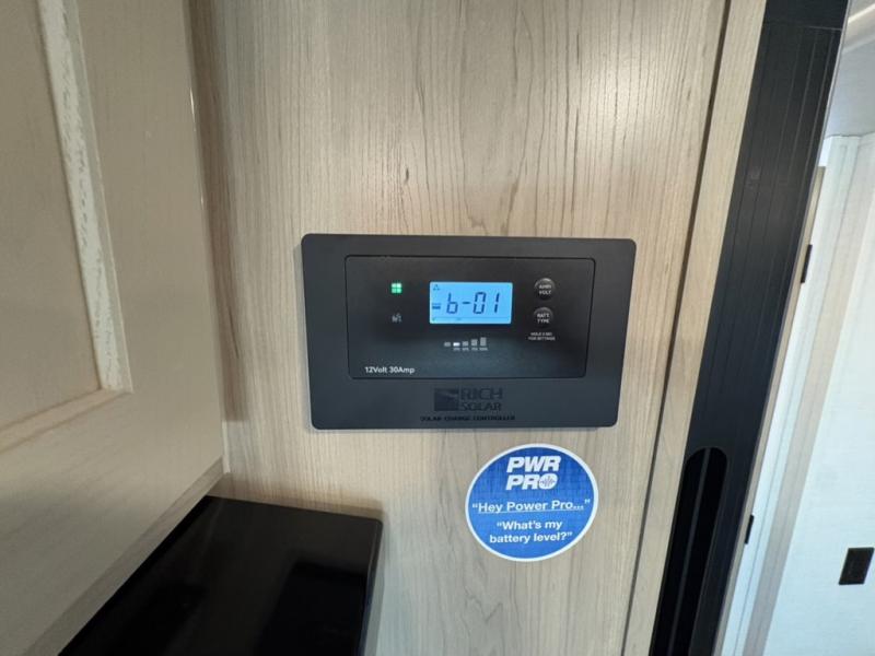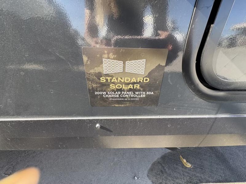 This travel trailer will feel more like home with its front bedroom and walk-around full-size bed. You'll enjoy the 32" 12V TV as you relax on the 72" sofa with a table and cupholders. The full rear bath includes a spacious shower to clean up in each day and there is a linen closet for clean towels. When you're ready to prepare dinner you'll have a three burner cooktop and microwave oven indoors, and a griddle outdoors! And don't forget the exterior storage allows you to bring along beach toys and tackle boxes. The optional Power Package available on this model includes three 200W solar panels, a side solar plug-in, a 3kW 160A inverter, and more off-grid features!