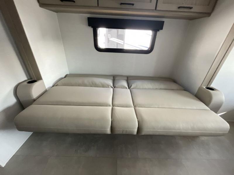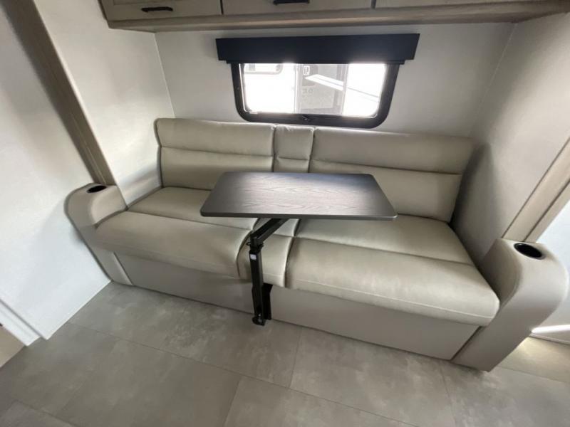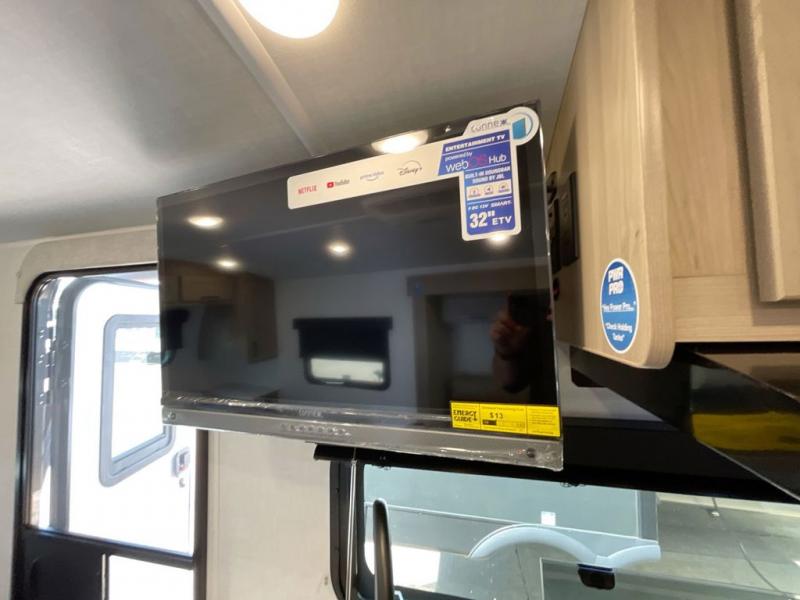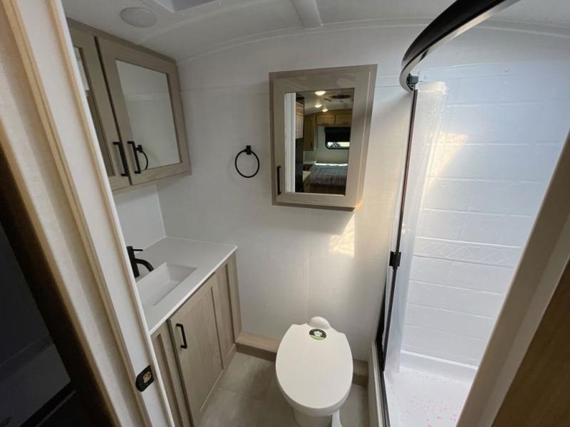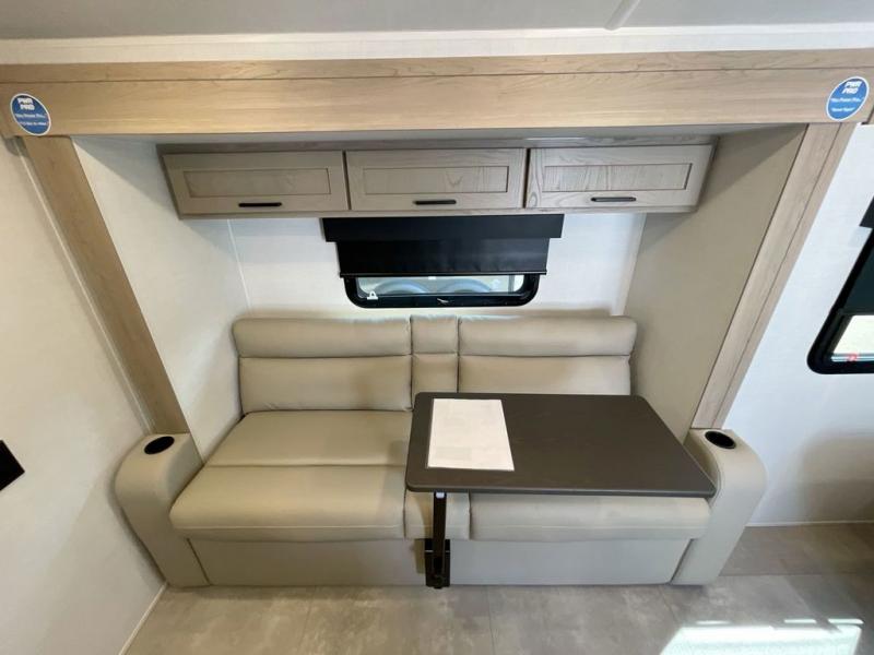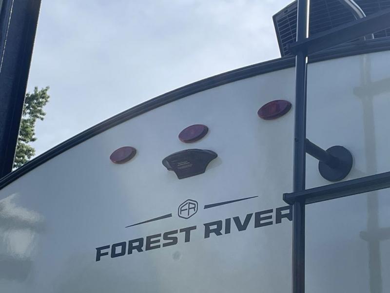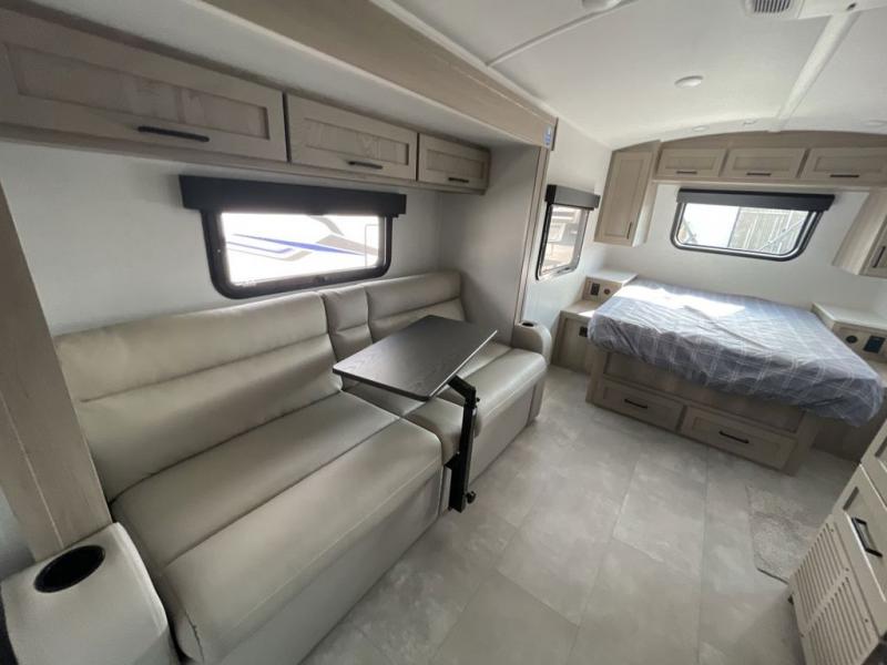 This travel trailer will feel more like home with its front bedroom and walk-around full-size bed. You'll enjoy the 32" 12V TV as you relax on the 72" sofa with a table and cupholders. The full rear bath includes a spacious shower to clean up in each day and there is a linen closet for clean towels. When you're ready to prepare dinner you'll have a three burner cooktop and microwave oven indoors, and a griddle outdoors! And don't forget the exterior storage allows you to bring along beach toys and tackle boxes. The optional Power Package available on this model includes three 200W solar panels, a side solar plug-in, a 3kW 160A inverter, and more off-grid features!