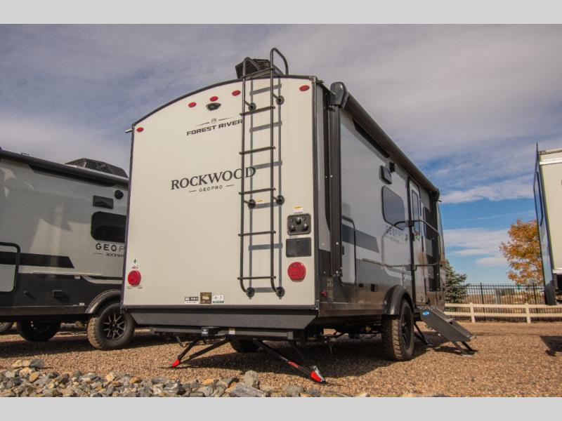 With any Rockwood GEO Pro travel trailer by Forest River you will enjoy easy towing, durable construction, and off-road capabilities with larger laminated roof! Each model is constructed with complete composite wall construction for added strength and durability, and Dexter® axles that will make towing easier than ever. Inside, you'll find sleek back up camera prep for added security, a refrigerator and a microwave, plus many other interior amenities that will make you feel at home on the road.