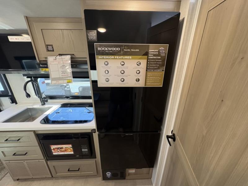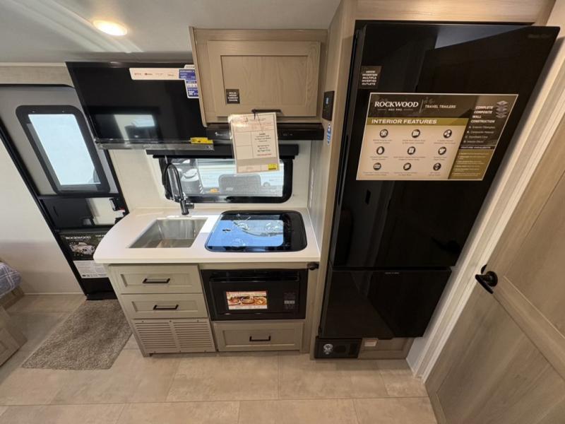 With any Rockwood GEO Pro travel trailer by Forest River you will enjoy easy towing, durable construction, and off-road capabilities with larger laminated roof! Each model is constructed with complete composite wall construction for added strength and durability, and Dexter® axles that will make towing easier than ever. Inside, you'll find sleek back up camera prep for added security, a refrigerator and a microwave, plus many other interior amenities that will make you feel at home on the road.