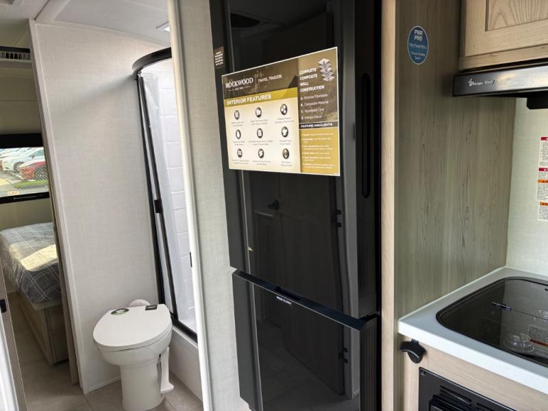 With any Rockwood GEO Pro travel trailer by Forest River you will enjoy easy towing, durable construction, and off-road capabilities with larger laminated roof! Each model is constructed with complete composite wall construction for added strength and durability, and Dexter® axles that will make towing easier than ever. Inside, you'll find sleek back up camera prep for added security, a refrigerator and a microwave, plus many other interior amenities that will make you feel at home on the road.