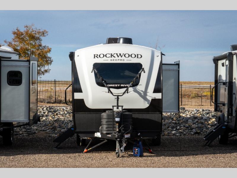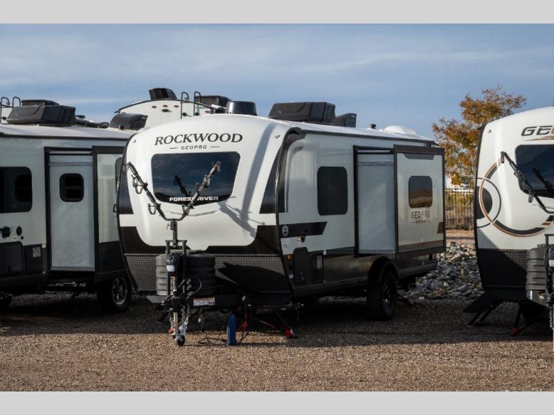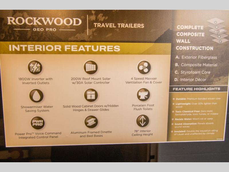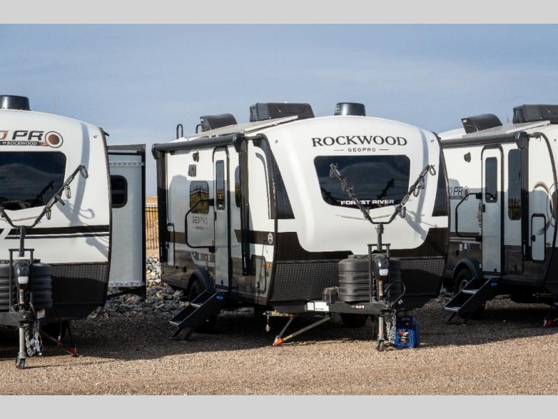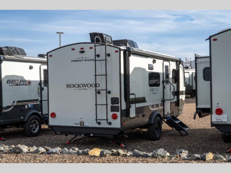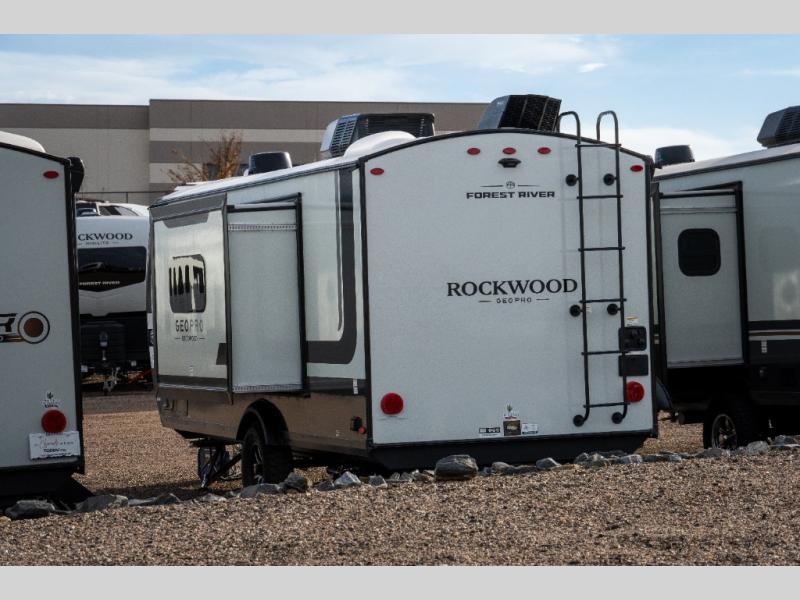 With any Rockwood GEO Pro travel trailer by Forest River you will enjoy easy towing, durable construction, and off-road capabilities with larger laminated roof! Each model is constructed with complete composite wall construction for added strength and durability, and Dexter® axles that will make towing easier than ever. Inside, you'll find sleek back up camera prep for added security, a refrigerator and a microwave, plus many other interior amenities that will make you feel at home on the road.