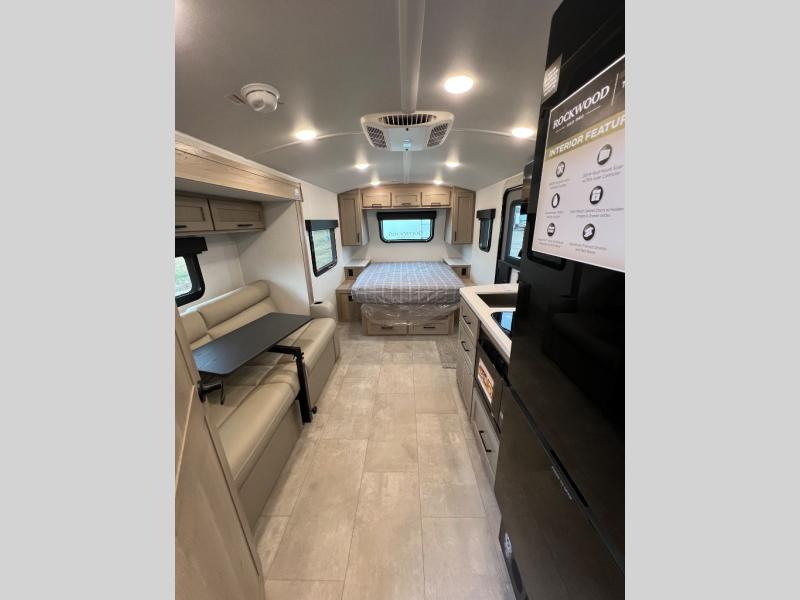 With any Rockwood GEO Pro travel trailer by Forest River you will enjoy easy towing, durable construction, and off-road capabilities with a fully laminated roof! Each model is constructed with complete composite wall construction for added strength and durability, and Dexter® axles that will make towing easier than ever. Inside, you'll find sleek back up camera prep for added security, a refrigerator and a microwave, plus many other interior amenities that will make you feel at home on the road.