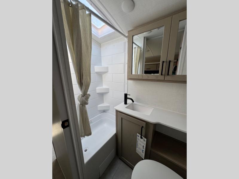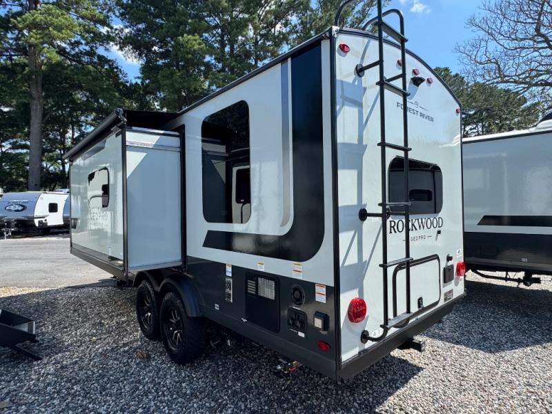 With any Rockwood GEO Pro travel trailer by Forest River you will enjoy easy towing, durable construction, and off-road capabilities with larger 15" tires and a lift kit! Each model is constructed with complete composite wall construction for added strength and durability, and the torsion axle, Rubber-Ryde suspension will make towing easier than ever. Inside, you'll find sleek roller shades for added privacy, a 12V refrigerator and a microwave, plus a 20,000 BTU furnace to keep you warm during the colder camping months.