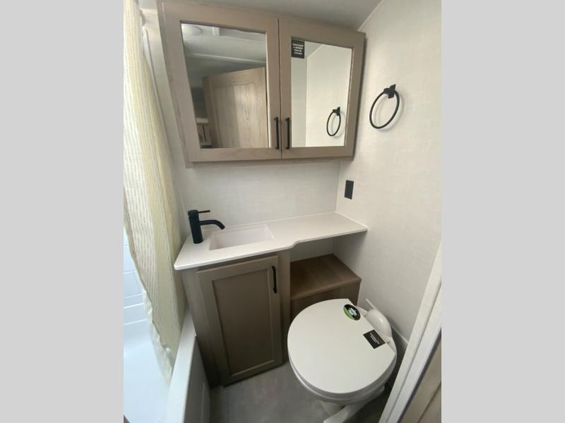 With any Rockwood GEO Pro travel trailer by Forest River you will enjoy easy towing, durable construction, and off-road capabilities with larger laminated roof! Each model is constructed with complete composite wall construction for added strength and durability, and Dexter® axles that will make towing easier than ever. Inside, you'll find sleek back up camera prep for added security, a refrigerator and a microwave, plus many other interior amenities that will make you feel at home on the road.