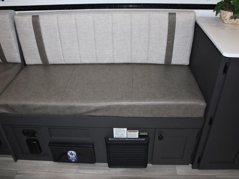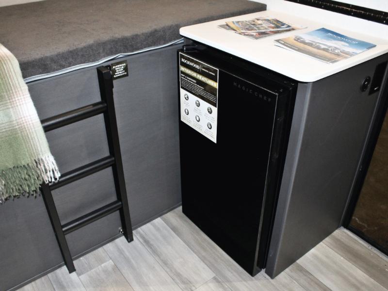 Built with Forest River’s proven craftsmanship, the Rockwood A123RG features a fiberglass laminated roof, two-tone fiberglass exterior, and diamond plate front for durability and long-term performance. The Core Convenience Package includes a MaxxAir fan, 20,000 BTU furnace, CO detector, and aluminum wheels for safety and smooth towing. Inside, you’ll enjoy LED ceiling lighting, raised panel cabinet doors, and rich Andover Sable wood cabinetry for a warm, residential feel. Optional upgrades like a power front jack and ProRac permanent crossbars add even more convenience and versatility.