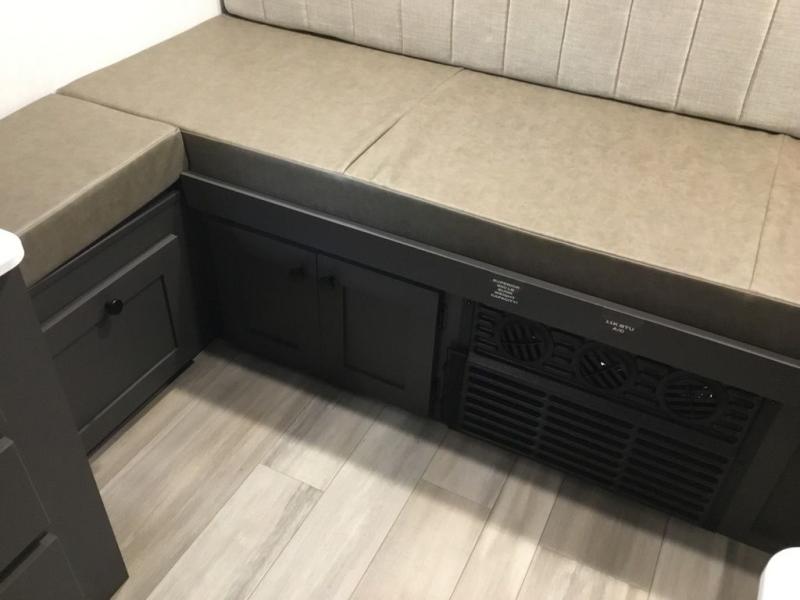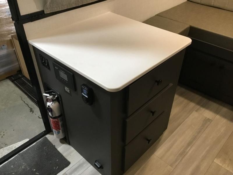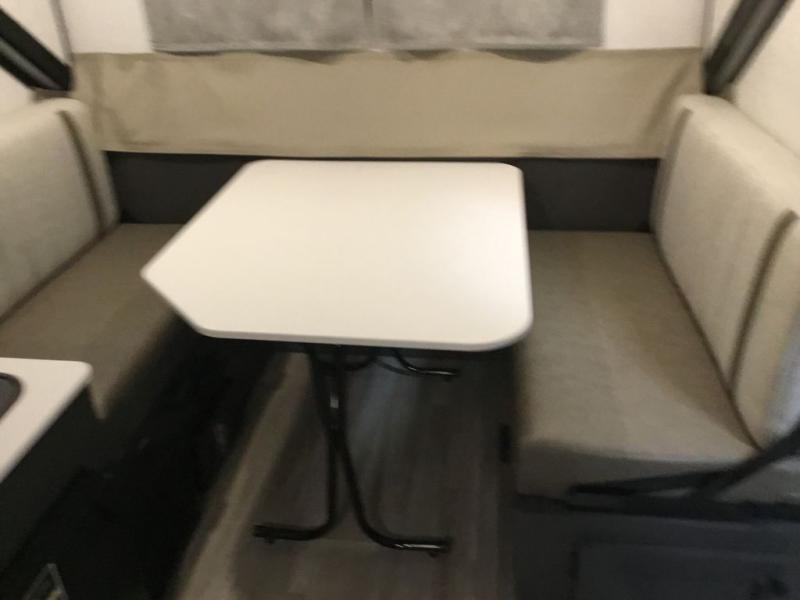 Time spent in this camper will be time well spent! You can sleep each night on the 54" x 80" gaucho bed, and the booth dinette can double as both dining and sleeping space. There is also a two-burner range that can be used to fry up a hearty batch of pancakes without even starting a fire, and the 12V refrigerator will be perfect for your perishables.