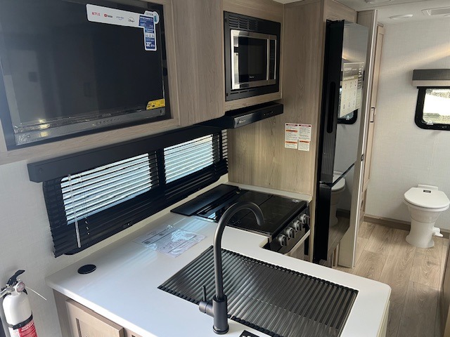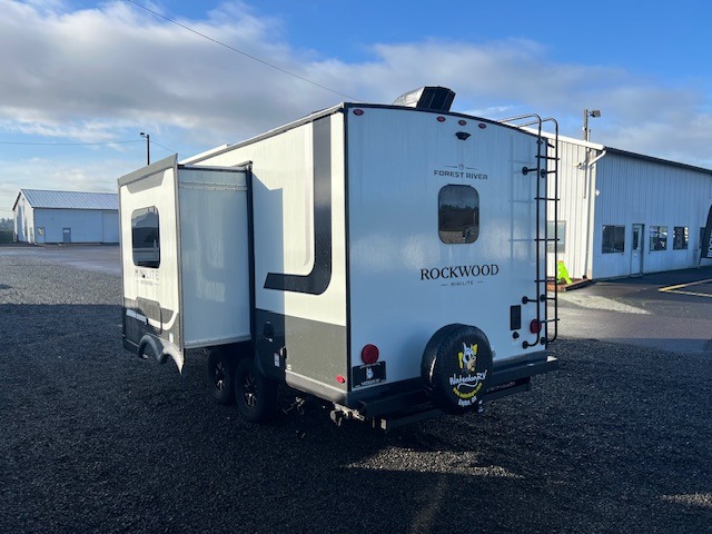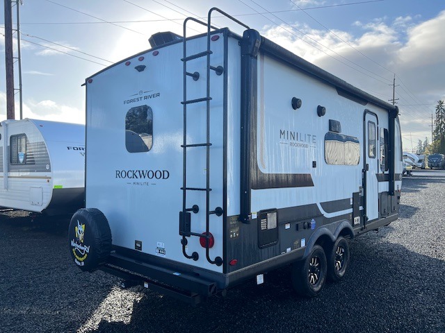 Each Rockwood Mini Lite travel trailer by Forest River is constructed with a fully laminated one-piece walkable roof, sleek frameless windows, and a six-sided full aluminum frame for strength and durability. The 12V thermostatically controlled heated tanks, plus radiant foil in the underbelly will allow you to camp well into the colder months, and the 200W roof solar panel will be perfect for a little off-gridding. Each model includes solid surface kitchen countertops, hidden hinge cabinet doors, roller shades, plus many more interior features. Having an AIR 360+ omnidirectional antenna with WiFi prep on board gives you the option to get some work done if it's needed, and the power tongue jack provides hassle-free set up, so you can enjoy more time relaxing!