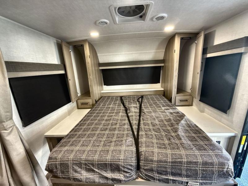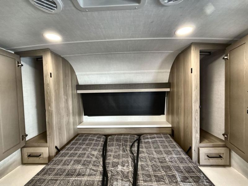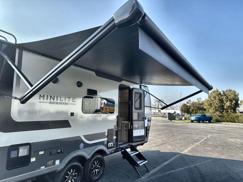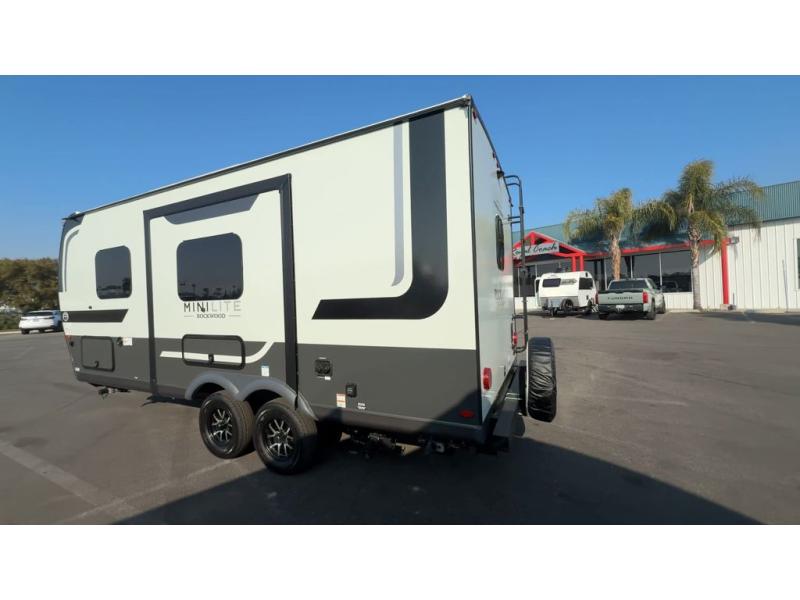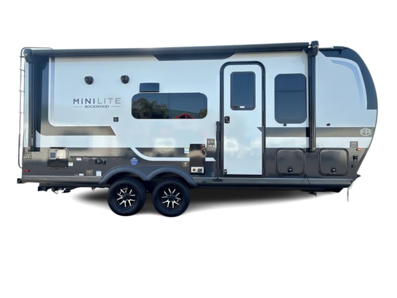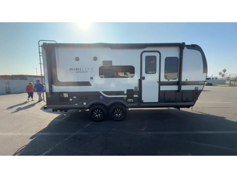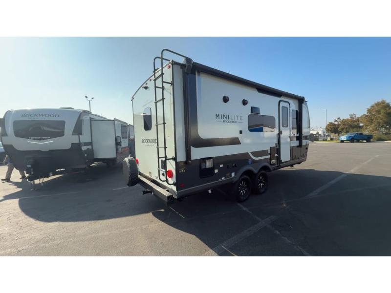 Each Rockwood Mini Lite travel trailer by Forest River is constructed with a fully laminated one-piece walkable roof, sleek frameless windows, and a six-sided full aluminum frame for strength and durability. The 12V thermostatically controlled heated tanks, plus radiant foil in the underbelly will allow you to camp well into the colder months, and the 200W roof solar panel will be perfect for a little off-gridding. Each model includes solid surface kitchen countertops, hidden hinge cabinet doors, roller shades, plus many more interior features. Having an AIR 360+ omnidirectional antenna with WiFi prep on board gives you the option to get some work done if it's needed, and the power tongue jack provides hassle-free set up, so you can enjoy more time relaxing!