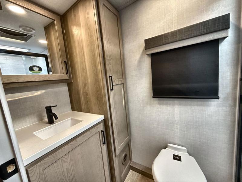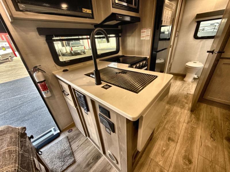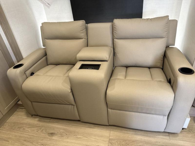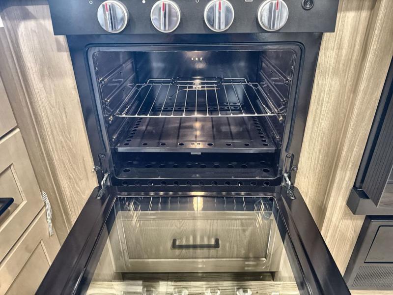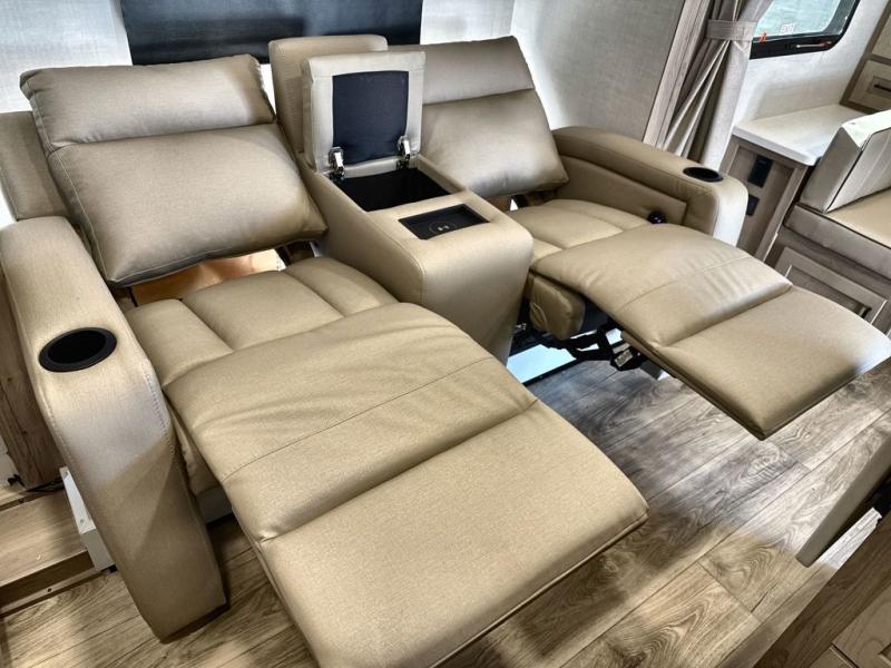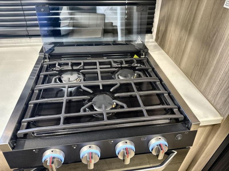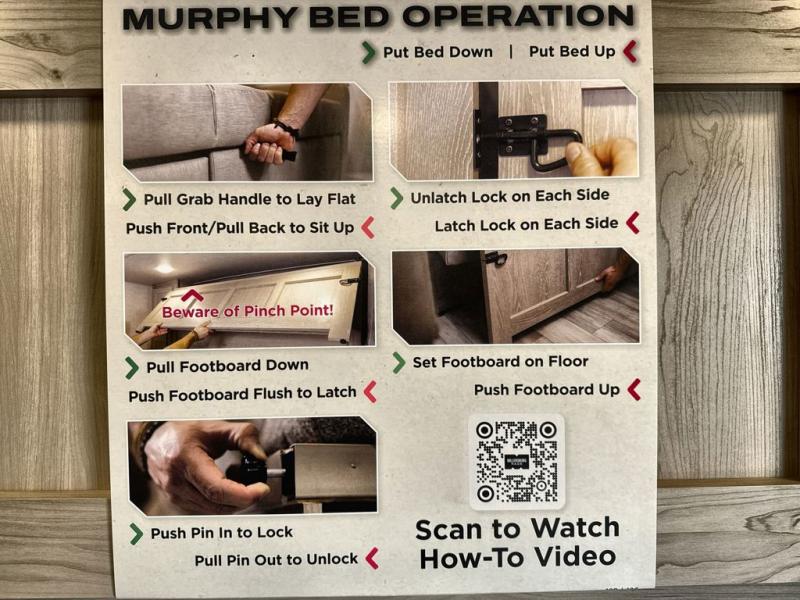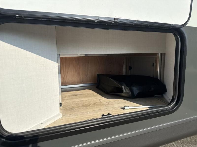 This versatile travel trailer is perfect for weekend camping trips to your favorite park! Once you arrive at your site, you can unload the pass-thru storage, then put out the 15' power awning and relax in your camp chairs. The cooktop and microwave inside will let you make lunch when you get hungry, and there is a theater seat slide out if you want a comfy place to relax. There is also a 30" x 80" booth dinette up front where you can dine together and play games in the evenings, and when you're ready for bed, the 60" x 74" Murphy bed can be folded down over the dinette. This unit includes plenty of storage spaces, including dual bedside wardrobes, a kitchen pantry, and a linen closet in the full rear bath!