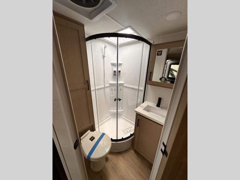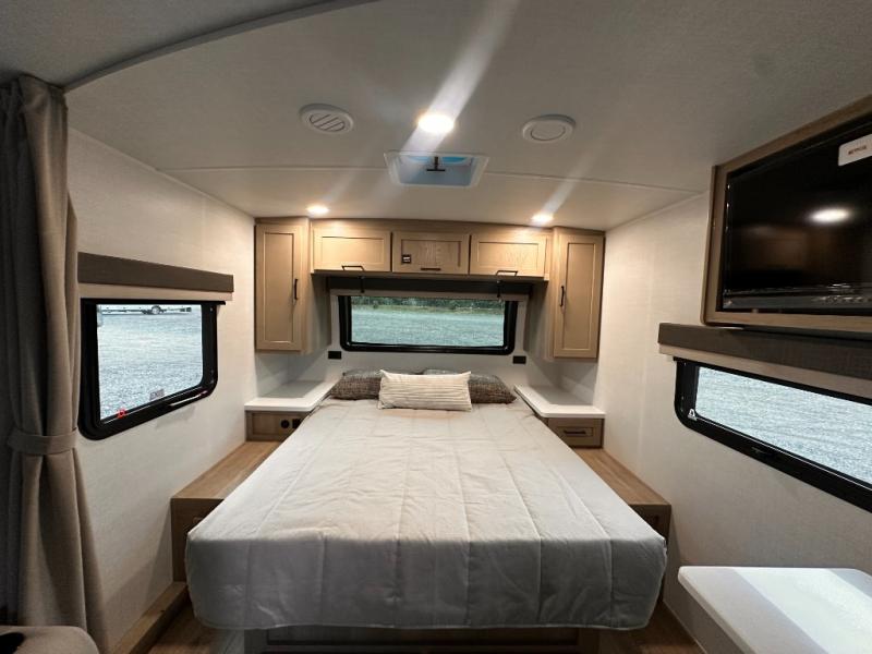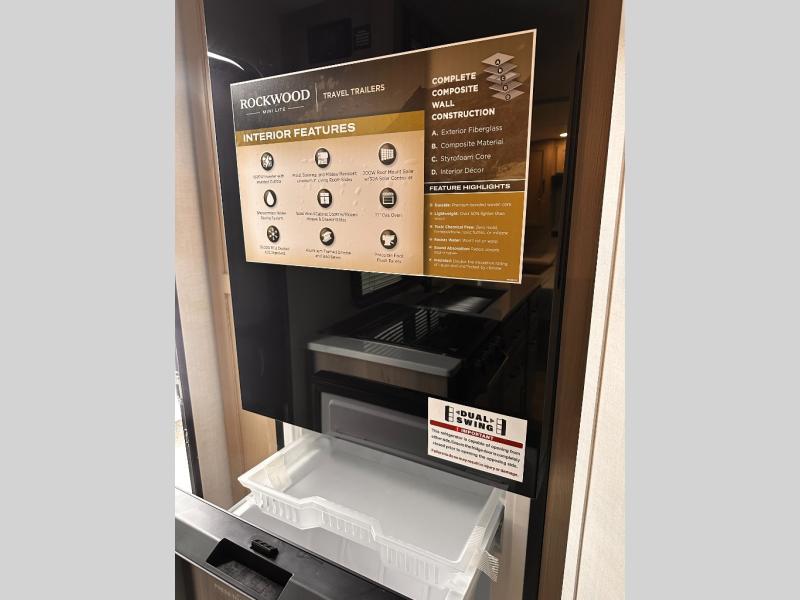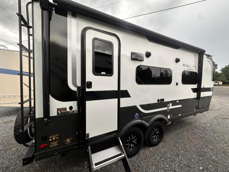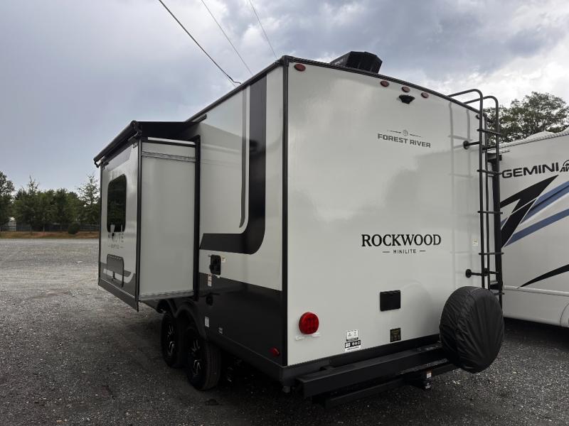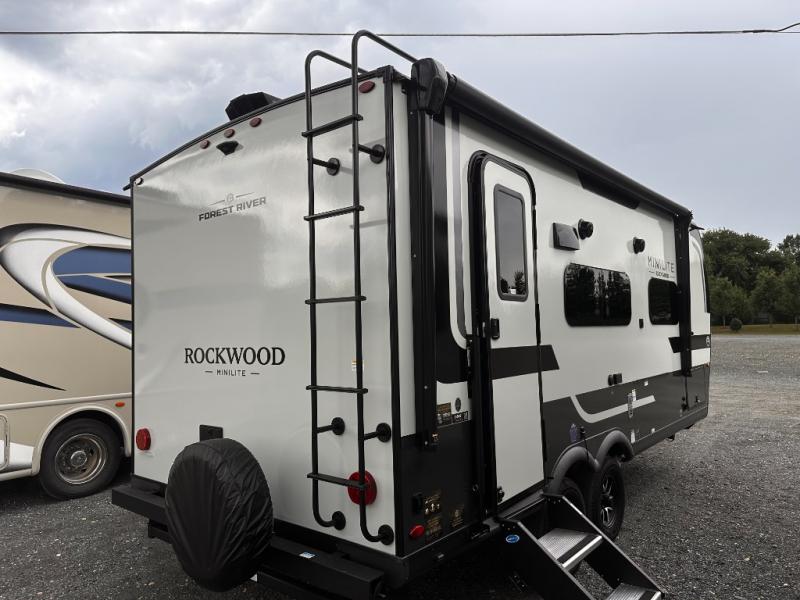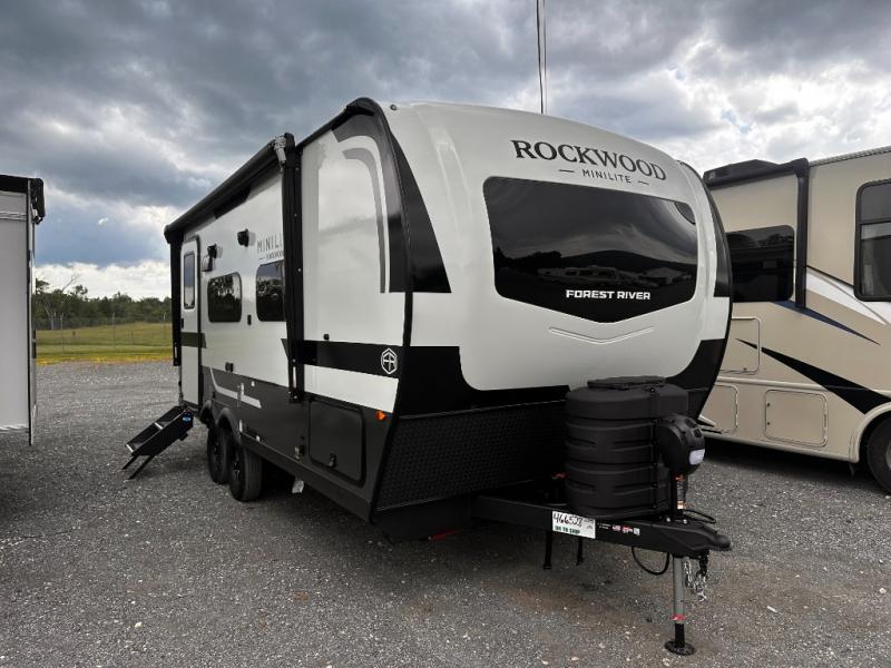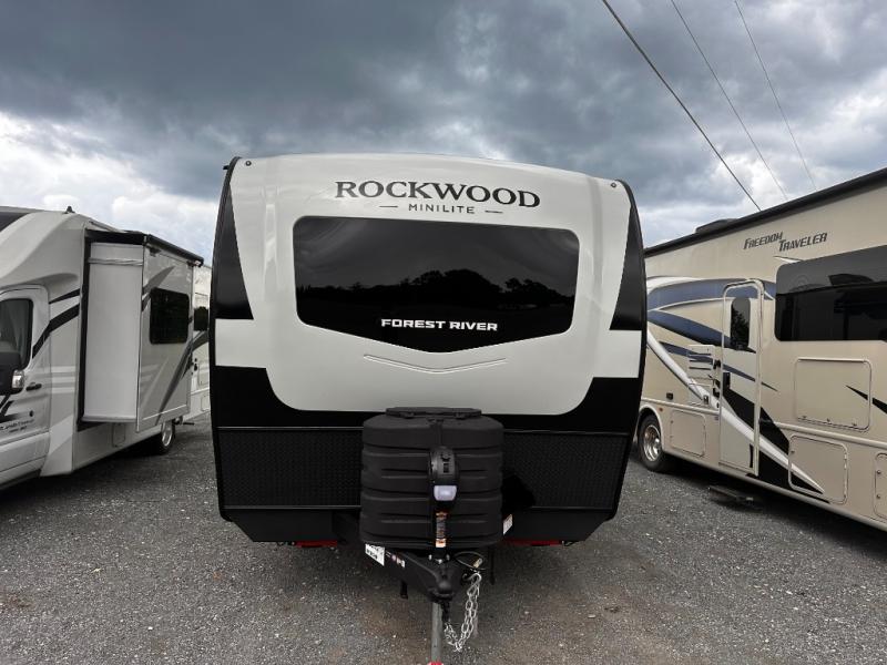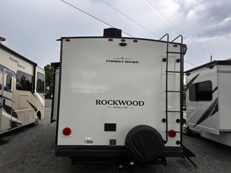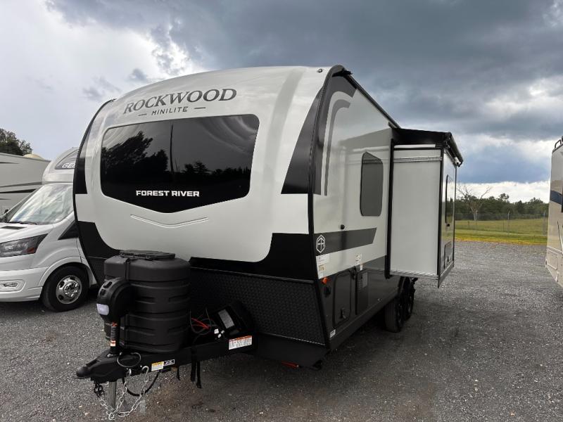 Each Rockwood Mini Lite travel trailer by Forest River is constructed with a fully laminated one-piece walkable roof, sleek frameless windows, and a six-sided full aluminum frame for strength and durability. The 12V thermostatically controlled heated tanks, plus radiant foil in the underbelly will allow you to camp well into the colder months, and the 200W roof solar panel will be perfect for a little off-gridding. Each model includes solid surface kitchen countertops, hidden hinge cabinet doors, roller shades, plus many more interior features. Having an AIR 360+ omnidirectional antenna with WiFi prep on board gives you the option to get some work done if it's needed, and the power tongue jack provides hassle-free set up, so you can enjoy more time relaxing!