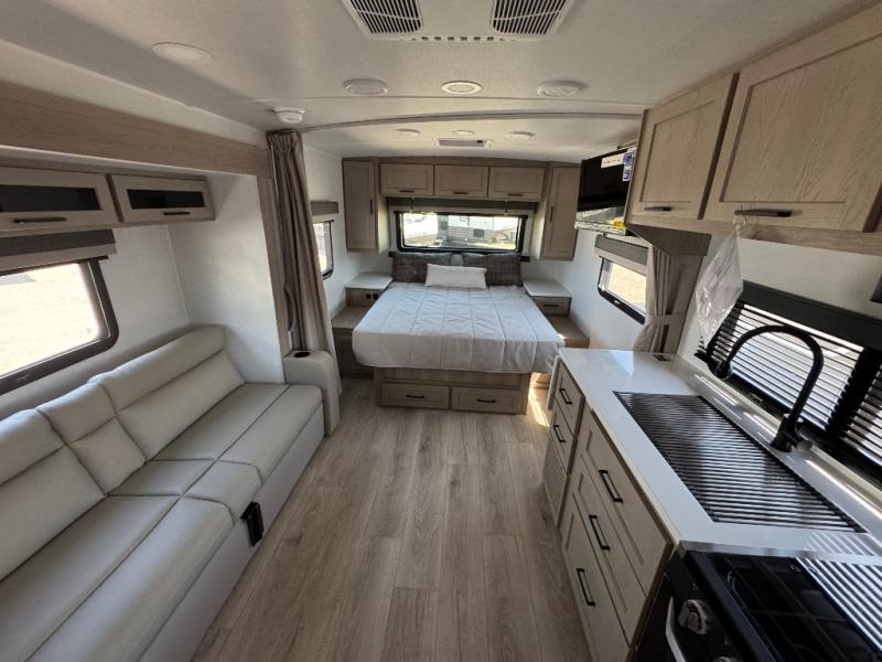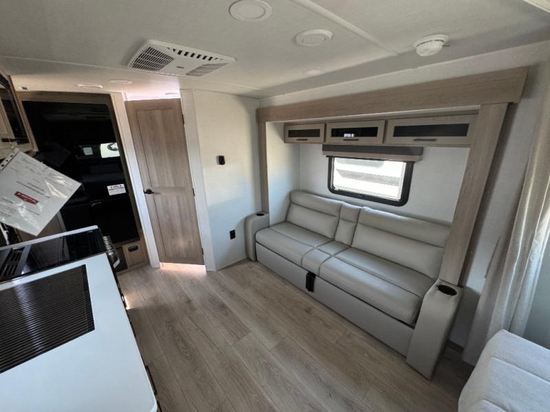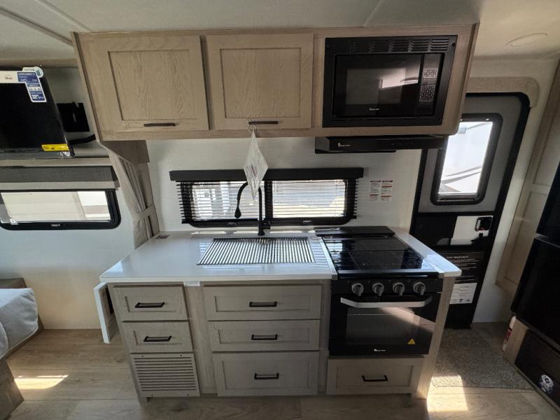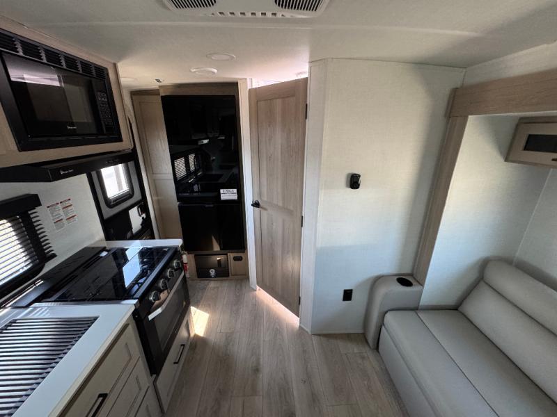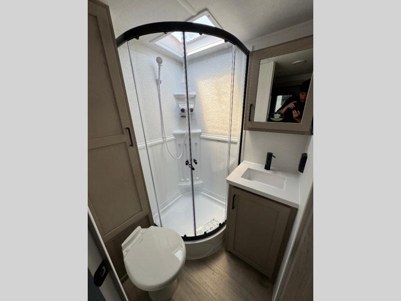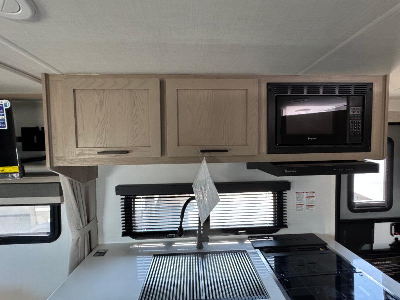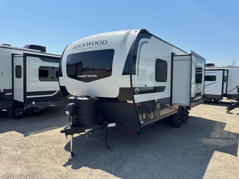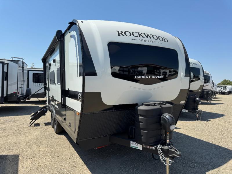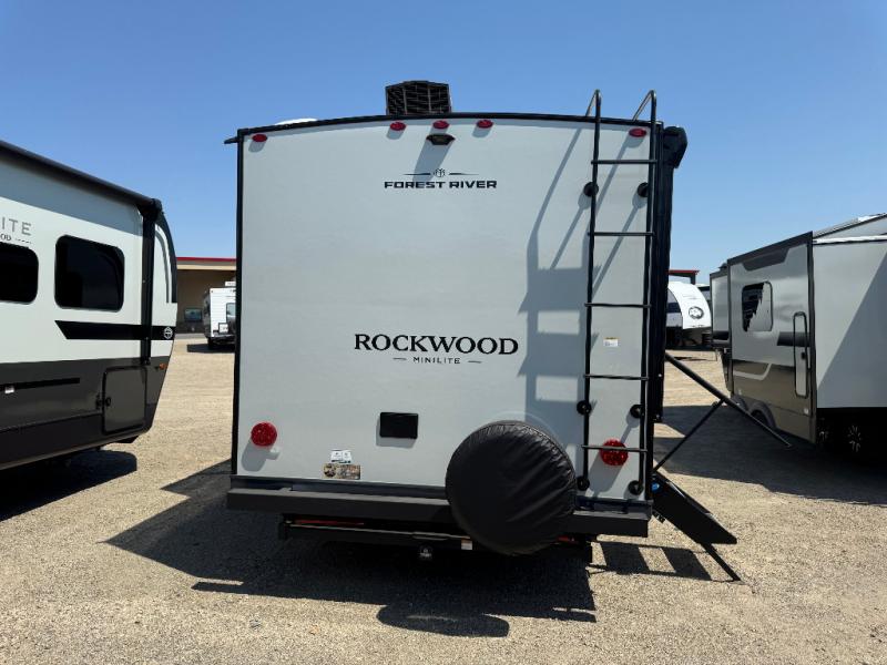 Each Rockwood Mini Lite travel trailer by Forest River is constructed with a fully laminated one-piece walkable roof, sleek frameless windows, and a six-sided full aluminum frame for strength and durability. The 12V thermostatically controlled heated tanks, plus radiant foil in the underbelly will allow you to camp well into the colder months, and the 200W roof solar panel will be perfect for a little off-gridding. Each model includes solid surface kitchen countertops, hidden hinge cabinet doors, roller shades, plus many more interior features. Having an AIR 360+ omnidirectional antenna with WiFi prep on board gives you the option to get some work done if it's needed, and the power tongue jack provides hassle-free set up, so you can enjoy more time relaxing!