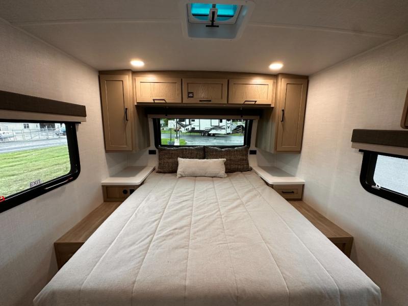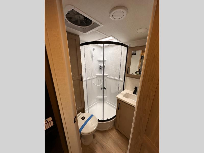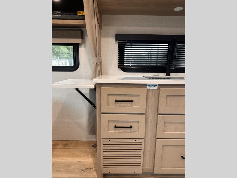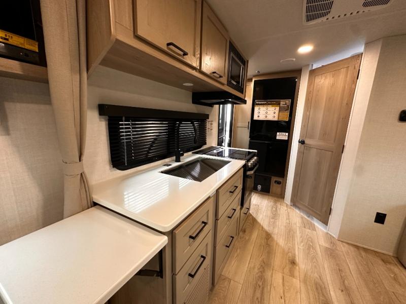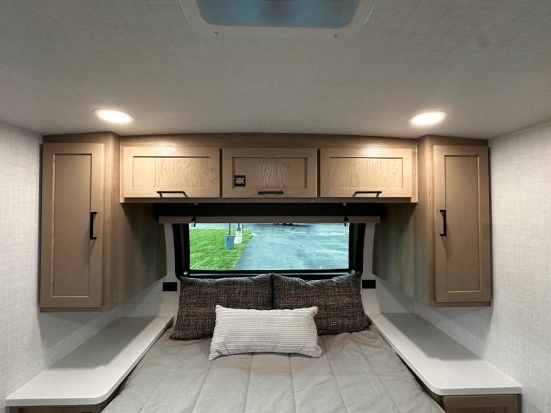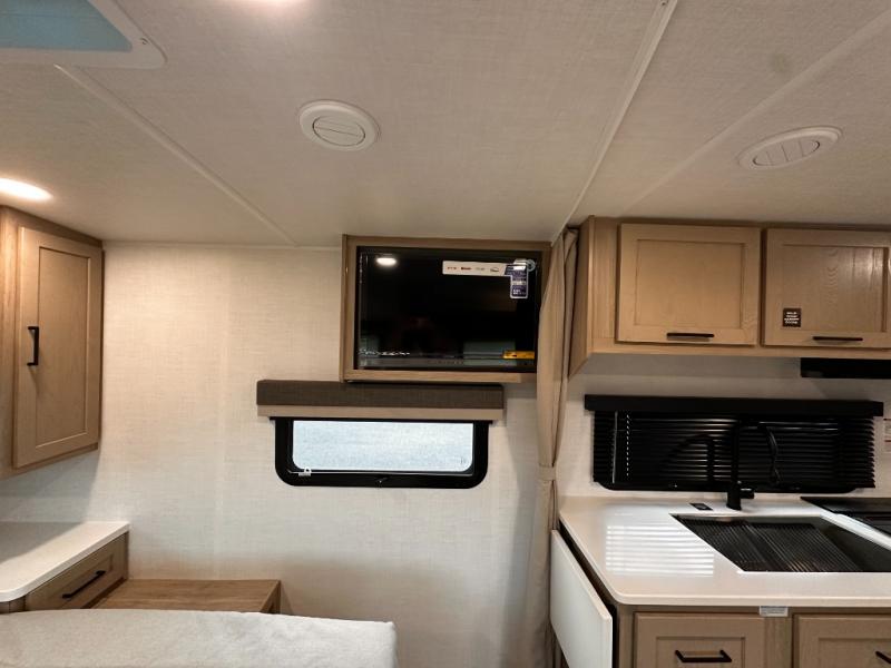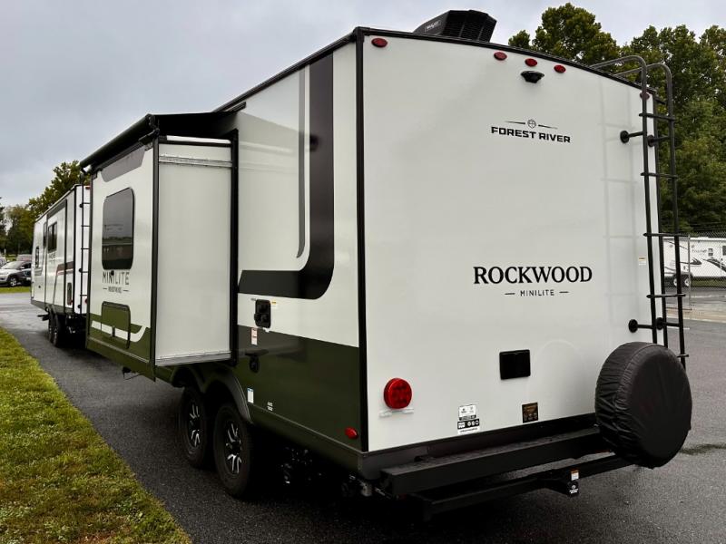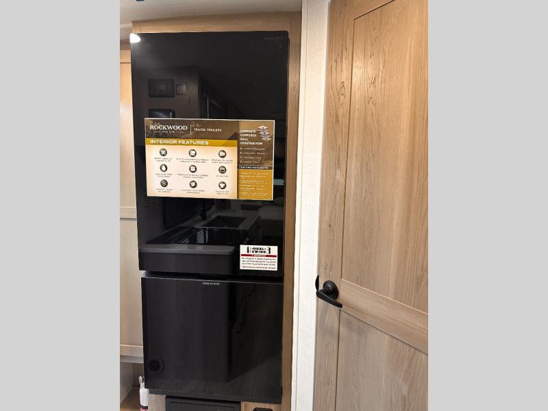 Each Rockwood Mini Lite travel trailer by Forest River is constructed with a fully laminated one-piece walkable roof, sleek frameless windows, and a six-sided full aluminum frame for strength and durability. The 12V thermostatically controlled heated tanks, plus radiant foil in the underbelly will allow you to camp well into the colder months, and the 200W roof solar panel will be perfect for a little off-gridding. Each model includes solid surface kitchen countertops, hidden hinge cabinet doors, roller shades, plus many more interior features. Having an AIR 360+ omnidirectional antenna with WiFi prep on board gives you the option to get some work done if it's needed, and the power tongue jack provides hassle-free set up, so you can enjoy more time relaxing!