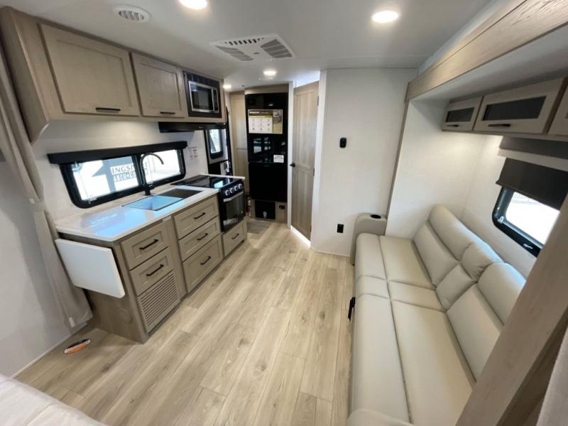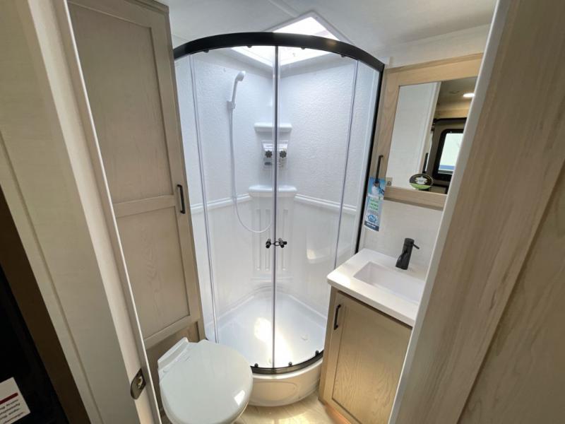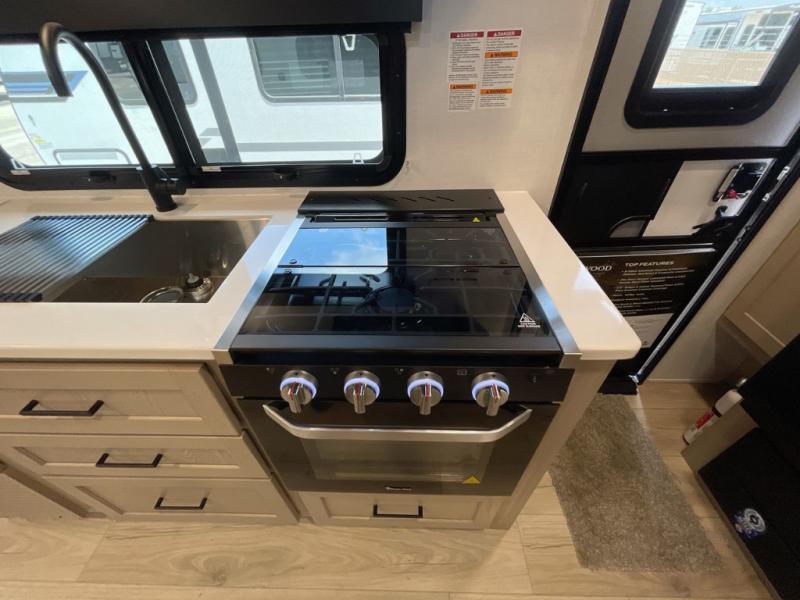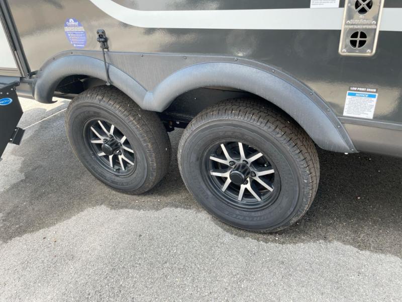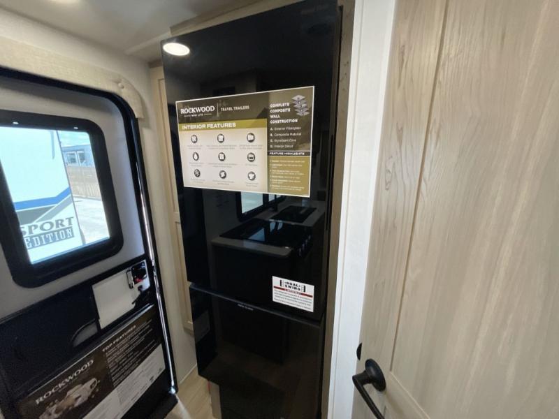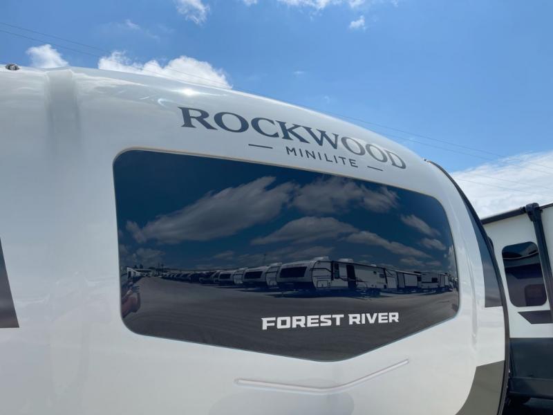 Each Rockwood Mini Lite travel trailer by Forest River is constructed with a fully laminated one-piece walkable roof, sleek frameless windows, and a six-sided full aluminum frame for strength and durability. The 12V thermostatically controlled heated tanks, plus radiant foil in the underbelly will allow you to camp well into the colder months, and the 200W roof solar panel will be perfect for a little off-gridding. Each model includes solid surface kitchen countertops, hidden hinge cabinet doors, roller shades, plus many more interior features. Having an AIR 360+ omnidirectional antenna with WiFi prep on board gives you the option to get some work done if it's needed, and the power tongue jack provides hassle-free set up, so you can enjoy more time relaxing!