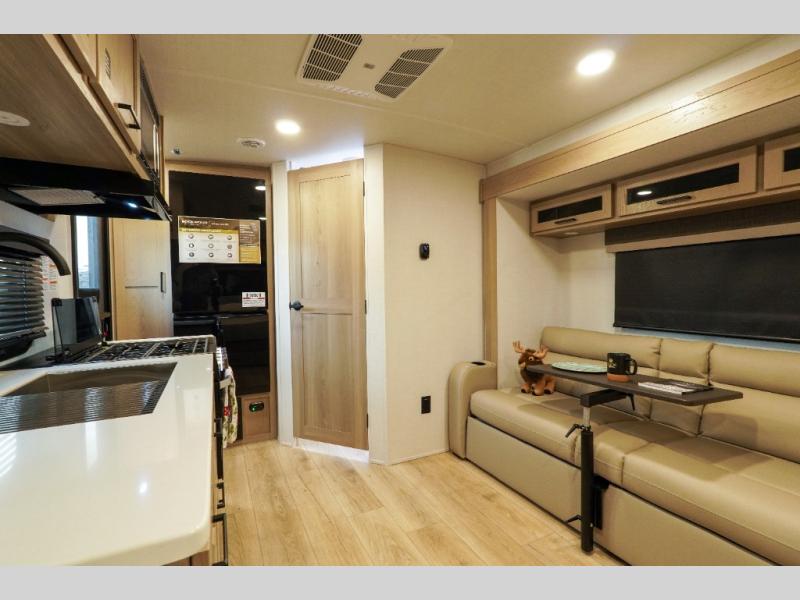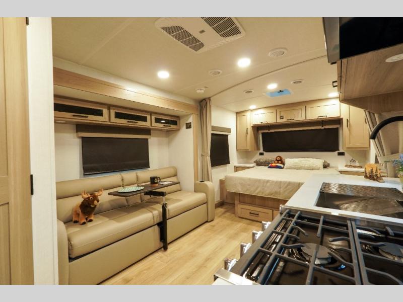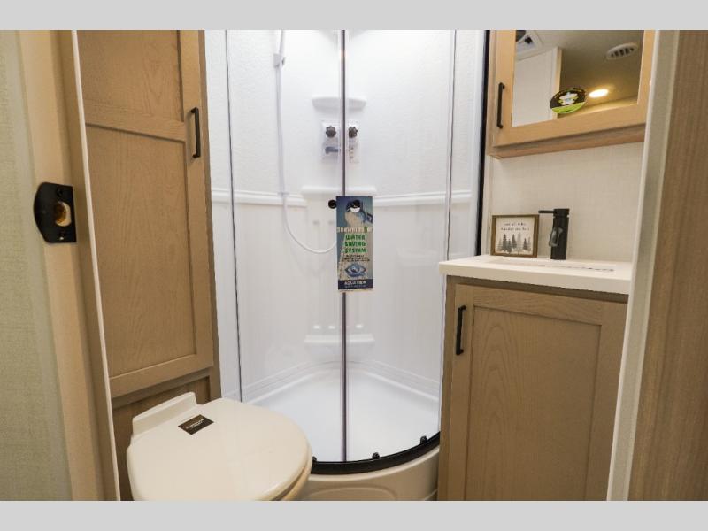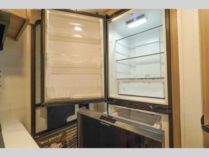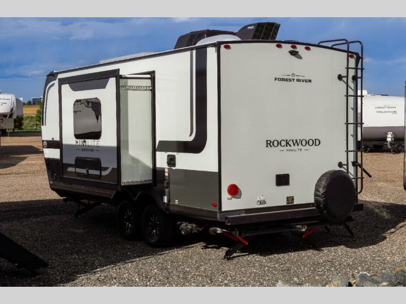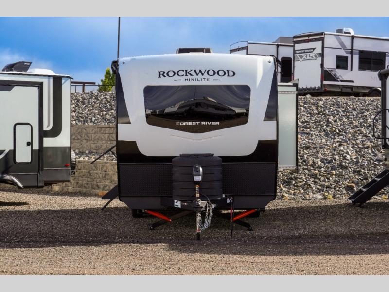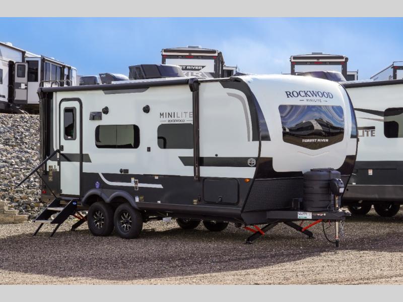 Each Rockwood Mini Lite travel trailer by Forest River is constructed with a fully laminated one-piece walkable roof, sleek frameless windows, and a six-sided full aluminum frame for strength and durability. The 12V thermostatically controlled heated tanks, plus radiant foil in the underbelly will allow you to camp well into the colder months, and the 200W roof solar panel will be perfect for a little off-gridding. Each model includes solid surface kitchen countertops, hidden hinge cabinet doors, roller shades, plus many more interior features. Having an AIR 360+ omnidirectional antenna with WiFi prep on board gives you the option to get some work done if it's needed, and the power tongue jack provides hassle-free set up, so you can enjoy more time relaxing!