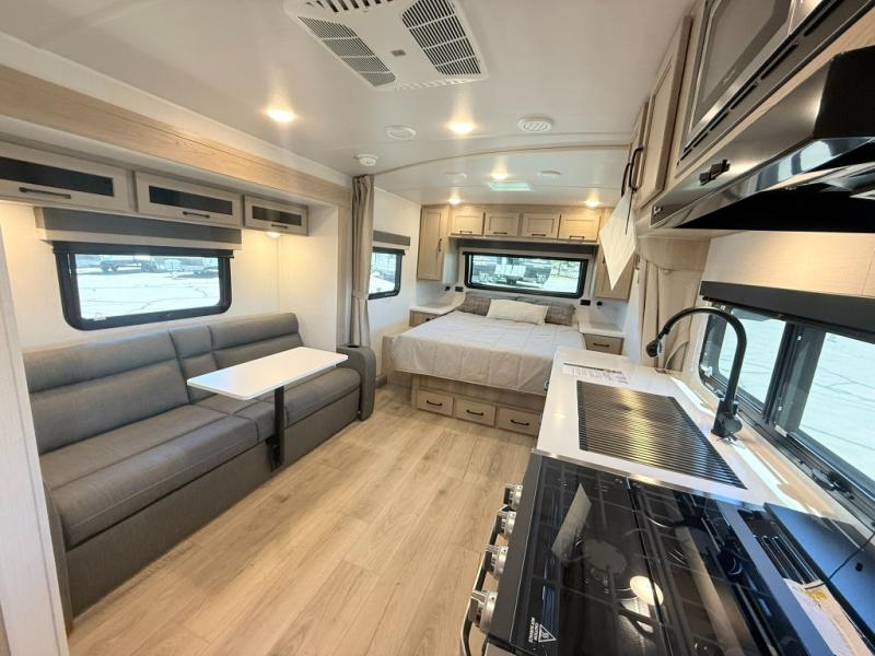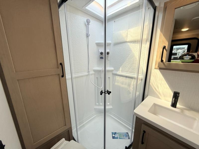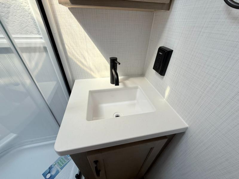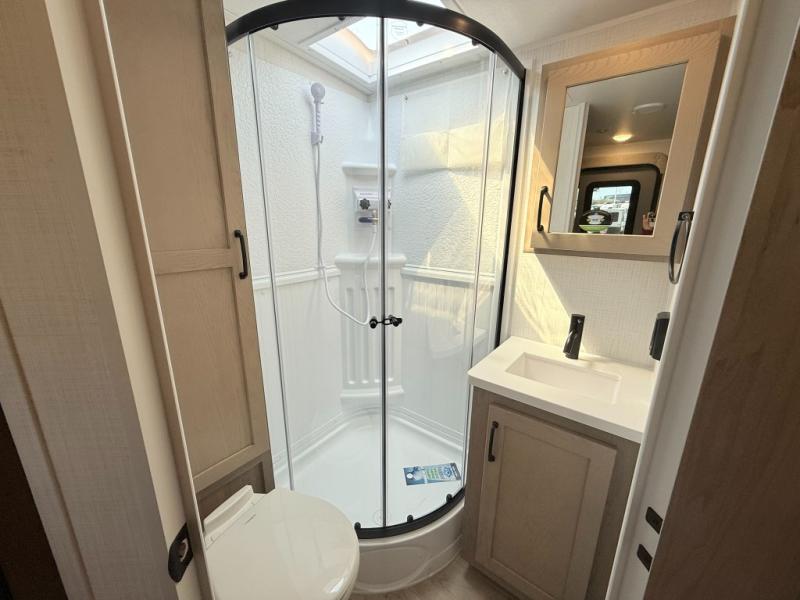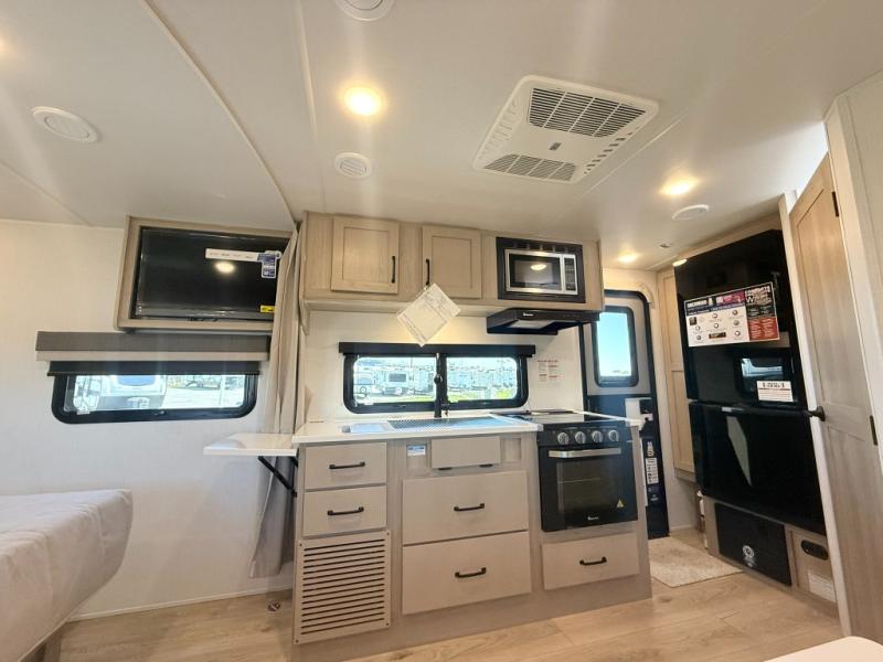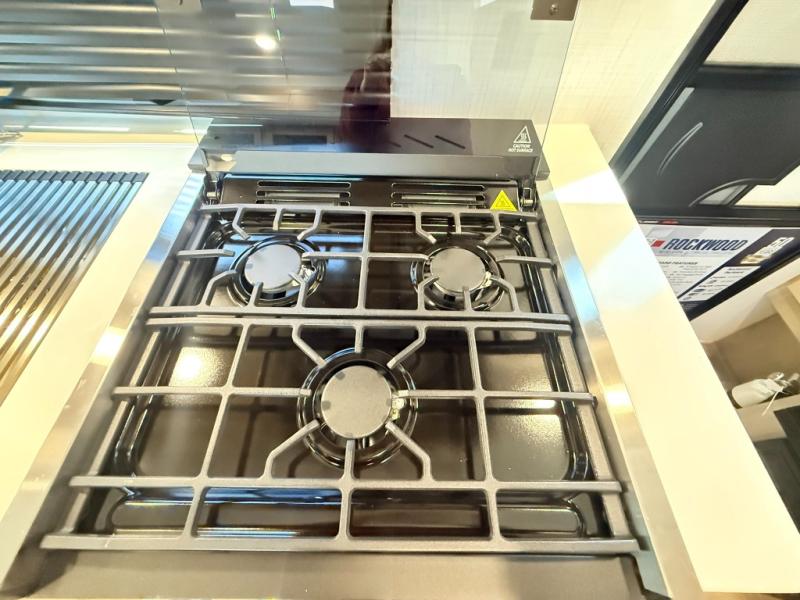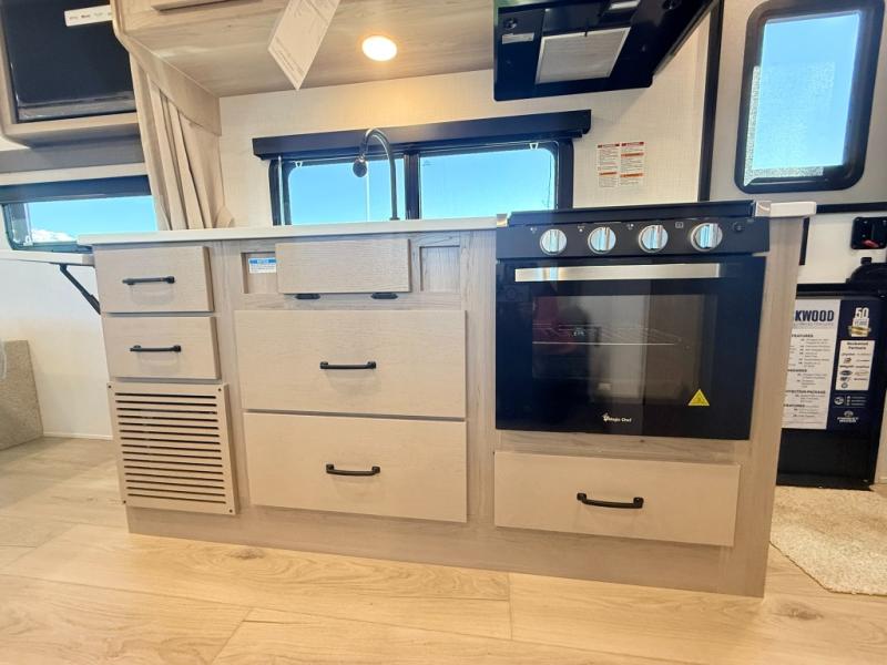 Each Rockwood Mini Lite travel trailer by Forest River is constructed with a fully laminated one-piece walkable roof, sleek frameless windows, and a six-sided full aluminum frame for strength and durability. The 12V thermostatically controlled heated tanks, plus radiant foil in the underbelly will allow you to camp well into the colder months, and the 200W roof solar panel will be perfect for a little off-gridding. Each model includes solid surface kitchen countertops, hidden hinge cabinet doors, roller shades, plus many more interior features. Having an AIR 360+ omnidirectional antenna with WiFi prep on board gives you the option to get some work done if it's needed, and the power tongue jack provides hassle-free set up, so you can enjoy more time relaxing!