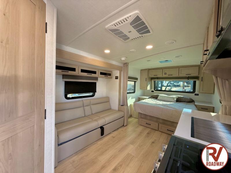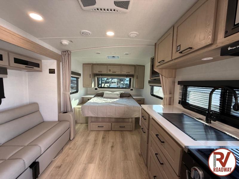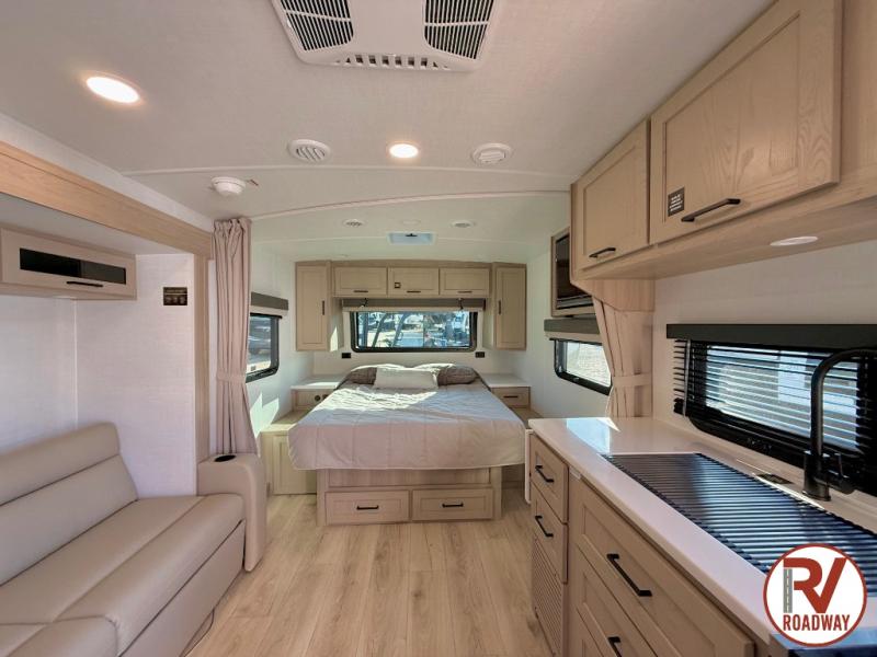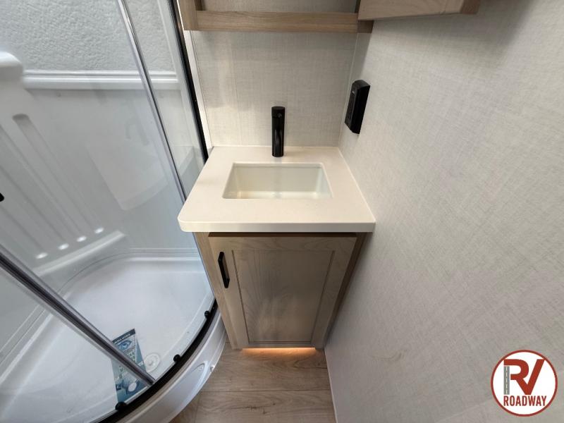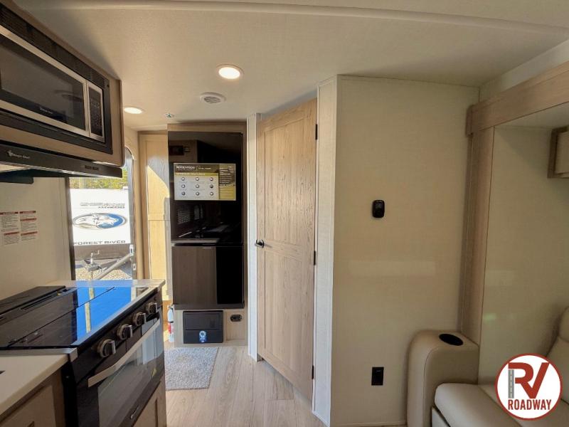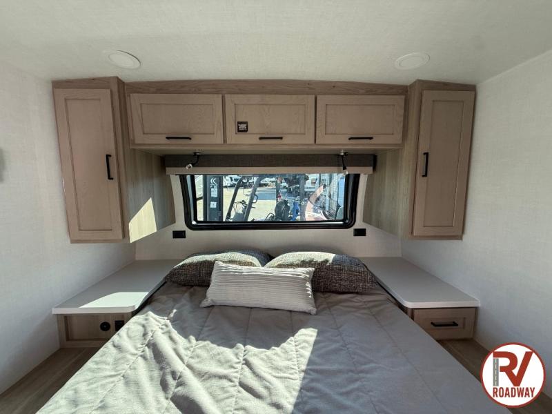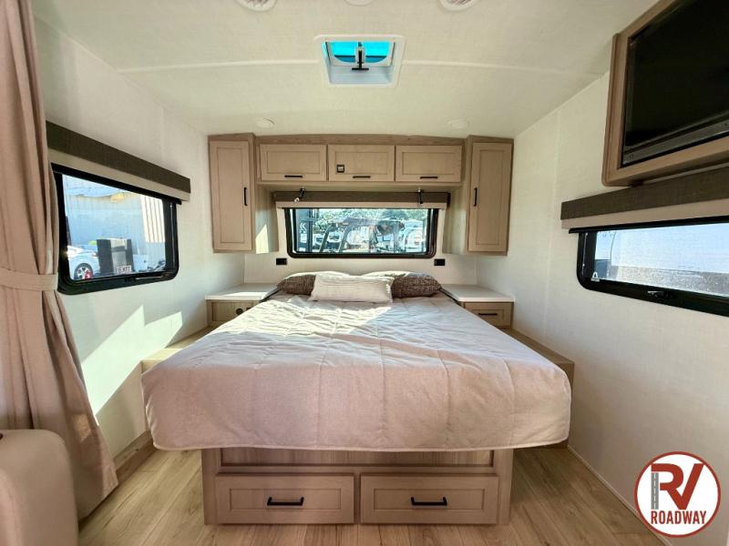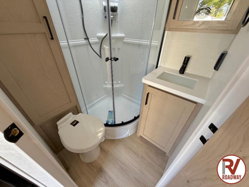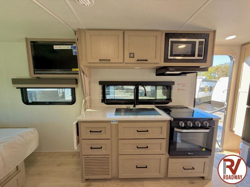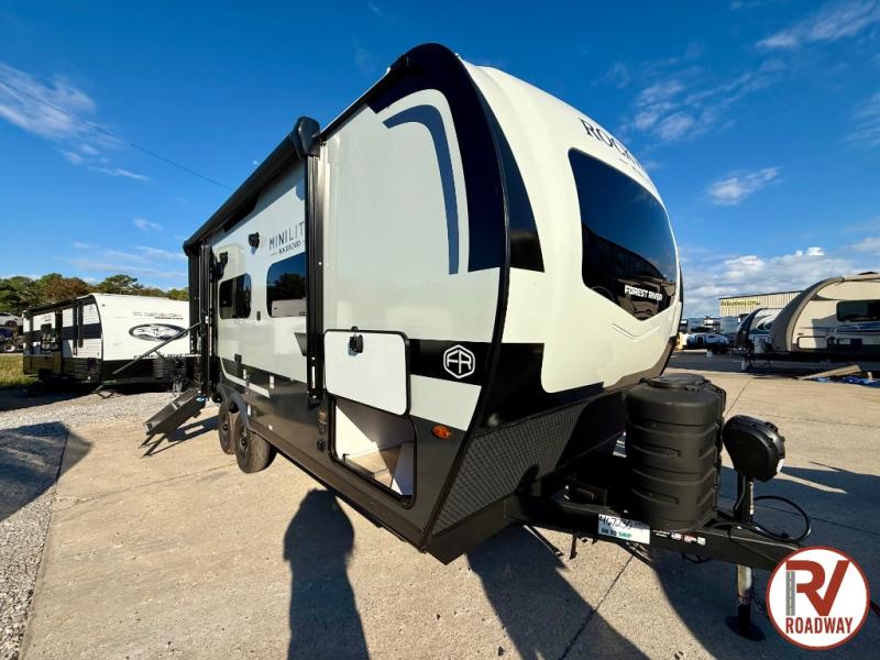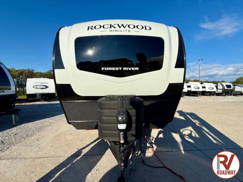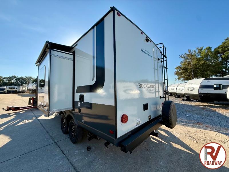 Each Rockwood Mini Lite travel trailer by Forest River is constructed with a fully laminated one-piece walkable roof, sleek frameless windows, and a six-sided full aluminum frame for strength and durability. The 12V thermostatically controlled heated tanks, plus radiant foil in the underbelly will allow you to camp well into the colder months, and the 200W roof solar panel will be perfect for a little off-gridding. Each model includes solid surface kitchen countertops, hidden hinge cabinet doors, roller shades, plus many more interior features. Having an AIR 360+ omnidirectional antenna with WiFi prep on board gives you the option to get some work done if it's needed, and the power tongue jack provides hassle-free set up, so you can enjoy more time relaxing!