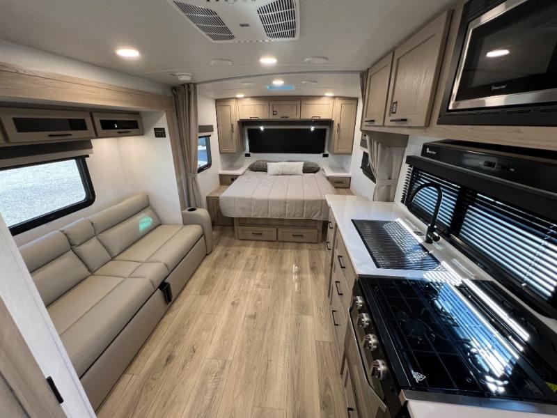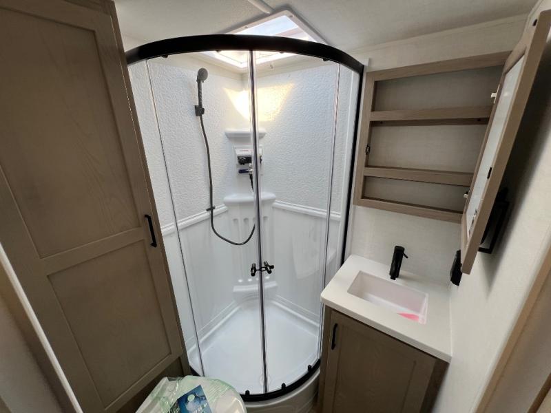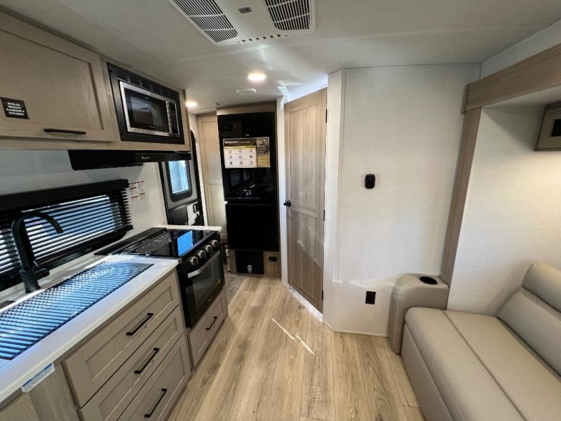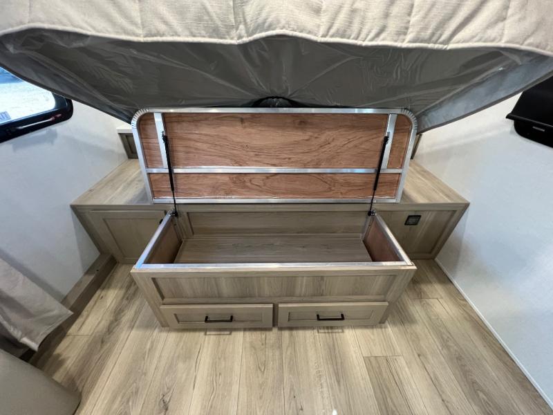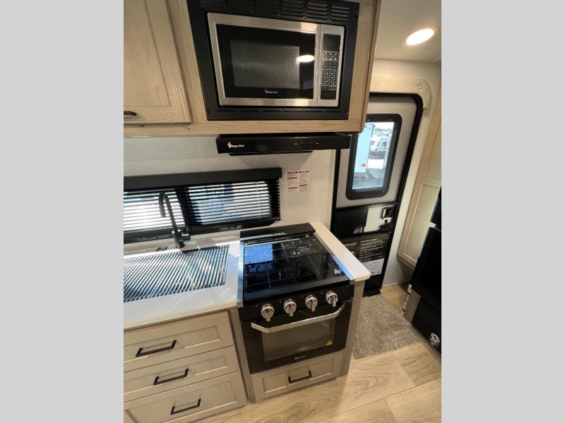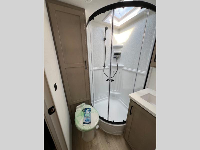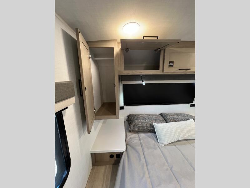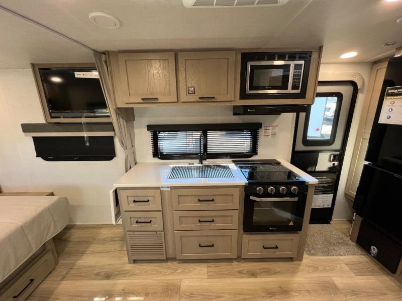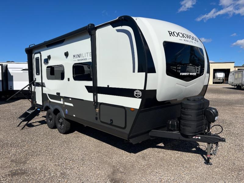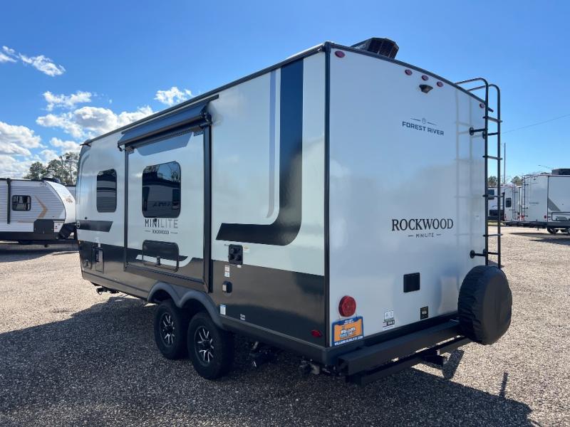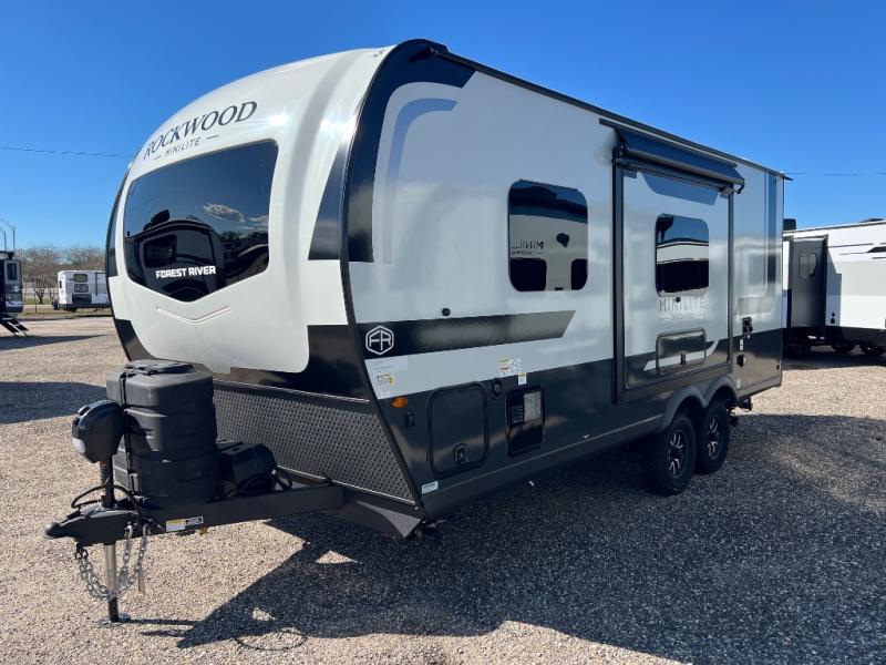 Each Rockwood Mini Lite travel trailer by Forest River is constructed with a fully laminated one-piece walkable roof, sleek frameless windows, and a six-sided full aluminum frame for strength and durability. The 12V thermostatically controlled heated tanks, plus radiant foil in the underbelly will allow you to camp well into the colder months, and the 200W roof solar panel will be perfect for a little off-gridding. Each model includes solid surface kitchen countertops, hidden hinge cabinet doors, roller shades, plus many more interior features. Having an AIR 360+ omnidirectional antenna with WiFi prep on board gives you the option to get some work done if it's needed, and the power tongue jack provides hassle-free set up, so you can enjoy more time relaxing!