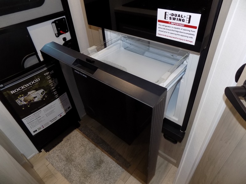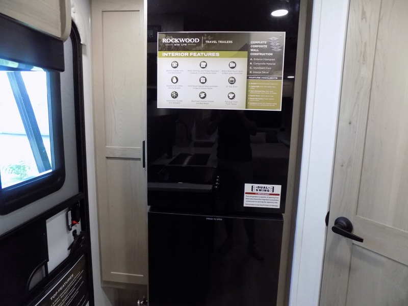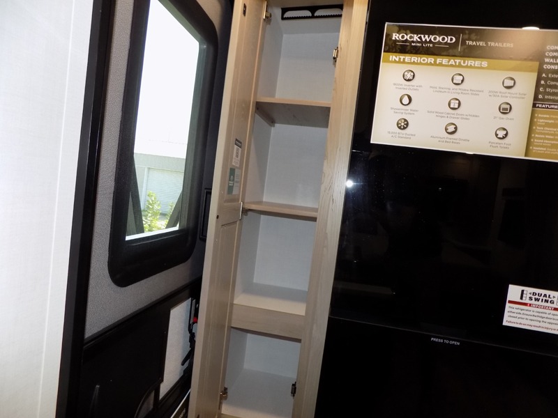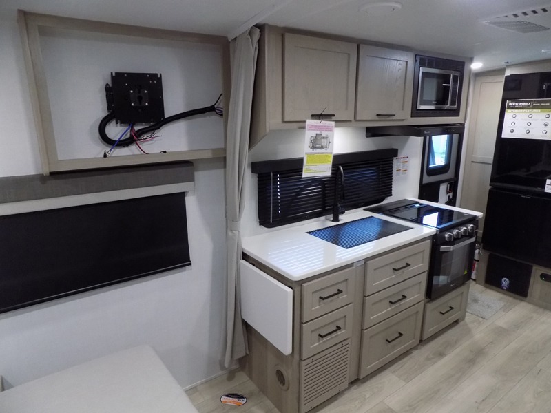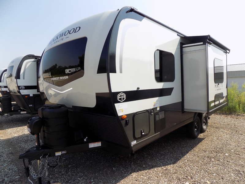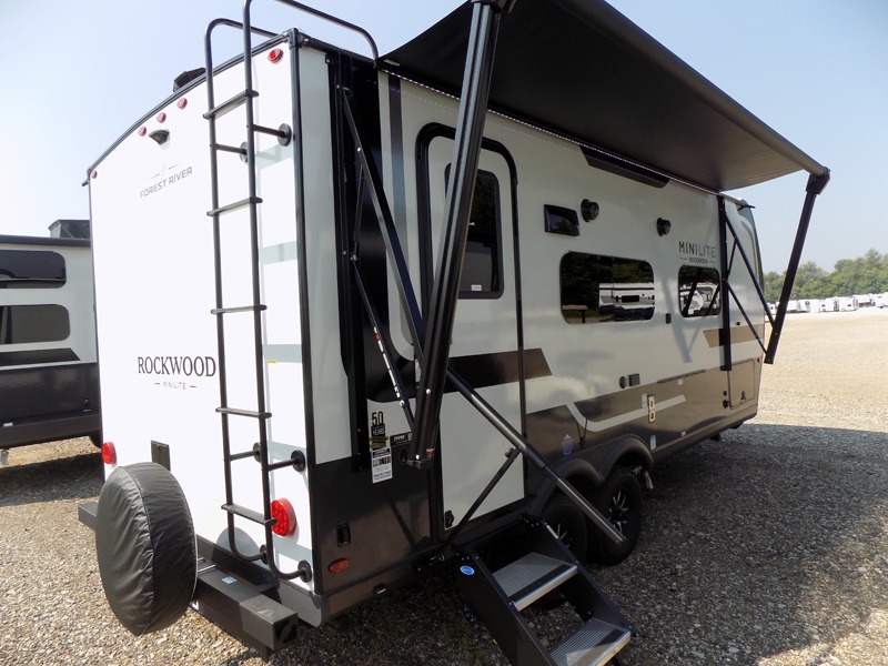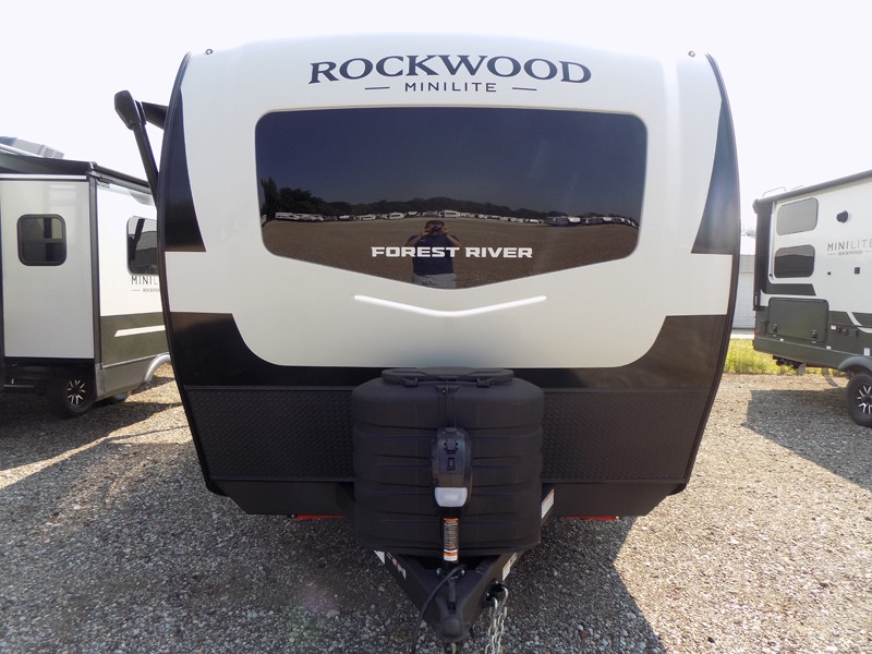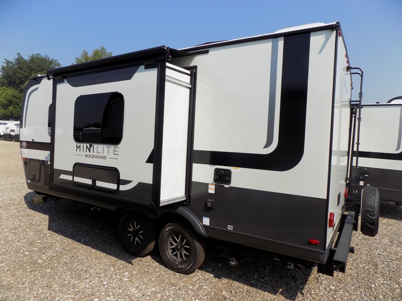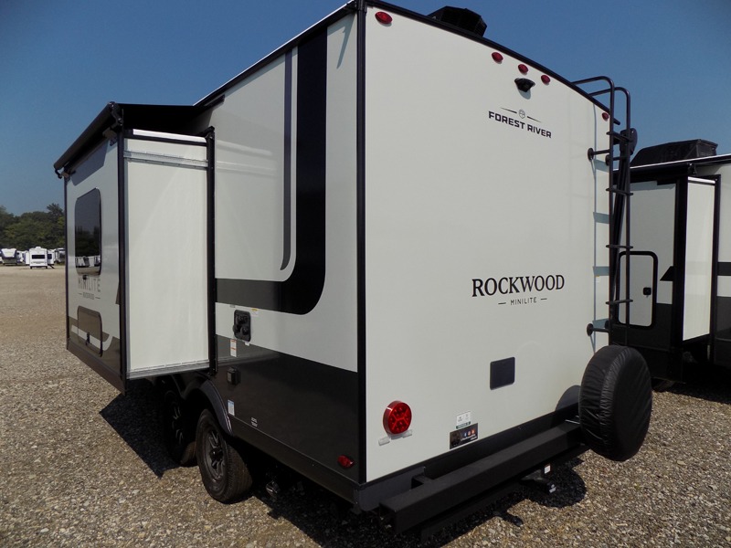 Each Rockwood Mini Lite travel trailer by Forest River is constructed with a fully laminated one-piece walkable roof, sleek frameless windows, and a six-sided full aluminum frame for strength and durability. The 12V thermostatically controlled heated tanks, plus radiant foil in the underbelly will allow you to camp well into the colder months, and the 200W roof solar panel will be perfect for a little off-gridding. Each model includes solid surface kitchen countertops, hidden hinge cabinet doors, roller shades, plus many more interior features. Having an AIR 360+ omnidirectional antenna with WiFi prep on board gives you the option to get some work done if it's needed, and the power tongue jack provides hassle-free set up, so you can enjoy more time relaxing!