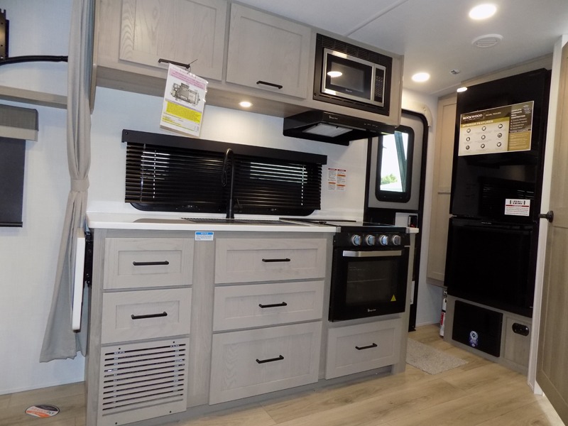 What I'd improve: Cheap plastic toilet I would upgrade to porcelain! The slide should be deeper to accommodate a tri-fold sofa queen sleeper for extra functional sleeping space. I purchased a three burner stove that mounts on the outside rail "Gas quick connect" to cook outside. Do I dare say to use Azdel in their Rockwood construction. Happy Camping everyone......Ken Camper Dawg Ingalls8 years ago | Kenneth I. from ,
