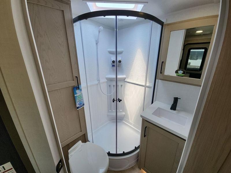 Each Rockwood Mini Lite travel trailer by Forest River is constructed with a fully laminated one-piece walkable roof, sleek frameless windows, and a six-sided full aluminum frame for strength and durability. The 12V thermostatically controlled heated tanks, plus radiant foil in the underbelly will allow you to camp well into the colder months, and the 200W roof solar panel will be perfect for a little off-gridding. Each model includes solid surface kitchen countertops, hidden hinge cabinet doors, roller shades, plus many more interior features. Having an AIR 360+ omnidirectional antenna with WiFi prep on board gives you the option to get some work done if it's needed, and the power tongue jack provides hassle-free set up, so you can enjoy more time relaxing!