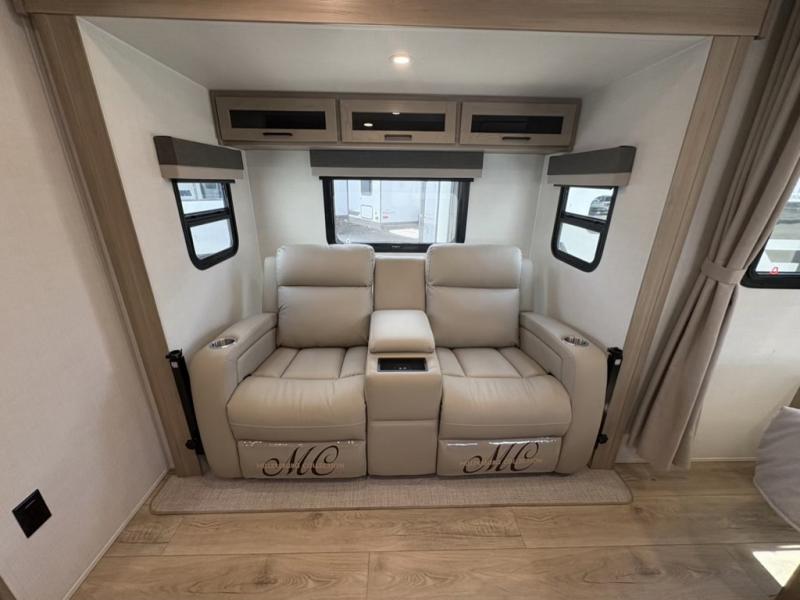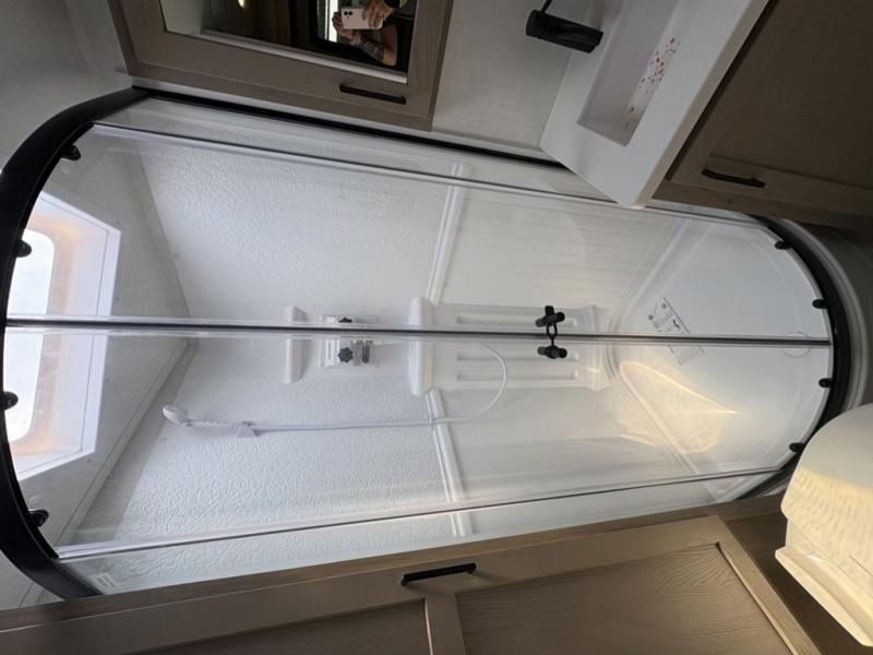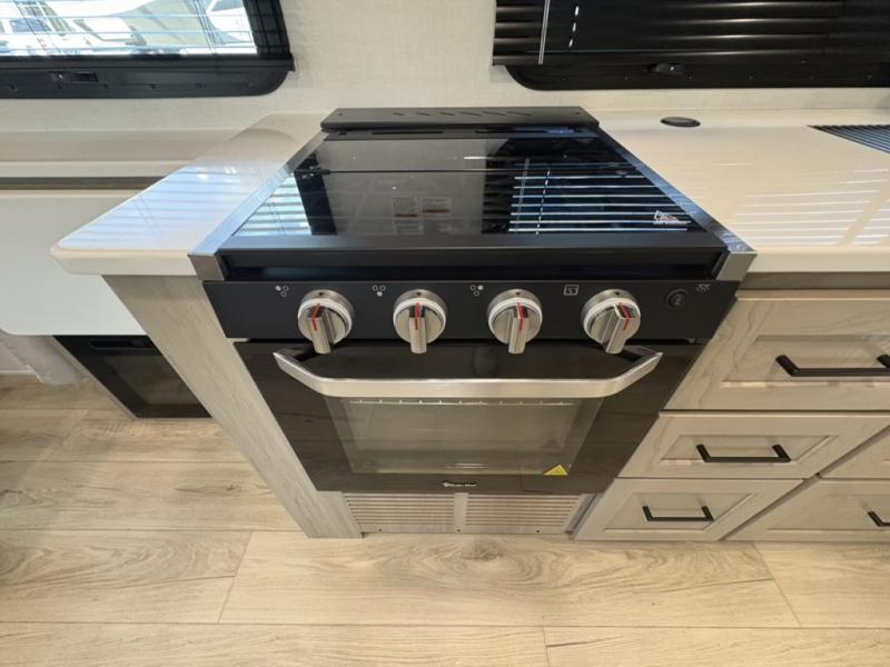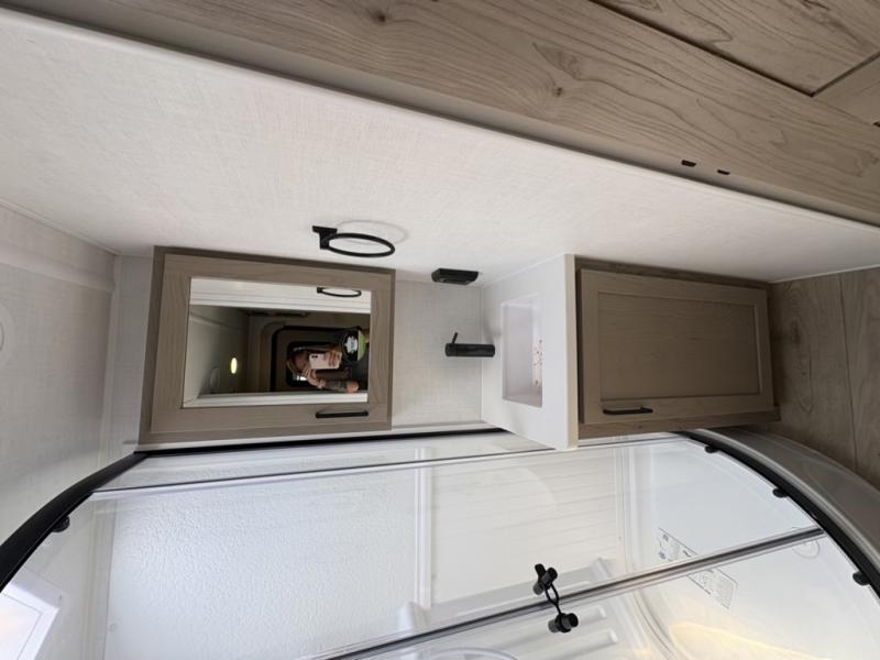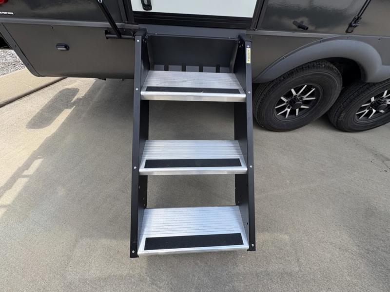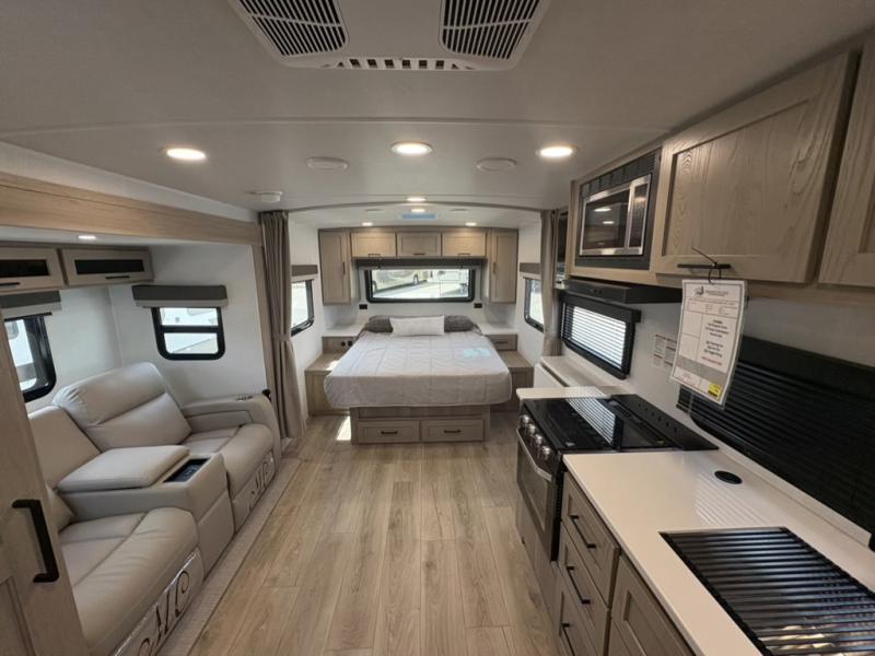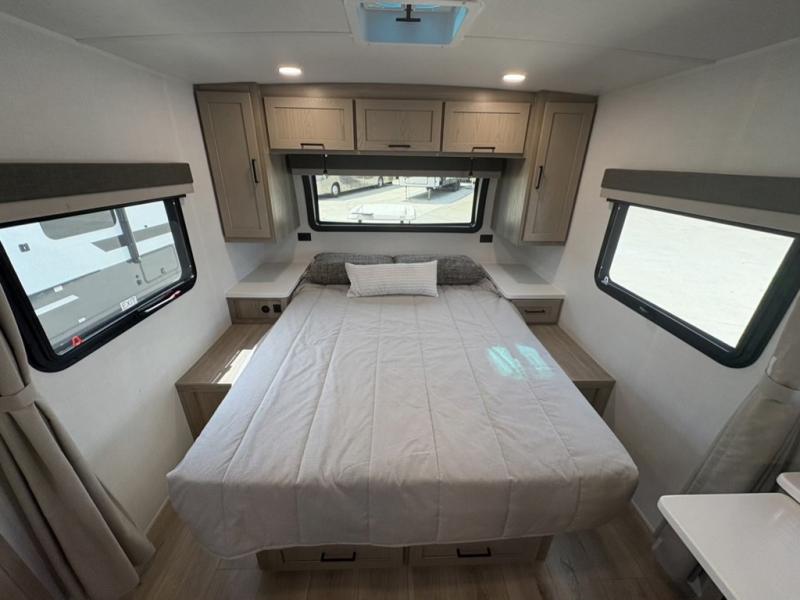 Enjoy the camping season with your spouse, friend, or significant other in this cozy travel trailer for two. Each morning, you can have your coffee on the 67" theater seats with a table within the slide out, then head outdoors to make pancakes on the outdoor griddle with an LP hookup. The interior kitchen includes a three burner cooktop, a microwave oven, plus a 12 volt refrigerator for perishables. An entertainment center with a fireplace will make your space feel more like home, and what's better than sleeping on your own queen bed with dual bedroom wardrobes for your clothes!?