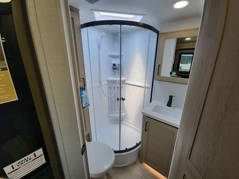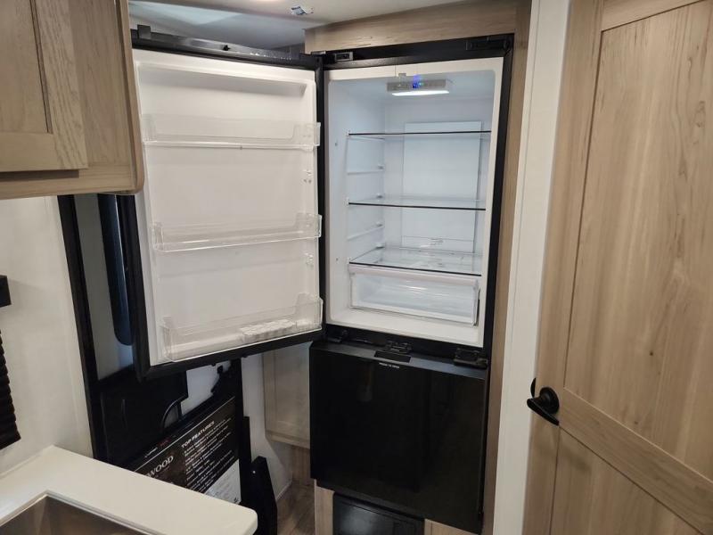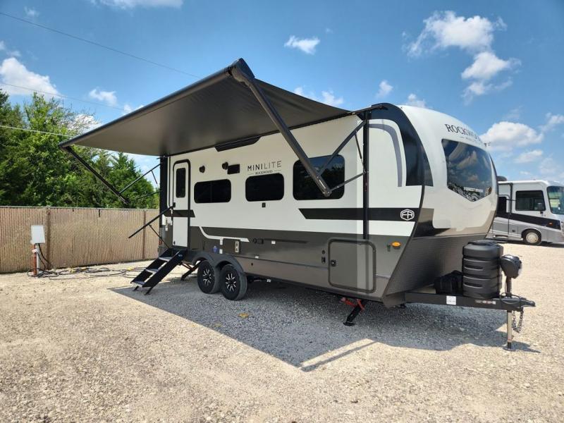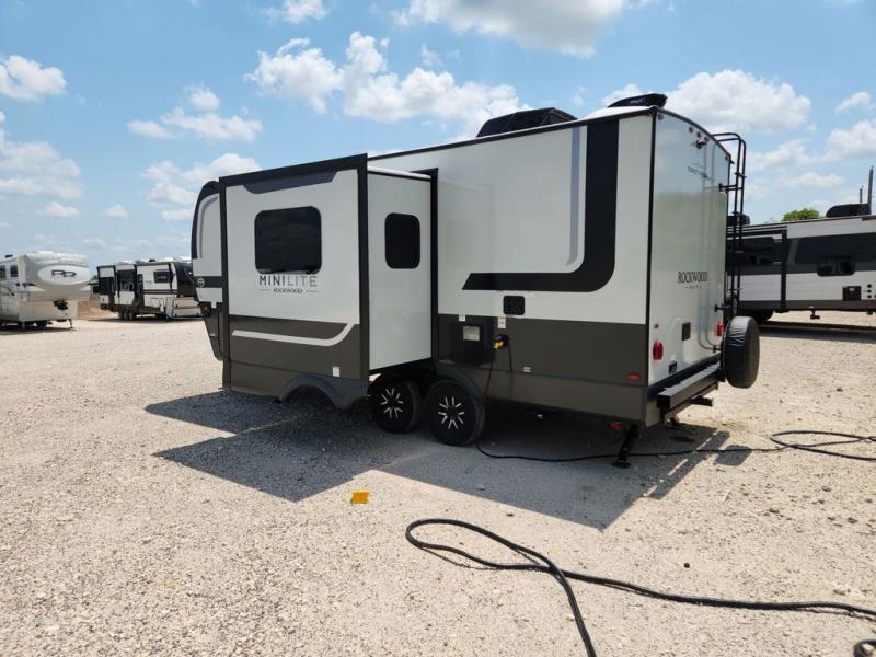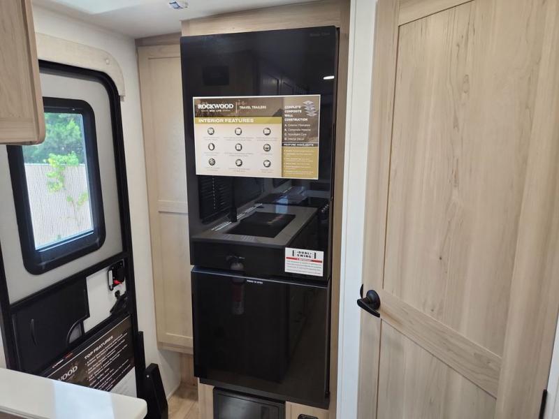 Each Rockwood Mini Lite travel trailer by Forest River is constructed with a fully laminated one-piece walkable roof, sleek frameless windows, and a six-sided full aluminum frame for strength and durability. The 12V thermostatically controlled heated tanks, plus radiant foil in the underbelly will allow you to camp well into the colder months, and the 200W roof solar panel will be perfect for a little off-gridding. Each model includes solid surface kitchen countertops, hidden hinge cabinet doors, roller shades, plus many more interior features. Having an AIR 360+ omnidirectional antenna with WiFi prep on board gives you the option to get some work done if it's needed, and the power tongue jack provides hassle-free set up, so you can enjoy more time relaxing!