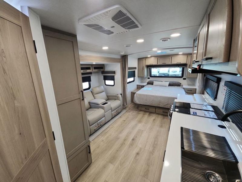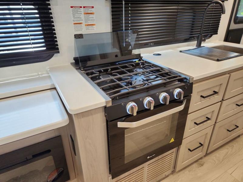 Enjoy the camping season with your spouse, friend, or significant other in this cozy travel trailer for two. Each morning, you can have your coffee on the 67" theater seats with a table within the slide out, then head outdoors to make pancakes on the outdoor griddle with an LP hookup. The interior kitchen includes a three burner cooktop, a microwave oven, plus a 12 volt refrigerator for perishables. An entertainment center with a fireplace will make your space feel more like home, and what's better than sleeping on your own queen bed with dual bedroom wardrobes for your clothes!?