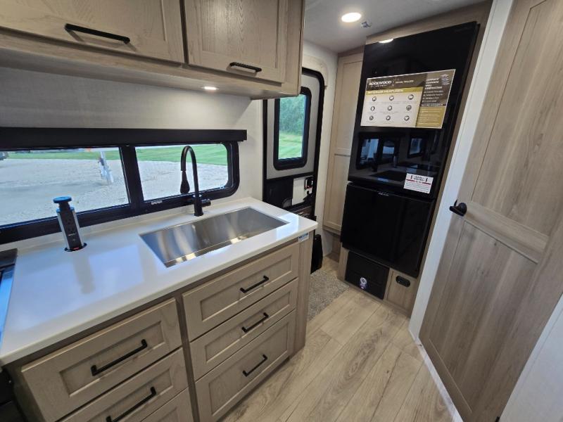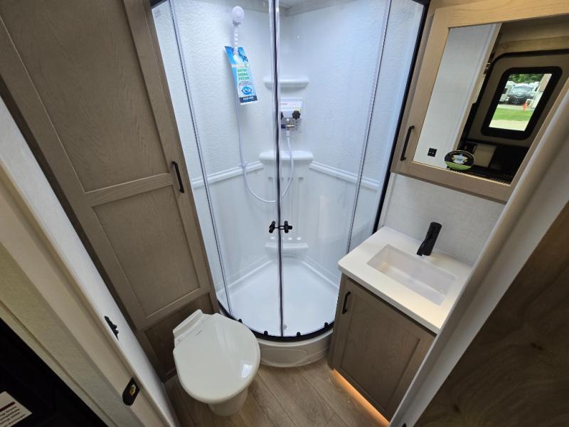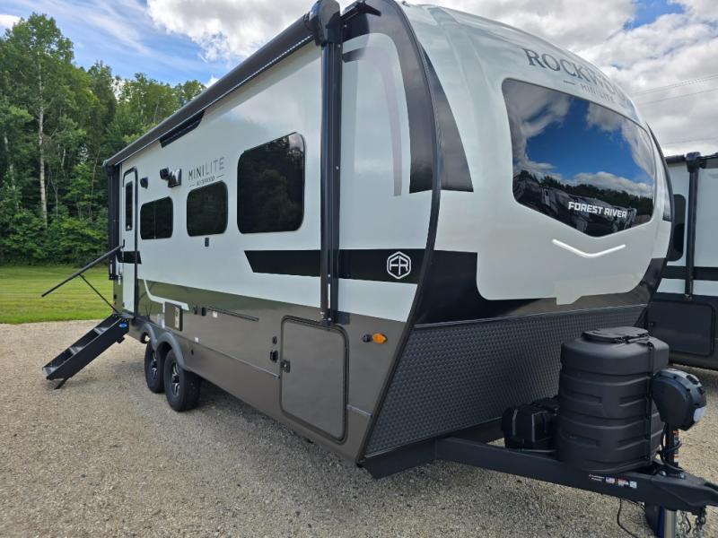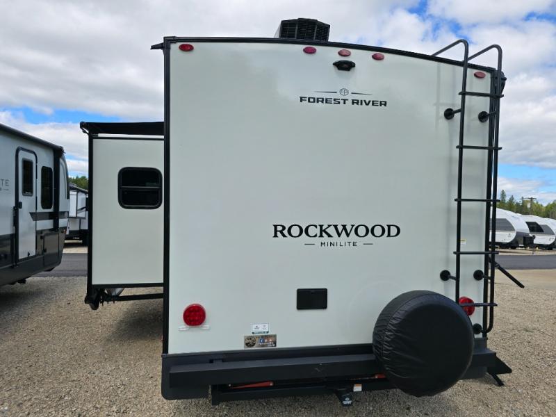 Each Rockwood Mini Lite travel trailer by Forest River is constructed with a fully laminated one-piece walkable roof, sleek frameless windows, and a six-sided full aluminum frame for strength and durability. The 12V thermostatically controlled heated tanks, plus radiant foil in the underbelly will allow you to camp well into the colder months, and the 200W roof solar panel will be perfect for a little off-gridding. Each model includes solid surface kitchen countertops, hidden hinge cabinet doors, roller shades, plus many more interior features. Having an AIR 360+ omnidirectional antenna with WiFi prep on board gives you the option to get some work done if it's needed, and the power tongue jack provides hassle-free set up, so you can enjoy more time relaxing!