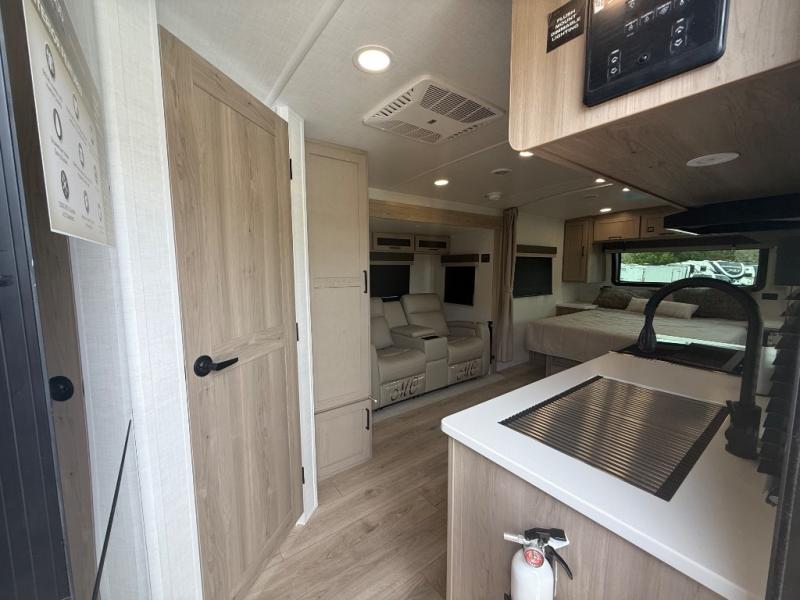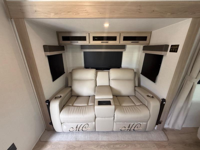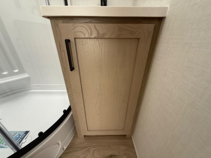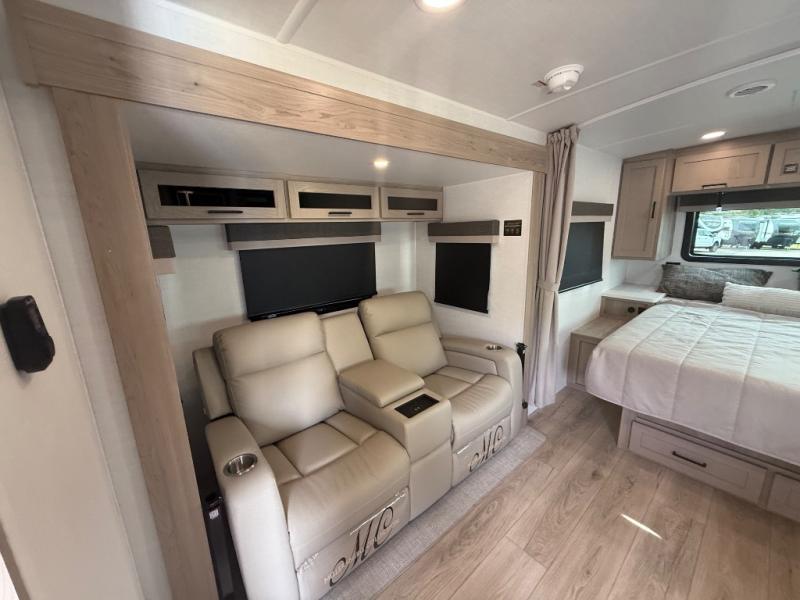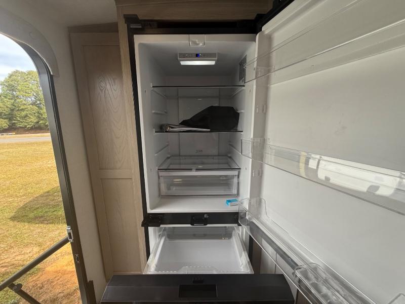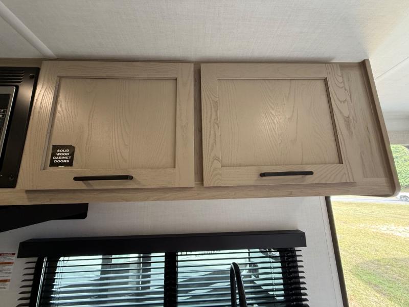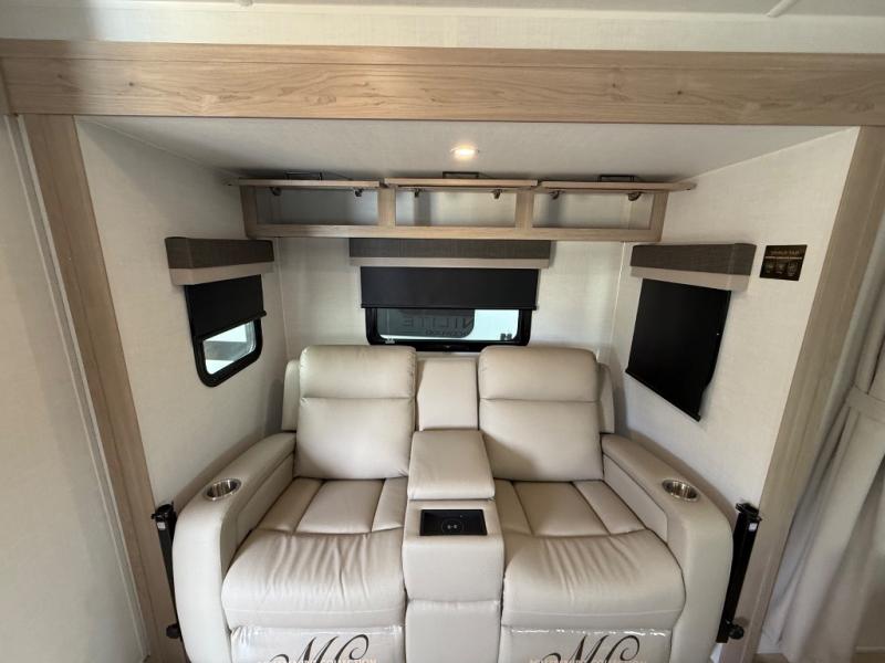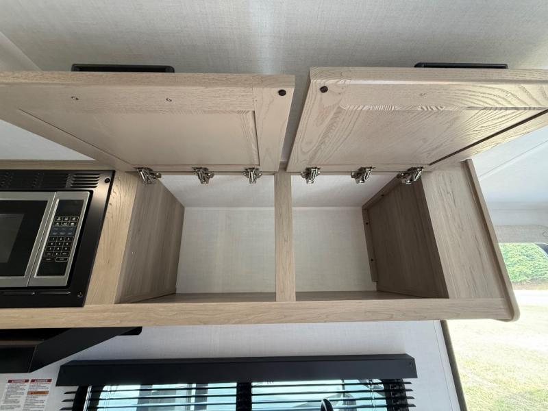 Enjoy the camping season with your spouse, friend, or significant other in this cozy travel trailer for two. Each morning, you can have your coffee on the 67" theater seats with a table within the slide out, then head outdoors to make pancakes on the outdoor griddle with an LP hookup. The interior kitchen includes a three burner cooktop, a microwave oven, plus a 12 volt refrigerator for perishables. An entertainment center with a fireplace will make your space feel more like home, and what's better than sleeping on your own queen bed with dual bedroom wardrobes for your clothes!?