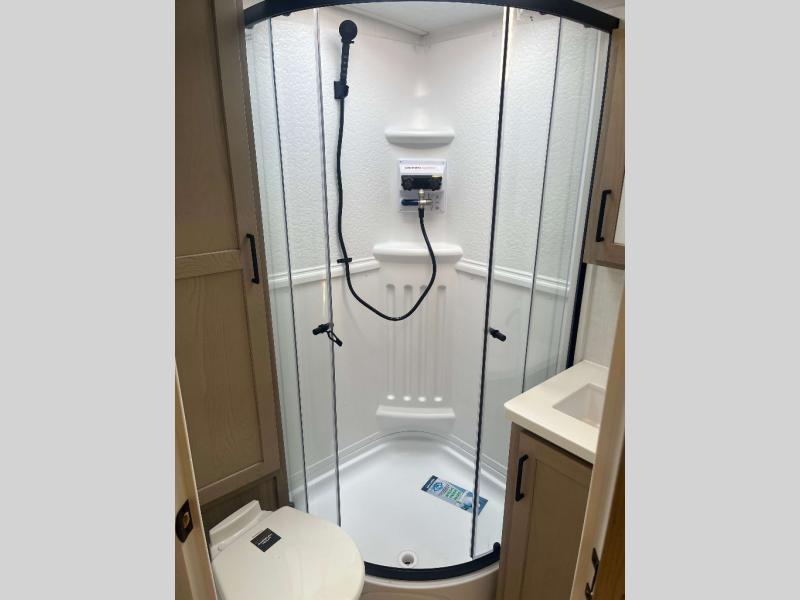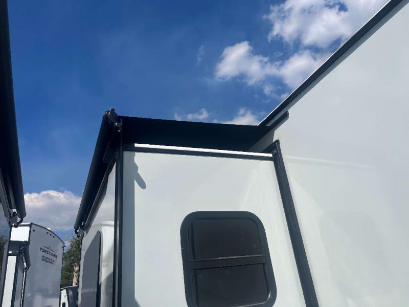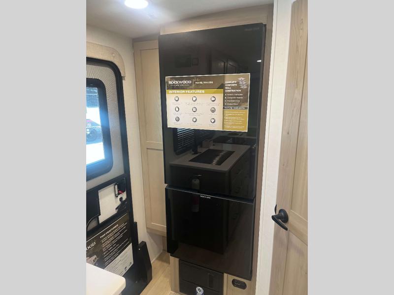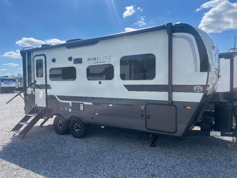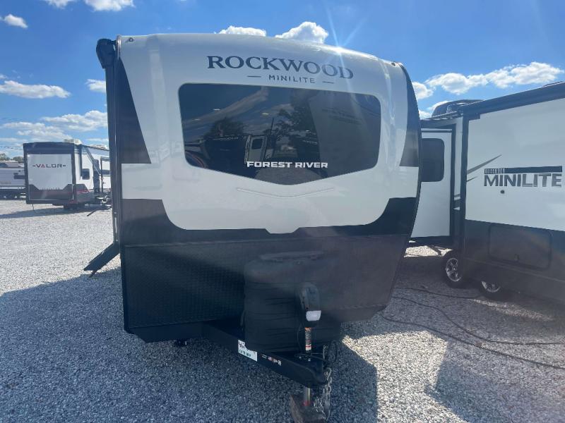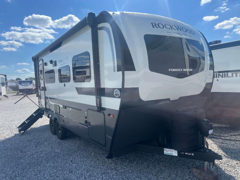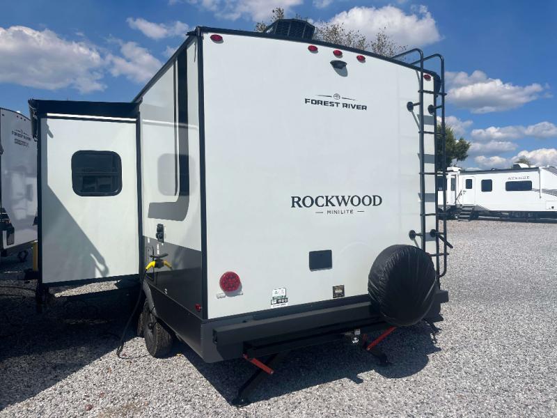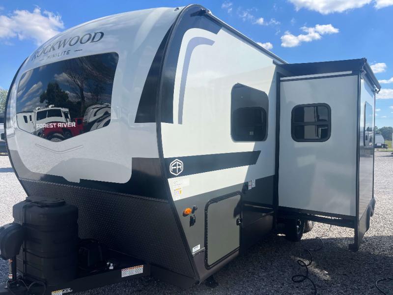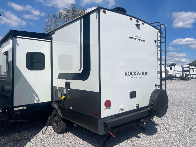 Each Rockwood Mini Lite travel trailer by Forest River is constructed with a fully laminated one-piece walkable roof, sleek frameless windows, and a six-sided full aluminum frame for strength and durability. The 12V thermostatically controlled heated tanks, plus radiant foil in the underbelly will allow you to camp well into the colder months, and the 200W roof solar panel will be perfect for a little off-gridding. Each model includes solid surface kitchen countertops, hidden hinge cabinet doors, roller shades, plus many more interior features. Having an AIR 360+ omnidirectional antenna with WiFi prep on board gives you the option to get some work done if it's needed, and the power tongue jack provides hassle-free set up, so you can enjoy more time relaxing!