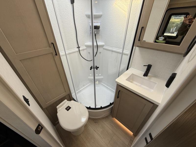 Each Rockwood Mini Lite travel trailer by Forest River is constructed with a fully laminated one-piece walkable roof, sleek frameless windows, and a six-sided full aluminum frame for strength and durability. The 12V thermostatically controlled heated tanks, plus radiant foil in the underbelly will allow you to camp well into the colder months, and the 200W roof solar panel will be perfect for a little off-gridding. Each model includes solid surface kitchen countertops, hidden hinge cabinet doors, roller shades, plus many more interior features. Having an AIR 360+ omnidirectional antenna with WiFi prep on board gives you the option to get some work done if it's needed, and the power tongue jack provides hassle-free set up, so you can enjoy more time relaxing!