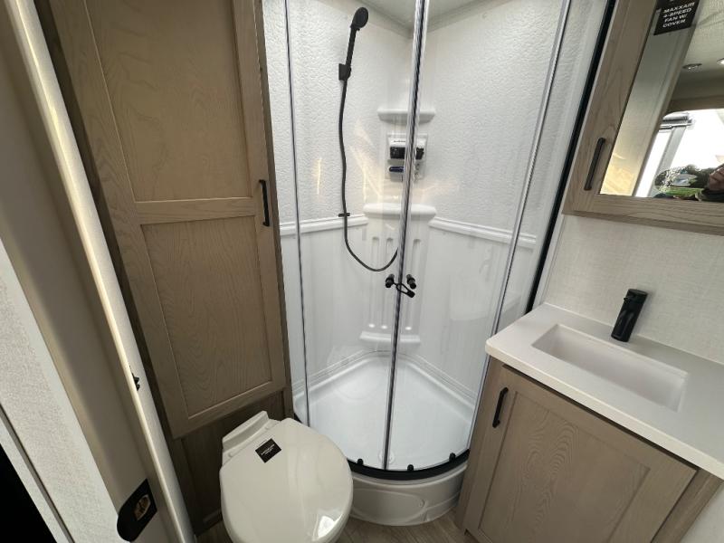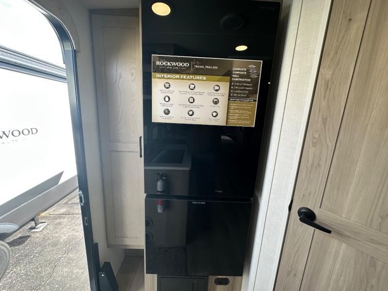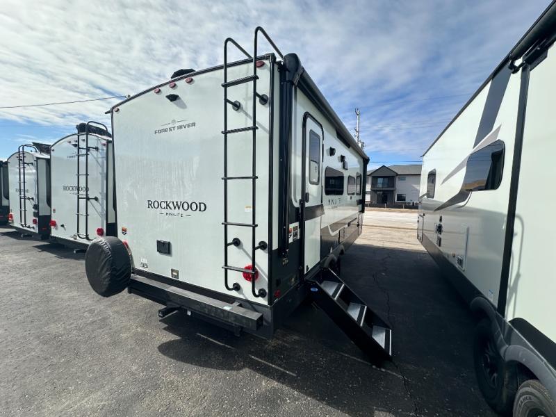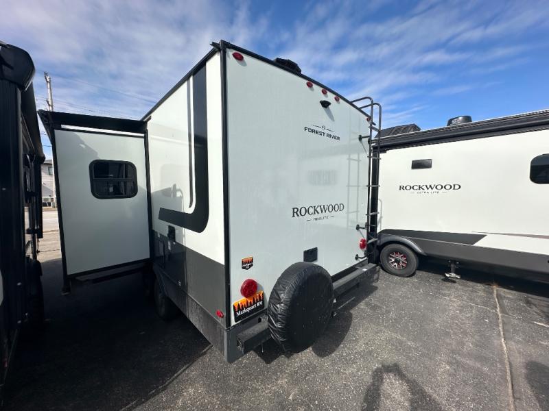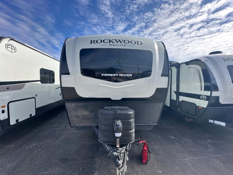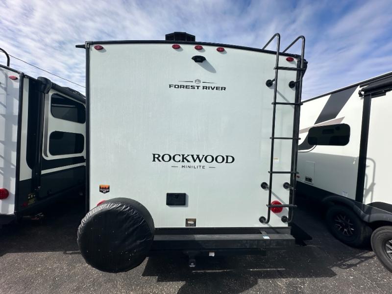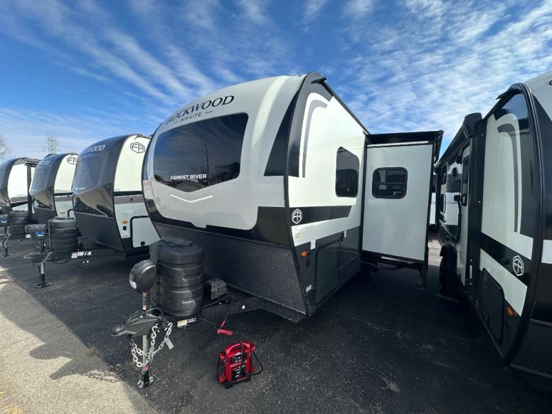 Each Rockwood Mini Lite travel trailer by Forest River is constructed with a fully laminated one-piece walkable roof, sleek frameless windows, and a six-sided full aluminum frame for strength and durability. The 12V thermostatically controlled heated tanks, plus radiant foil in the underbelly will allow you to camp well into the colder months, and the 200W roof solar panel will be perfect for a little off-gridding. Each model includes solid surface kitchen countertops, hidden hinge cabinet doors, roller shades, plus many more interior features. Having an AIR 360+ omnidirectional antenna with WiFi prep on board gives you the option to get some work done if it's needed, and the power tongue jack provides hassle-free set up, so you can enjoy more time relaxing!
