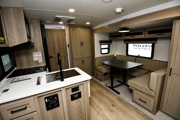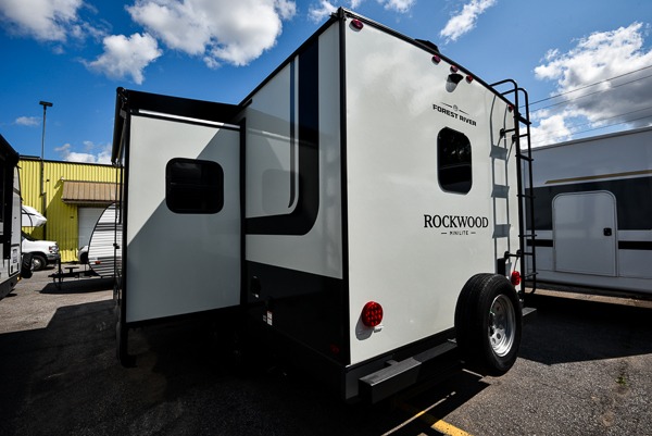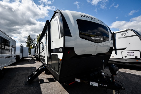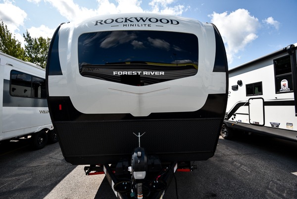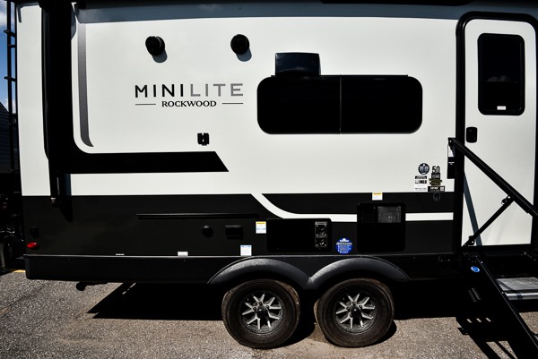 Each Rockwood Mini Lite travel trailer by Forest River is constructed with a fully laminated one-piece walkable roof, sleek frameless windows, and a six-sided full aluminum frame for strength and durability. The 12V thermostatically controlled heated tanks, plus radiant foil in the underbelly will allow you to camp well into the colder months, and the 200W roof solar panel will be perfect for a little off-gridding. Each model includes solid surface kitchen countertops, hidden hinge cabinet doors, roller shades, plus many more interior features. Having an AIR 360+ omnidirectional antenna with WiFi prep on board gives you the option to get some work done if it's needed, and the power tongue jack provides hassle-free set up, so you can enjoy more time relaxing!