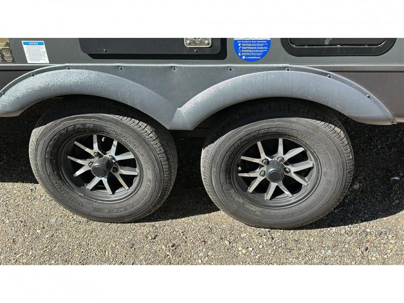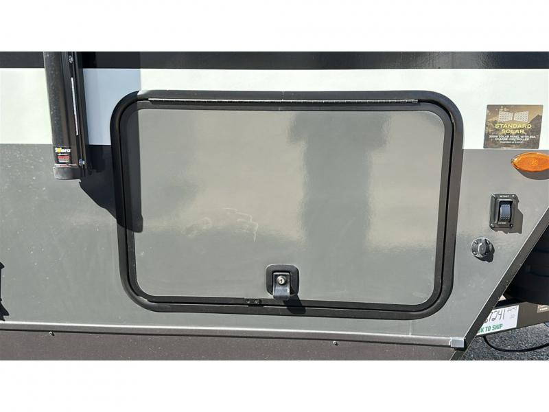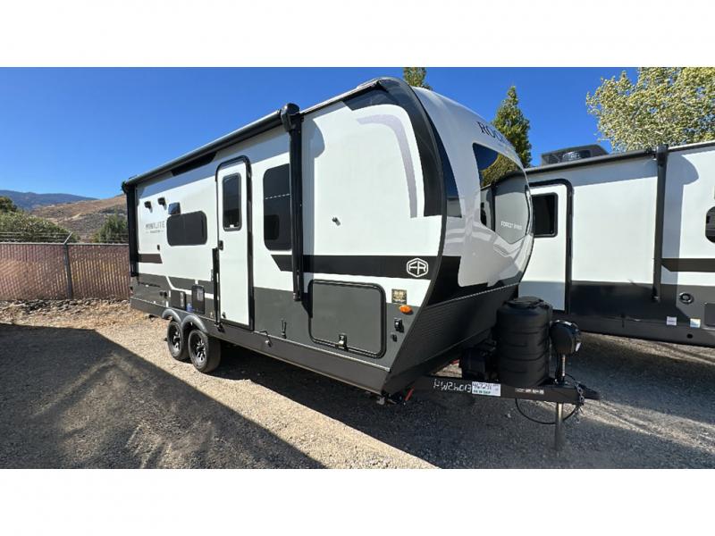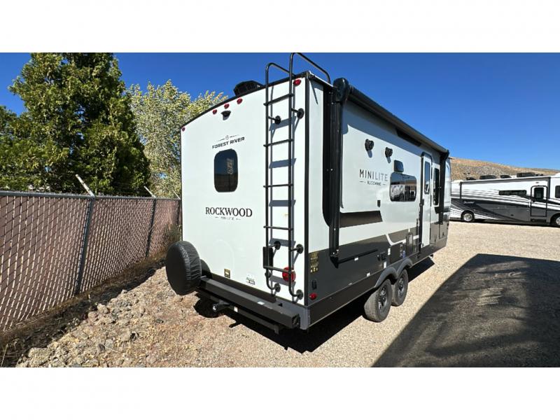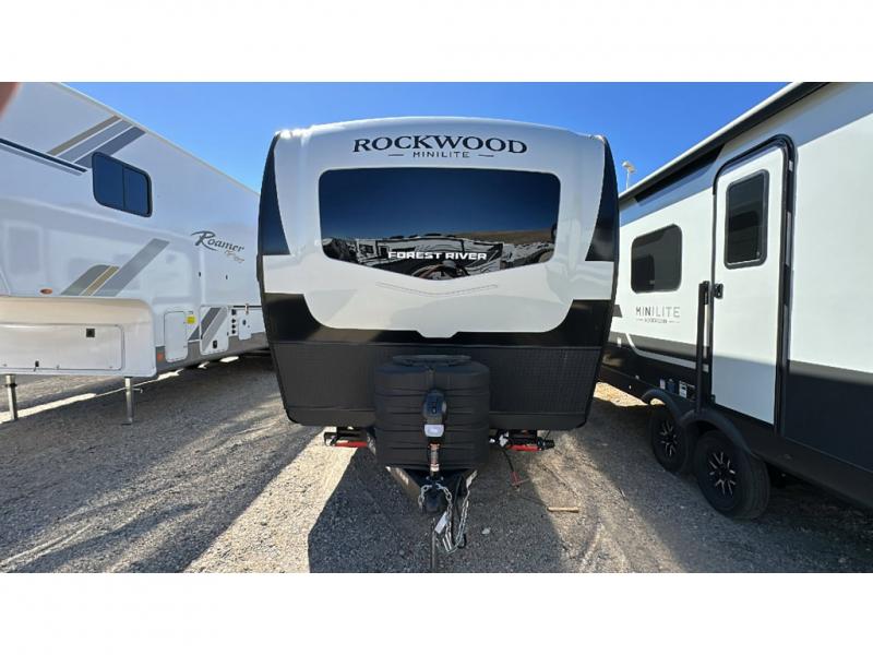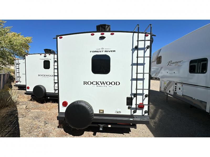Each Rockwood Mini Lite travel trailer by Forest River is constructed with a fully laminated one-piece walkable roof, sleek frameless windows, and a six-sided full aluminum frame for strength and durability. The 12V thermostatically controlled heated tanks, plus radiant foil in the underbelly will allow you to camp well into the colder months, and the 200W roof solar panel will be perfect for a little off-gridding. Each model includes solid surface kitchen countertops, hidden hinge cabinet doors, roller shades, plus many more interior features. Having an AIR 360+ omnidirectional antenna with WiFi prep on board gives you the option to get some work done if it's needed, and the power tongue jack provides hassle-free set up, so you can enjoy more time relaxing!
