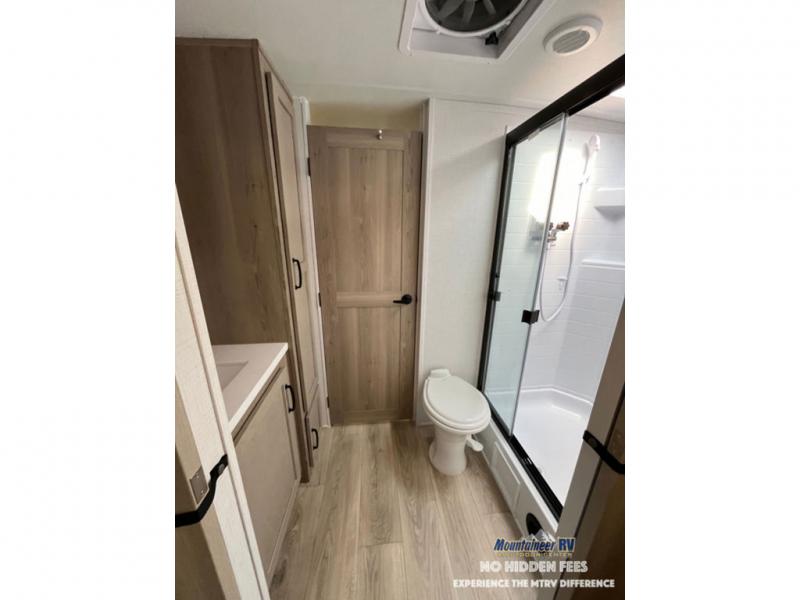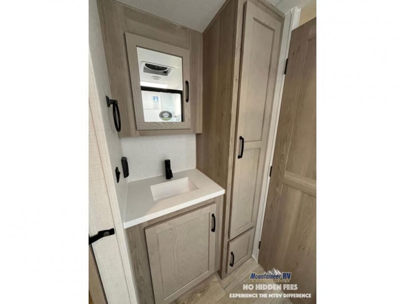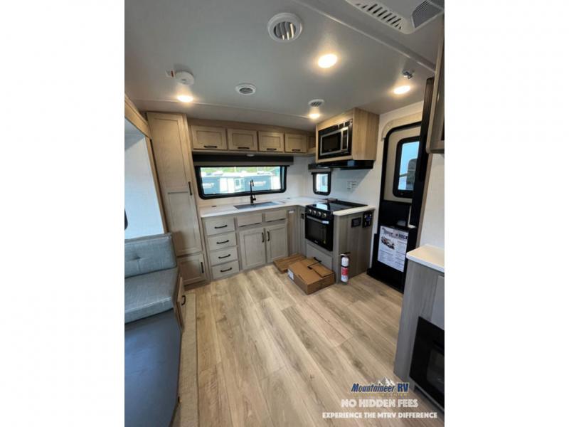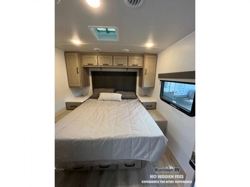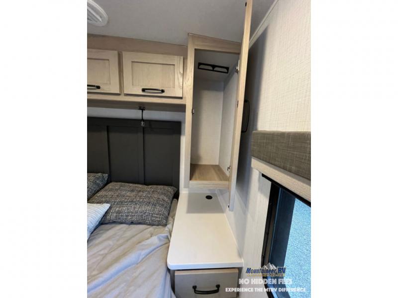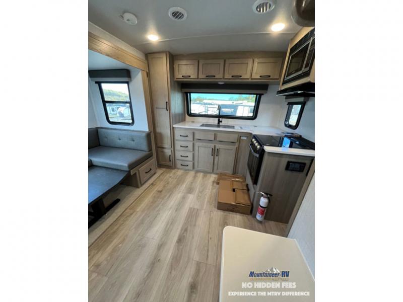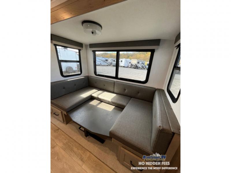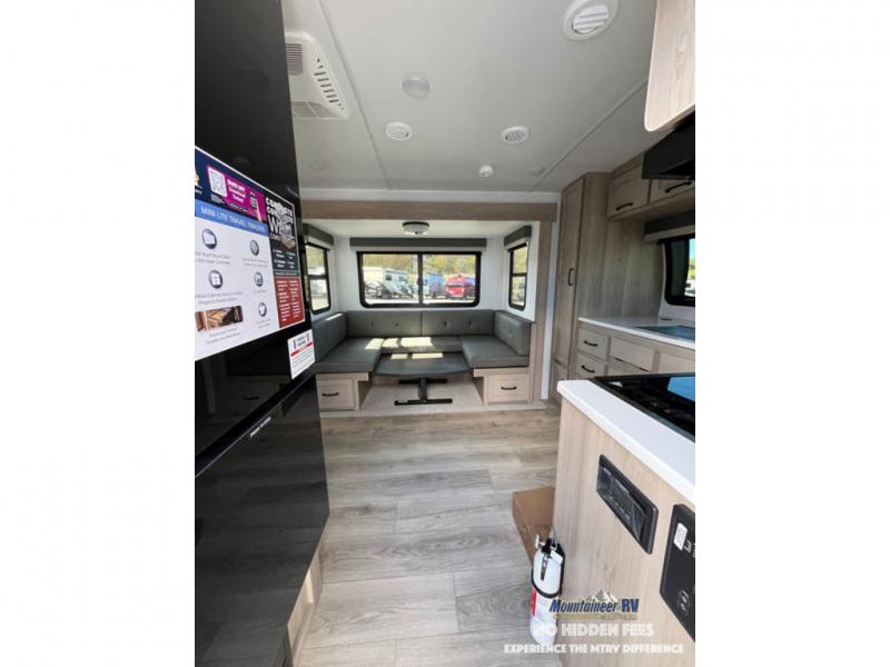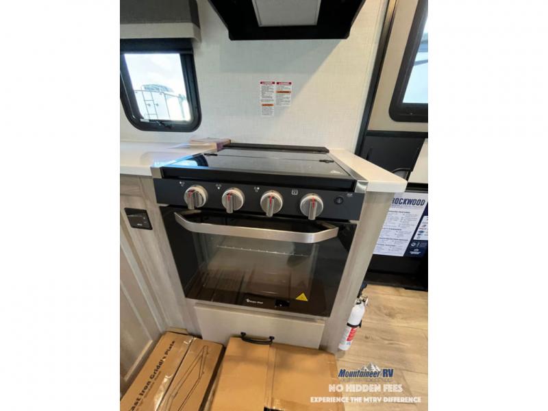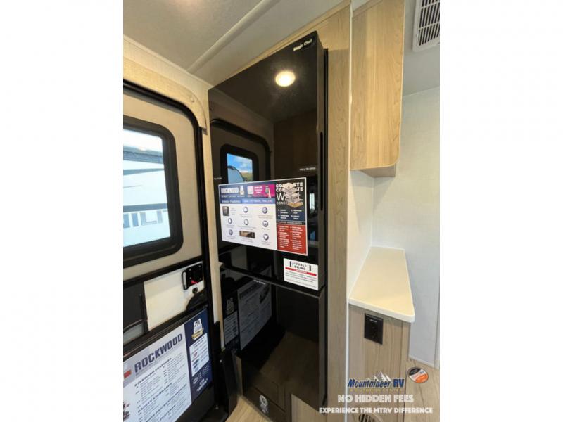 Each Rockwood Mini Lite travel trailer by Forest River is constructed with a fully laminated one-piece walkable roof, sleek frameless windows, and a six-sided full aluminum frame for strength and durability. The 12V thermostatically controlled heated tanks, plus radiant foil in the underbelly and slide out floors will allow you to camp well into the colder months, and the 200W roof solar panel will be perfect for a little off-gridding. Each model includes solid surface kitchen countertops, solid wood cabinet doors, night roller shades, plus many more interior features. Having an AIR 360+ omnidirectional antenna with WiFi prep on board gives you the option to get some work done if it's needed, and the power tongue jack provides hassle-free set up, so you can enjoy more time relaxing!