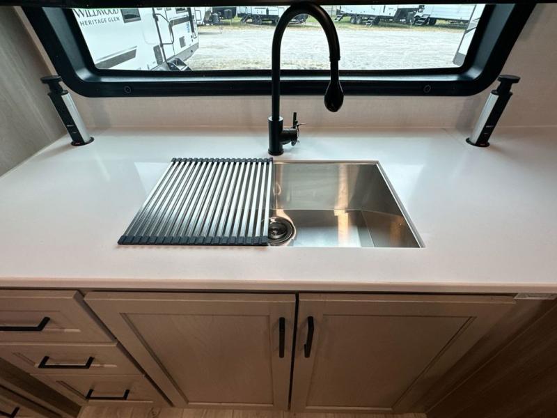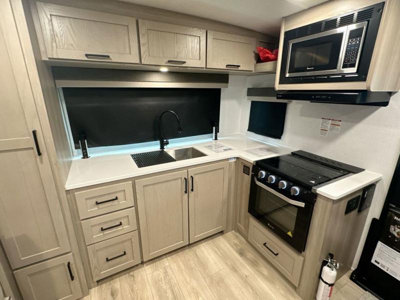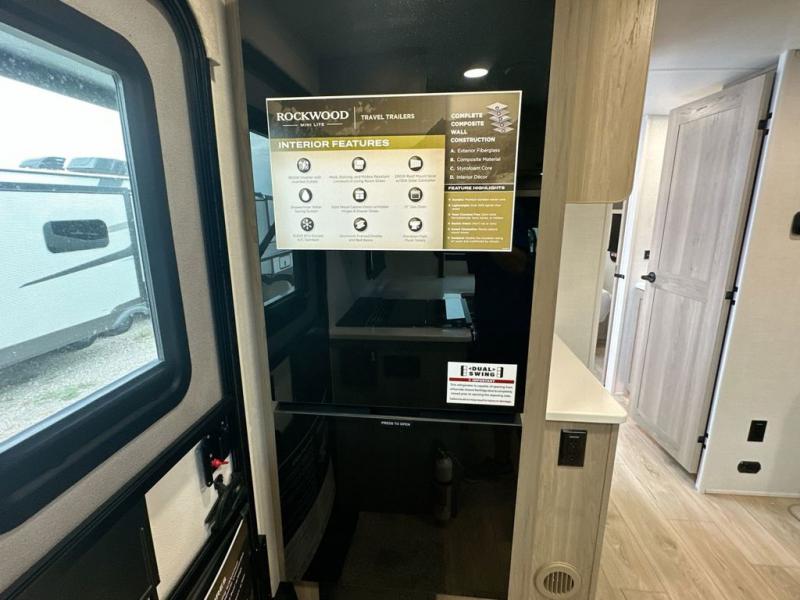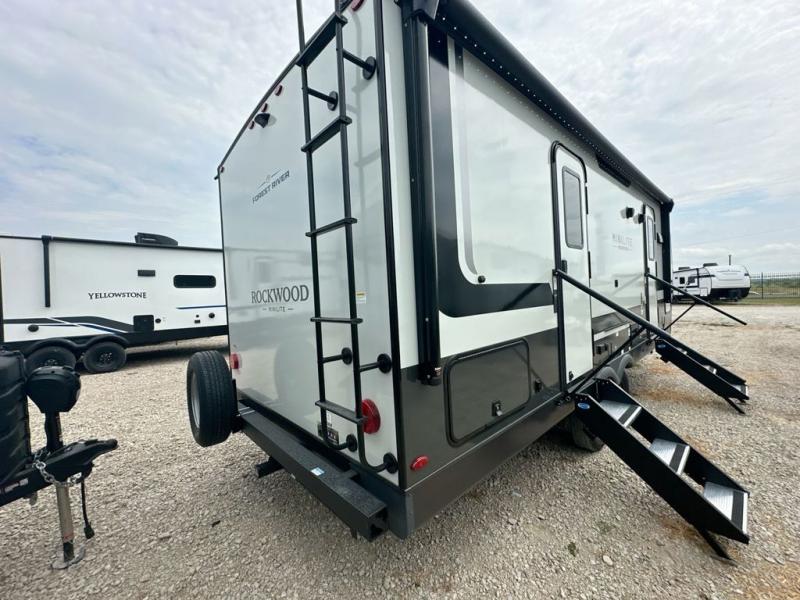 Each Rockwood Mini Lite travel trailer by Forest River is constructed with a fully laminated one-piece walkable roof, sleek frameless windows, and a six-sided full aluminum frame for strength and durability. The 12V thermostatically controlled heated tanks, plus radiant foil in the underbelly will allow you to camp well into the colder months, and the 200W roof solar panel will be perfect for a little off-gridding. Each model includes solid surface kitchen countertops, hidden hinge cabinet doors, roller shades, plus many more interior features. Having an AIR 360+ omnidirectional antenna with WiFi prep on board gives you the option to get some work done if it's needed, and the power tongue jack provides hassle-free set up, so you can enjoy more time relaxing!