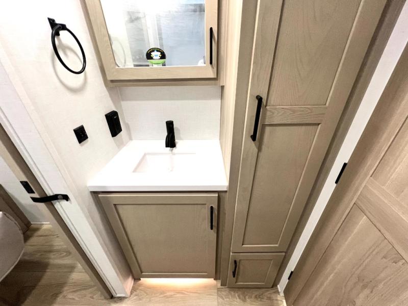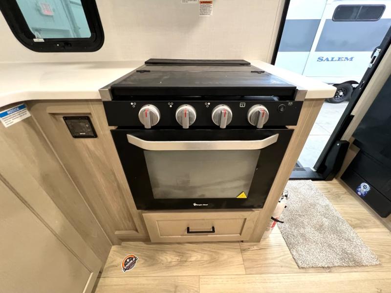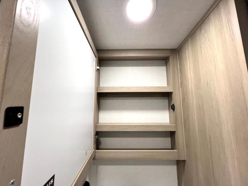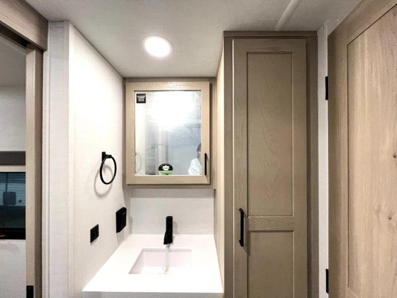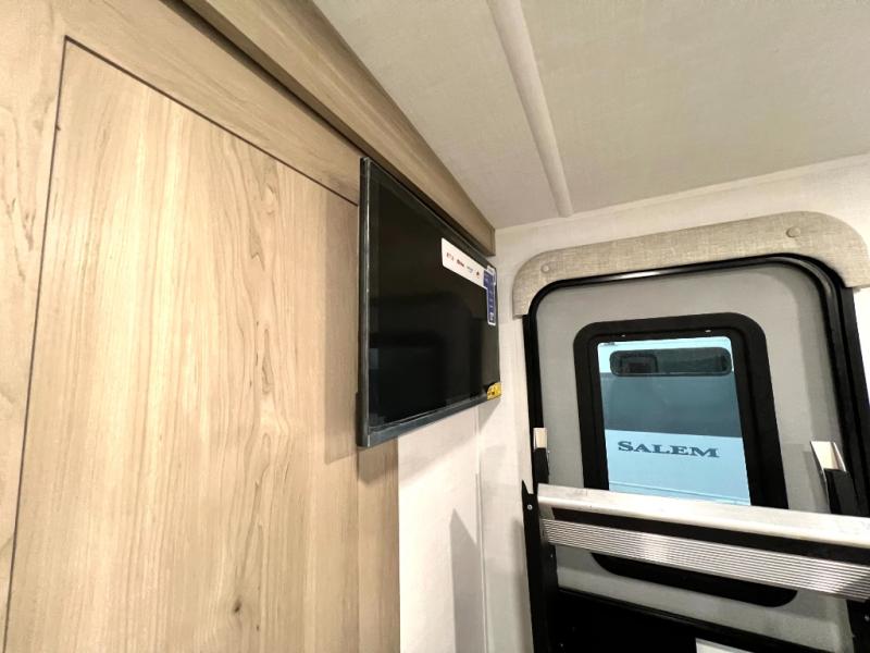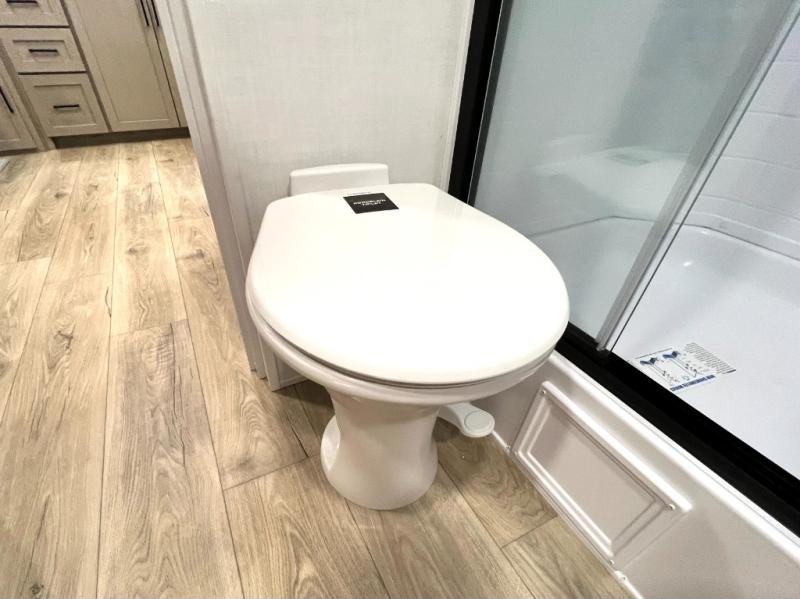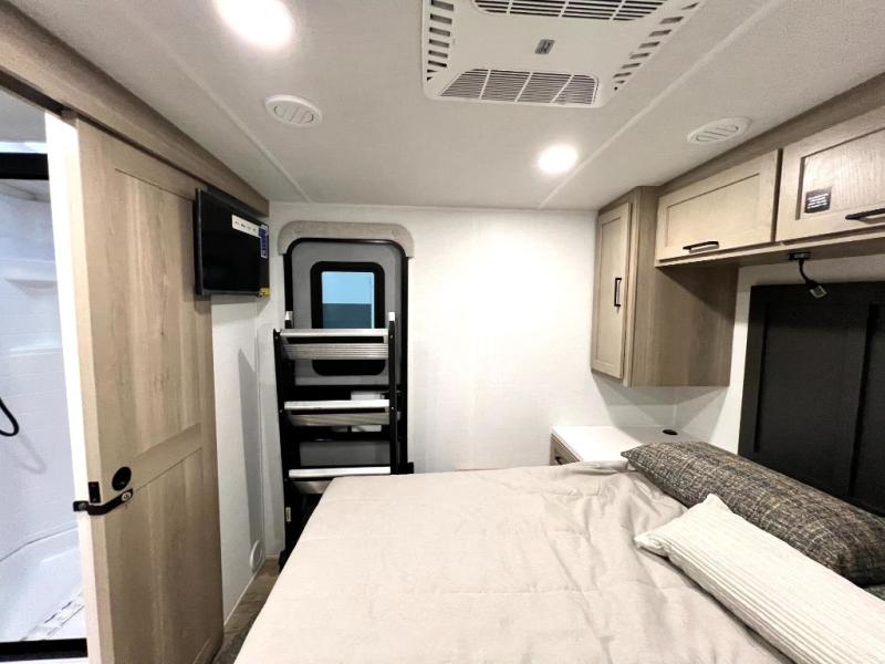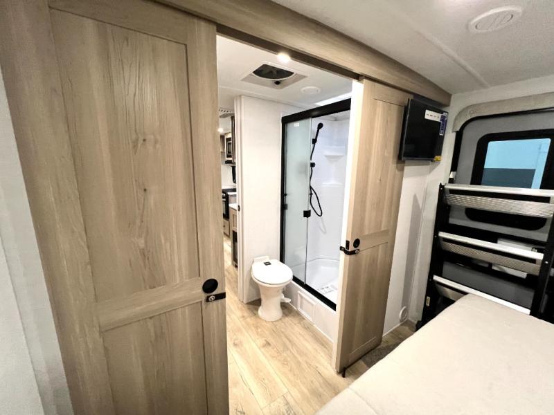 If you like the front kitchen layout, you're going to love this one! There is a 19' power awning with LED lights to keep you protected from the sun and rain, and there are three exterior storage compartments for lawn chairs, fishing poles, and firewood! This model includes a U-shaped dinette slide in perfect view of the 12V smart entertainment TV and fireplace, and this area can double as your guests' sleeping space at night. You'll stay comfortable in the rear bedroom that includes an RV queen bed, dual bedroom wardrobes, and an optional TV if you enjoy movies in bed!