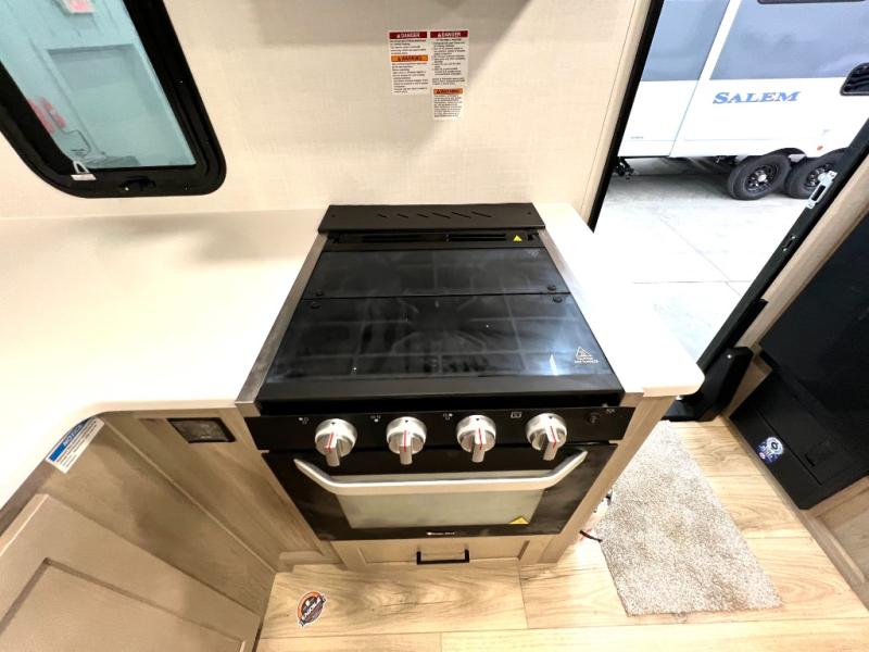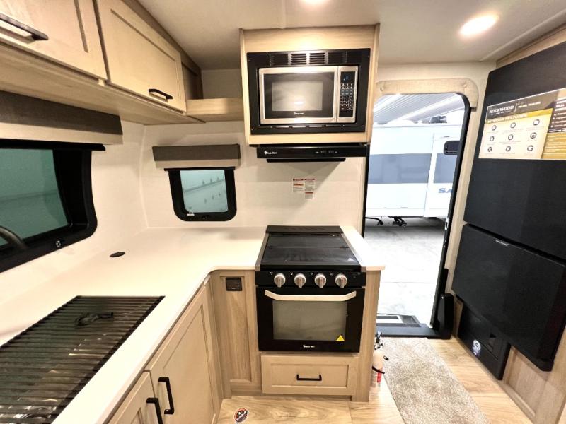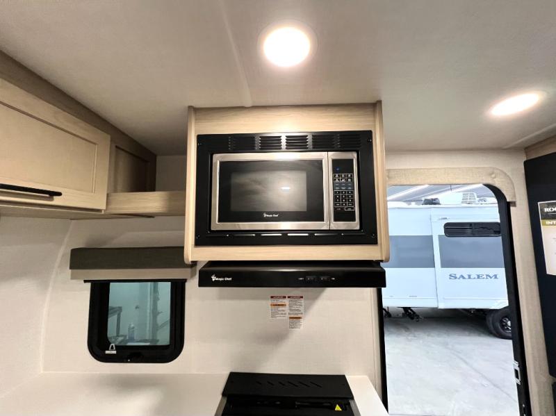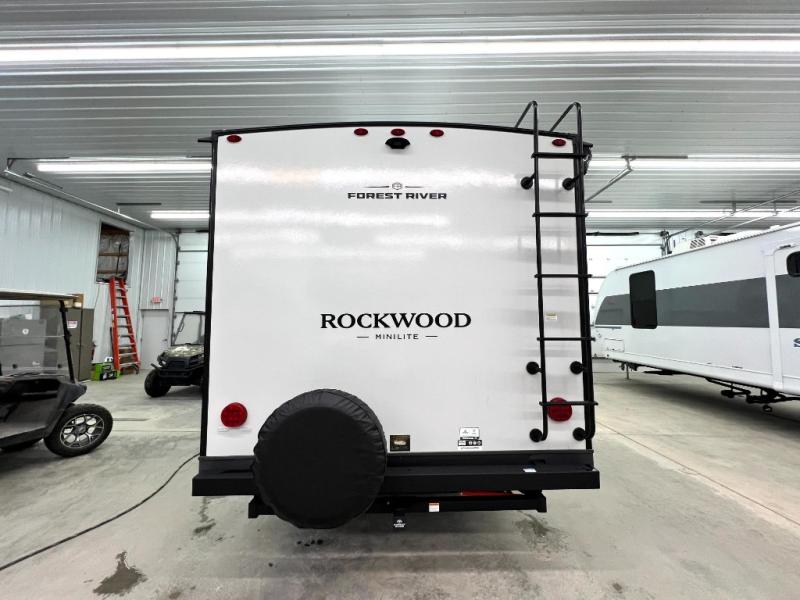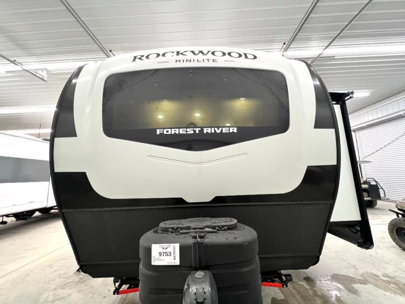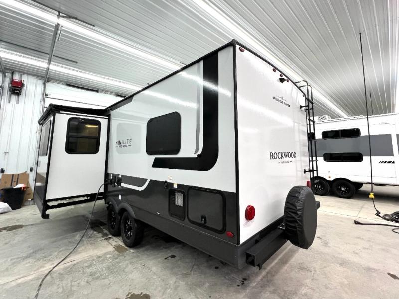 Each Rockwood Mini Lite travel trailer by Forest River is constructed with a fully laminated one-piece walkable roof, sleek frameless windows, and a six-sided full aluminum frame for strength and durability. The 12V thermostatically controlled heated tanks, plus radiant foil in the underbelly will allow you to camp well into the colder months, and the 200W roof solar panel will be perfect for a little off-gridding. Each model includes solid surface kitchen countertops, hidden hinge cabinet doors, roller shades, plus many more interior features. Having an AIR 360+ omnidirectional antenna with WiFi prep on board gives you the option to get some work done if it's needed, and the power tongue jack provides hassle-free set up, so you can enjoy more time relaxing!
