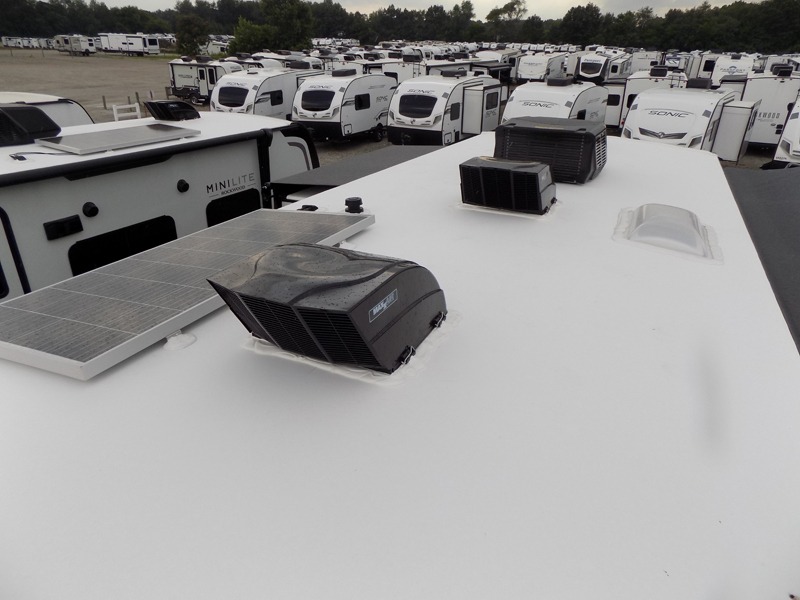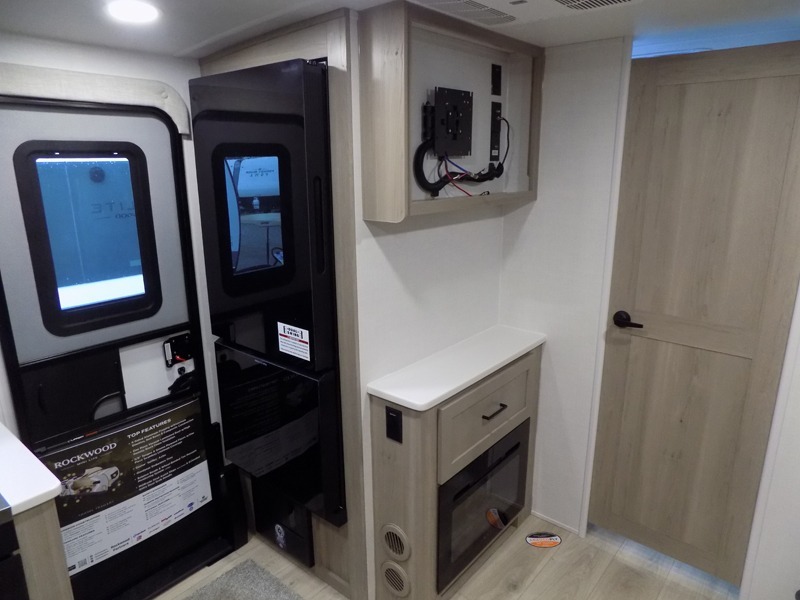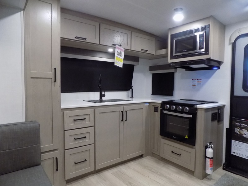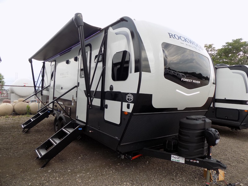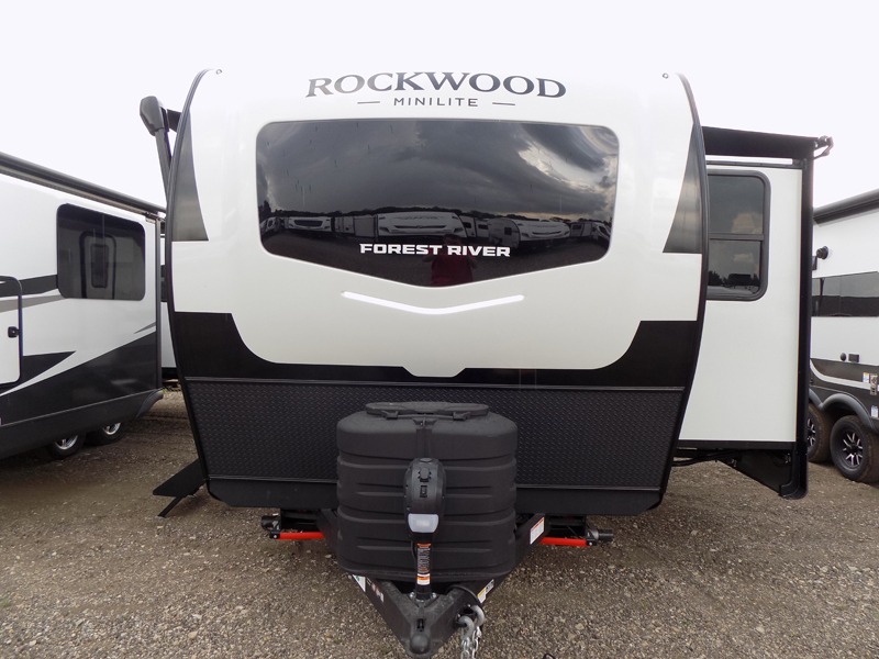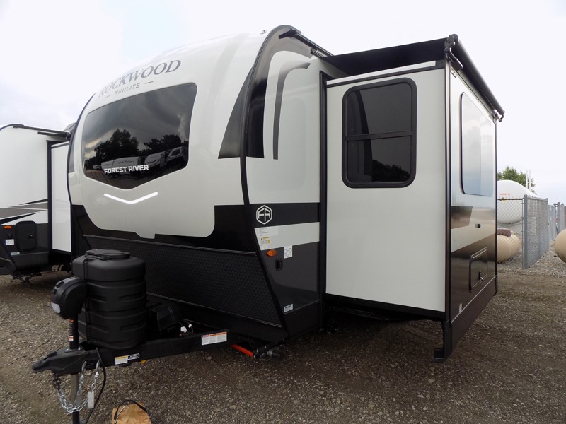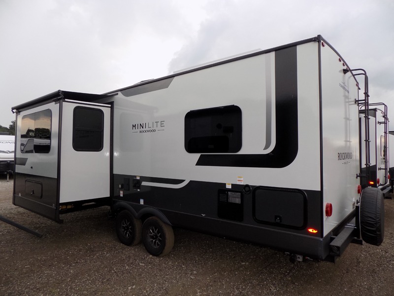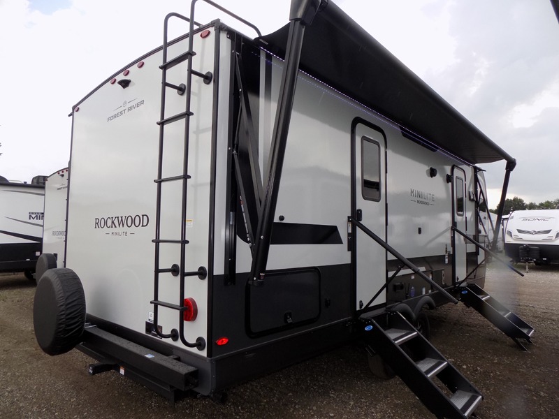 Each Rockwood Mini Lite travel trailer by Forest River is constructed with a fully laminated one-piece walkable roof, sleek frameless windows, and a six-sided full aluminum frame for strength and durability. The 12V thermostatically controlled heated tanks, plus radiant foil in the underbelly will allow you to camp well into the colder months, and the 200W roof solar panel will be perfect for a little off-gridding. Each model includes solid surface kitchen countertops, hidden hinge cabinet doors, roller shades, plus many more interior features. Having an AIR 360+ omnidirectional antenna with WiFi prep on board gives you the option to get some work done if it's needed, and the power tongue jack provides hassle-free set up, so you can enjoy more time relaxing!