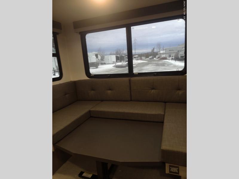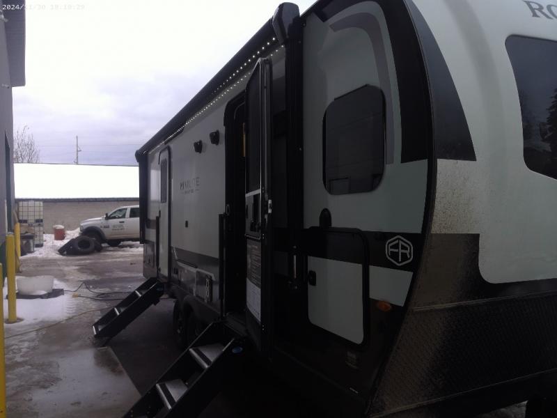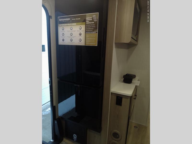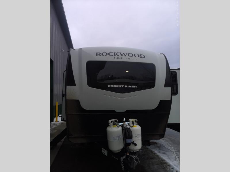 Each Rockwood Mini Lite travel trailer by Forest River is constructed with a fully laminated one-piece walkable roof, sleek frameless windows, and a six-sided full aluminum frame for strength and durability. The 12V thermostatically controlled heated tanks, plus radiant foil in the underbelly will allow you to camp well into the colder months, and the 200W roof solar panel will be perfect for a little off-gridding. Each model includes solid surface kitchen countertops, hidden hinge cabinet doors, roller shades, plus many more interior features. Having an AIR 360+ omnidirectional antenna with WiFi prep on board gives you the option to get some work done if it's needed, and the power tongue jack provides hassle-free set up, so you can enjoy more time relaxing!