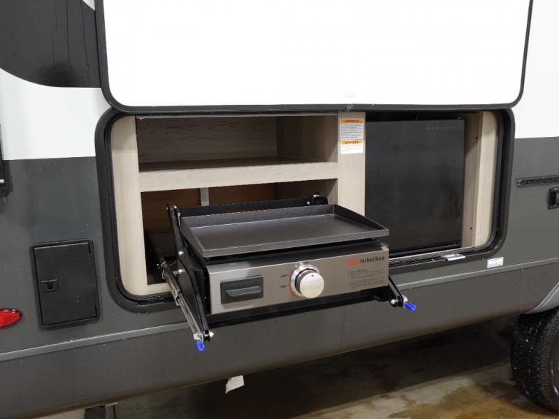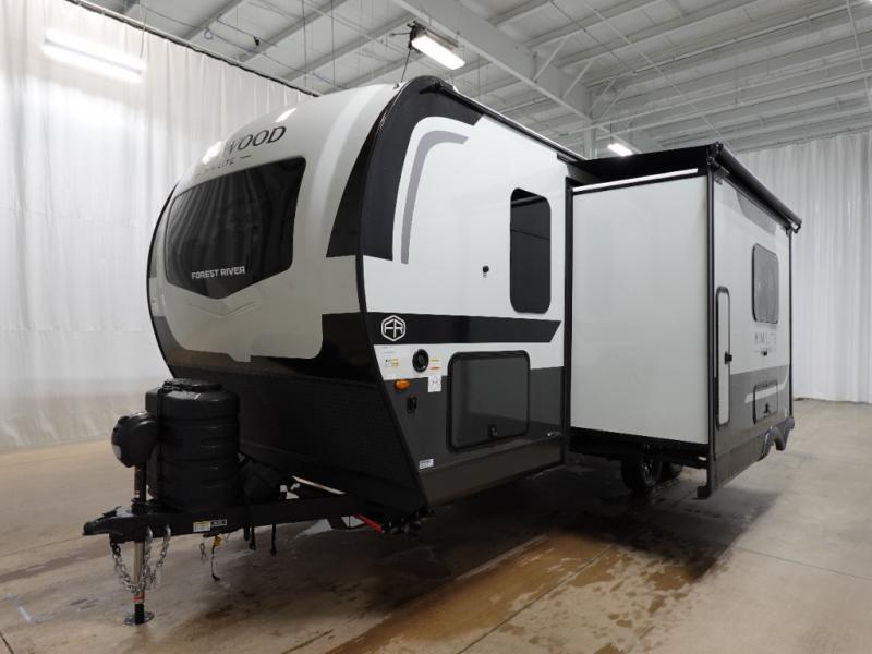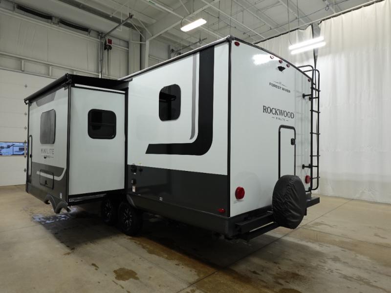 Each Rockwood Mini Lite travel trailer by Forest River is constructed with a fully laminated one-piece walkable roof, sleek frameless windows, and a six-sided full aluminum frame for strength and durability. The 12V thermostatically controlled heated tanks, plus radiant foil in the underbelly and slide out floors will allow you to camp well into the colder months, and the 200W roof solar panel will be perfect for a little off-gridding. Each model includes solid surface kitchen countertops, solid wood cabinet doors, night roller shades, plus many more interior features. Having an AIR 360+ omnidirectional antenna with WiFi prep on board gives you the option to get some work done if it's needed, and the power tongue jack provides hassle-free set up, so you can enjoy more time relaxing!