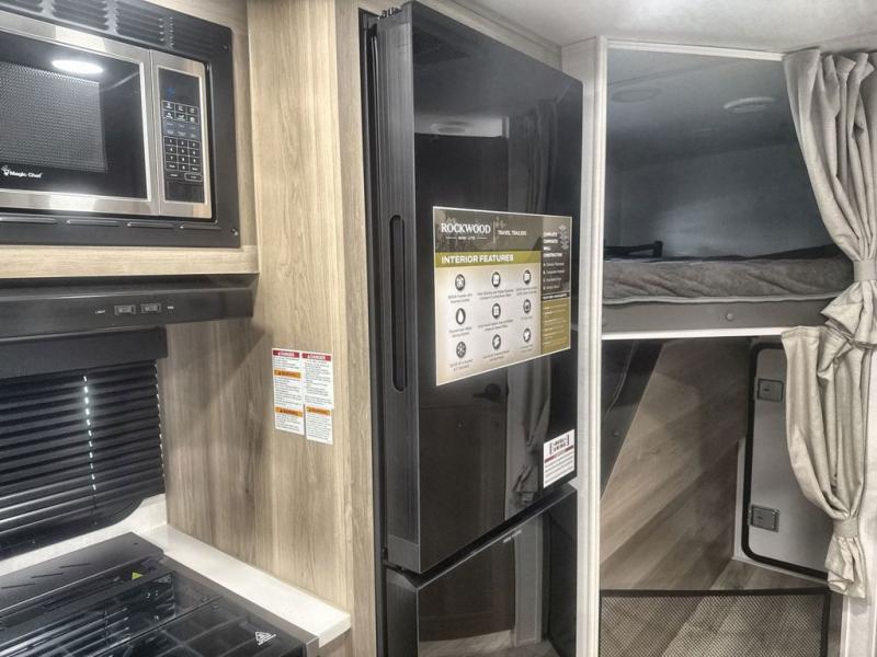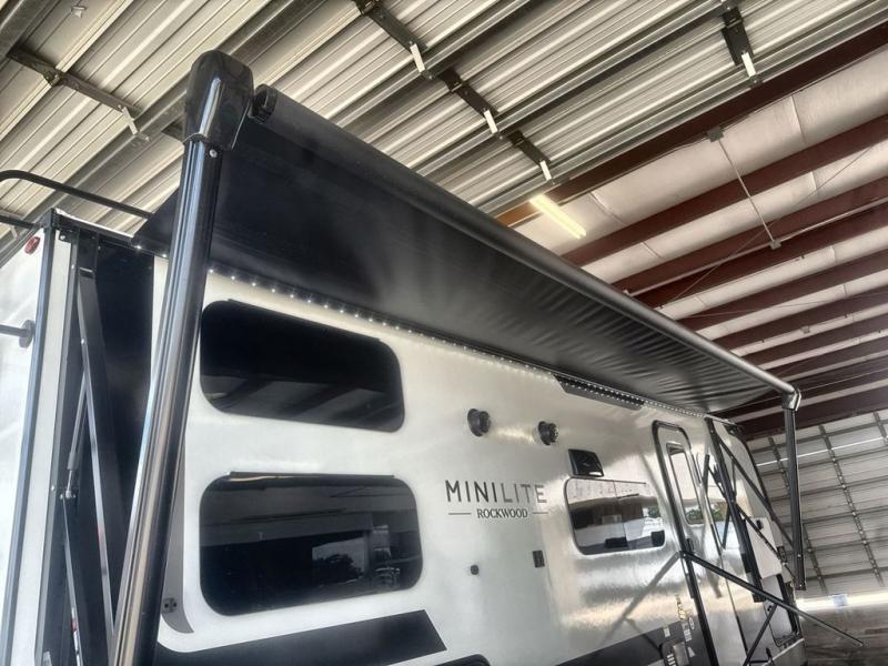 Each Rockwood Mini Lite travel trailer by Forest River is constructed with a fully laminated one-piece walkable roof, sleek frameless windows, and a six-sided full aluminum frame for strength and durability. The 12V thermostatically controlled heated tanks, plus radiant foil in the underbelly will allow you to camp well into the colder months, and the 200W roof solar panel will be perfect for a little off-gridding. Each model includes solid surface kitchen countertops, hidden hinge cabinet doors, roller shades, plus many more interior features. Having an AIR 360+ omnidirectional antenna with WiFi prep on board gives you the option to get some work done if it's needed, and the power tongue jack provides hassle-free set up, so you can enjoy more time relaxing!
