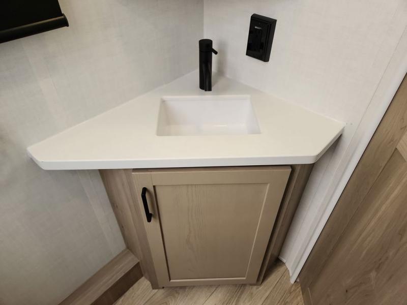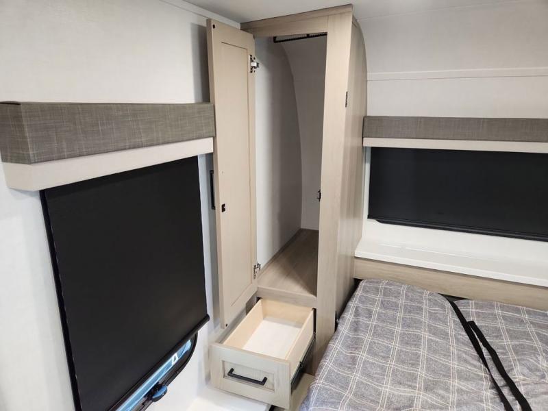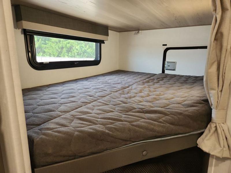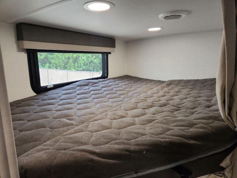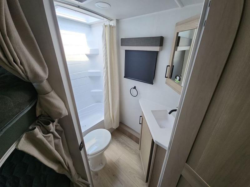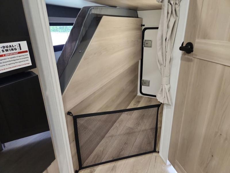 Finally, a lightweight travel trailer with double-size bunks for the kids or your guests! You'll find the versatile Murphy bed up front will be super convenient when you need more space to move around, and the 72" sofa will provide comfy seating space when the bed is put up. This model also includes a U-shaped dinette slide perfect to dine around, play games, and sleep additional guests. A 32" TV in the main living area will allow you to watch your favorite shows in the evenings, or you may just find yourselves outdoors under the 18' power awning with LED lights. And check out the pass-through storage, plus additional exterior storage for your hiking gear!