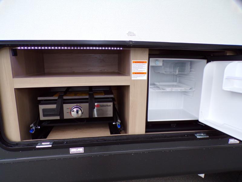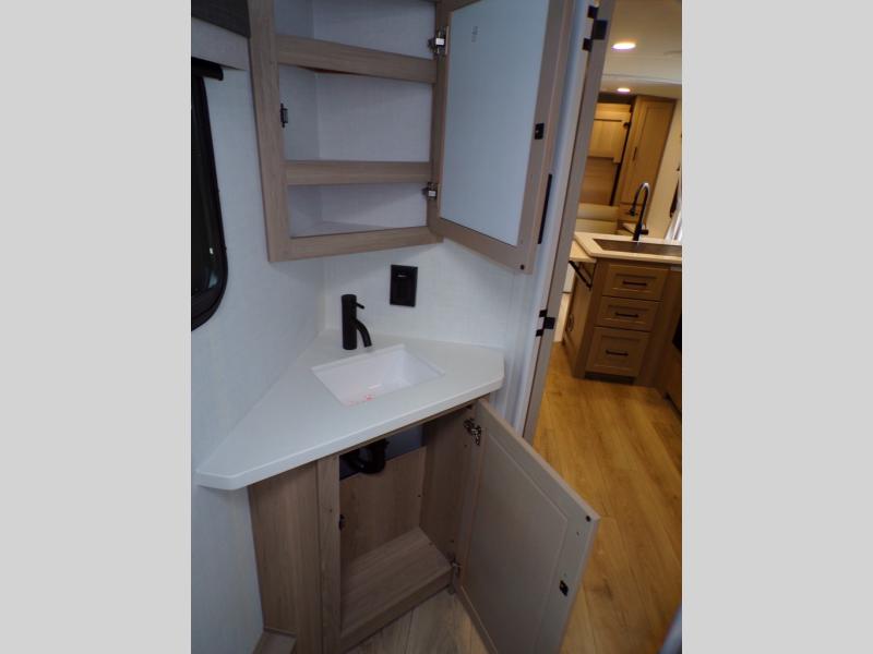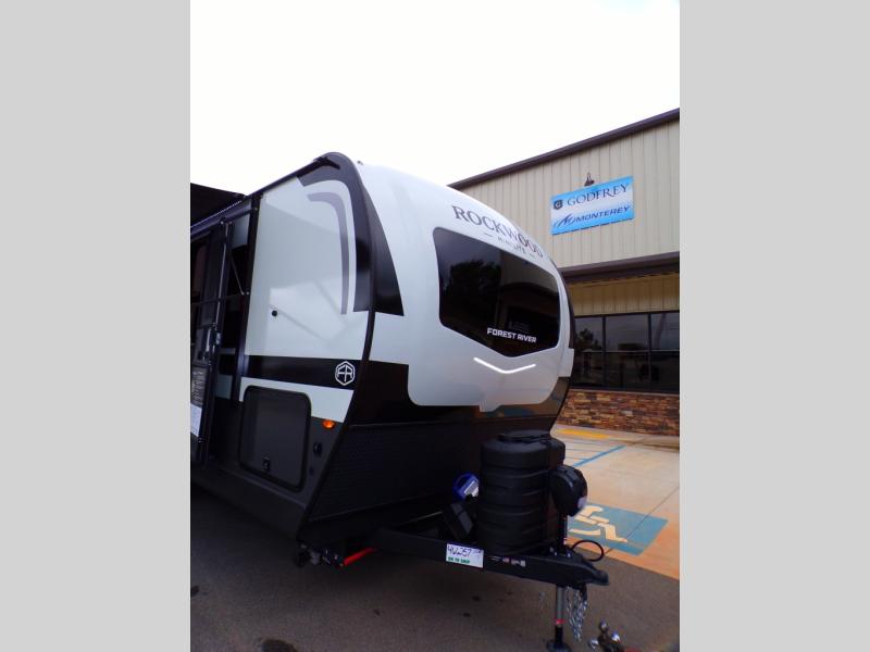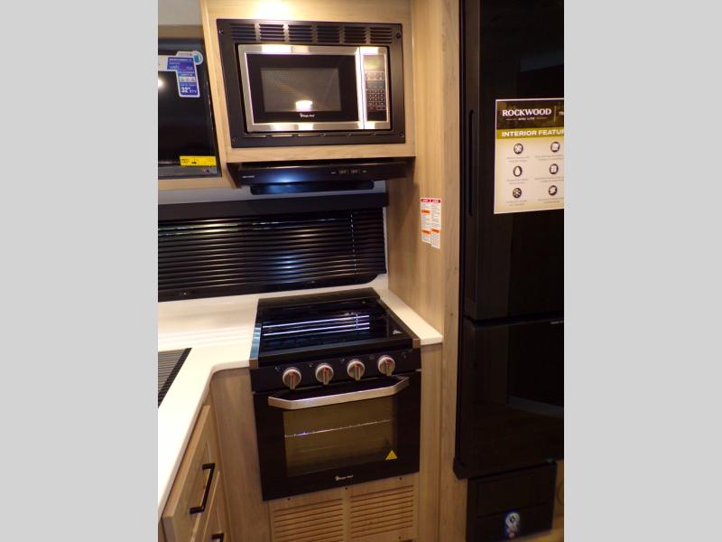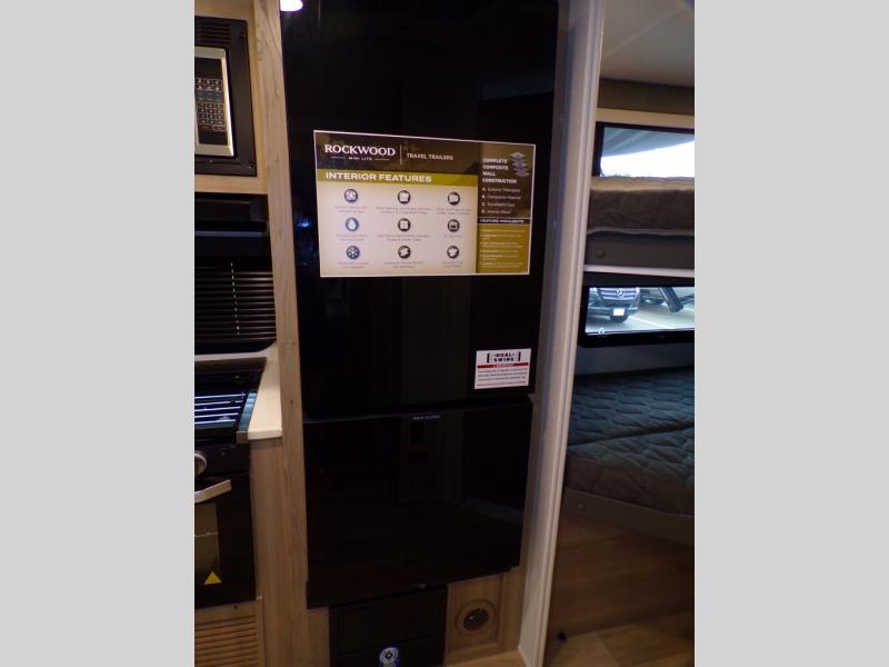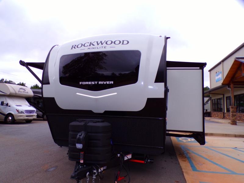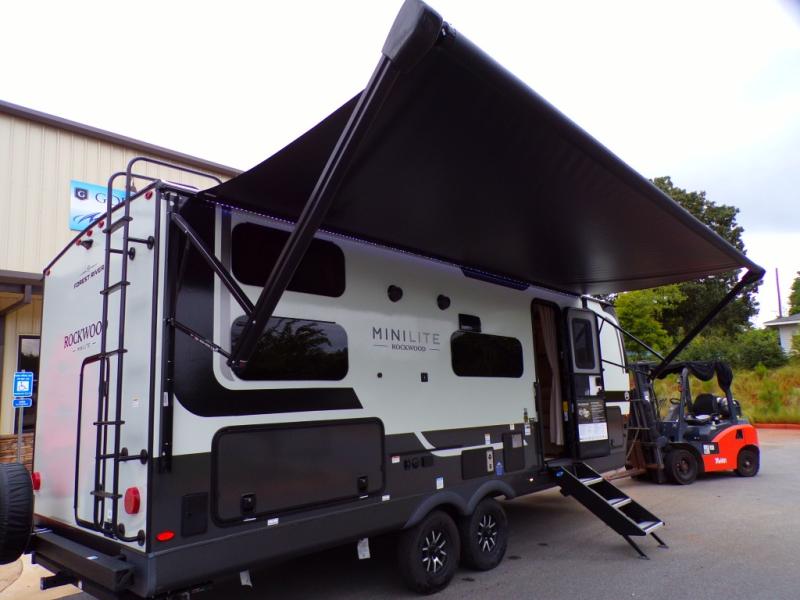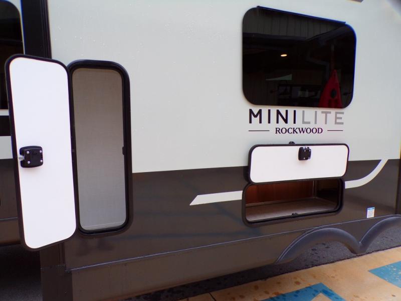 Each Rockwood Mini Lite travel trailer by Forest River is constructed with a fully laminated one-piece walkable roof, sleek frameless windows, and a six-sided full aluminum frame for strength and durability. The 12V thermostatically controlled heated tanks, plus radiant foil in the underbelly will allow you to camp well into the colder months, and the 200W roof solar panel will be perfect for a little off-gridding. Each model includes solid surface kitchen countertops, hidden hinge cabinet doors, roller shades, plus many more interior features. Having an AIR 360+ omnidirectional antenna with WiFi prep on board gives you the option to get some work done if it's needed, and the power tongue jack provides hassle-free set up, so you can enjoy more time relaxing!