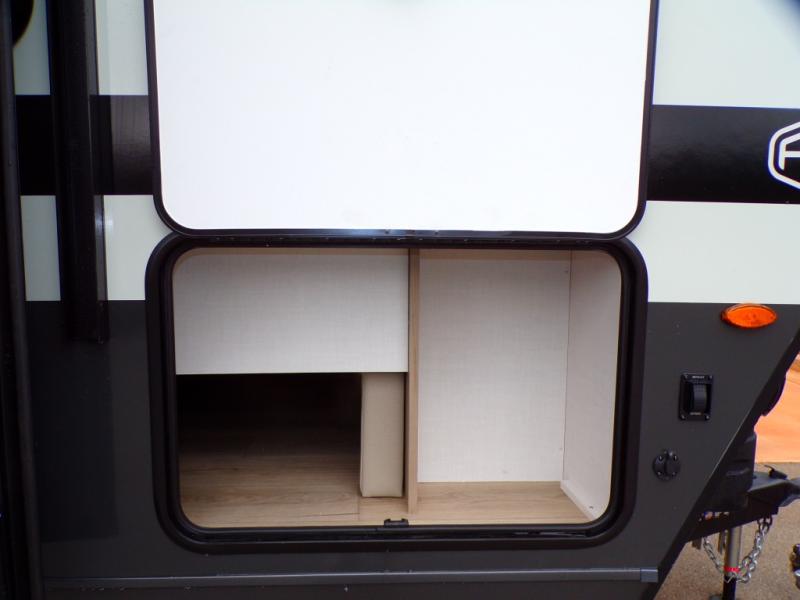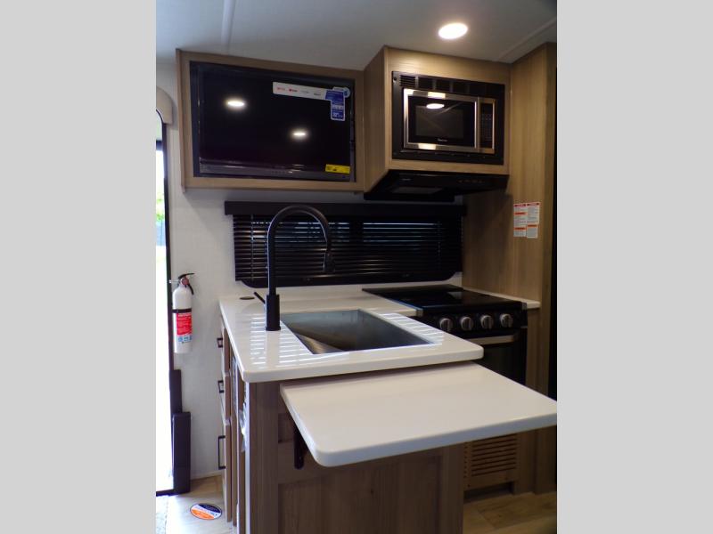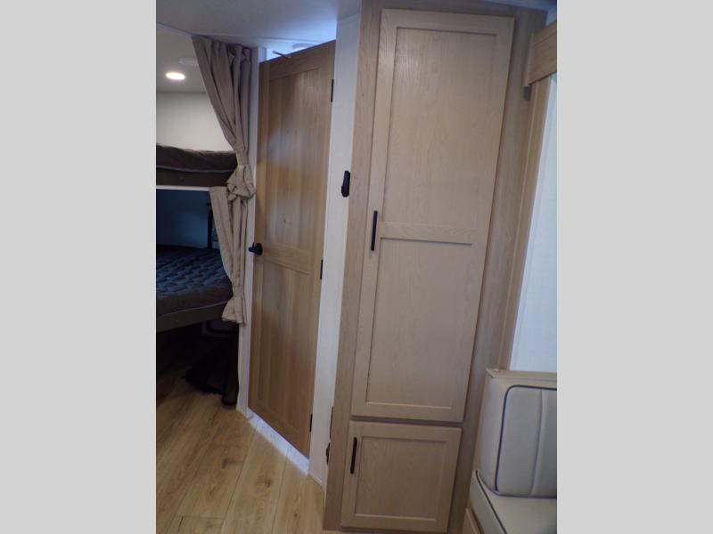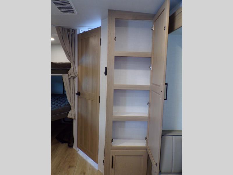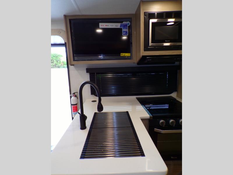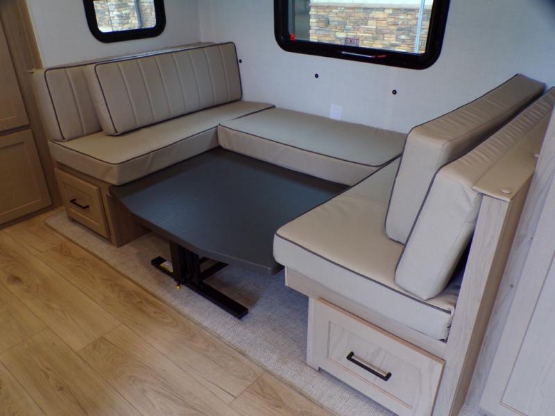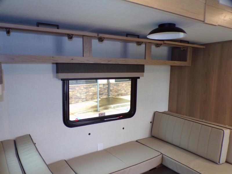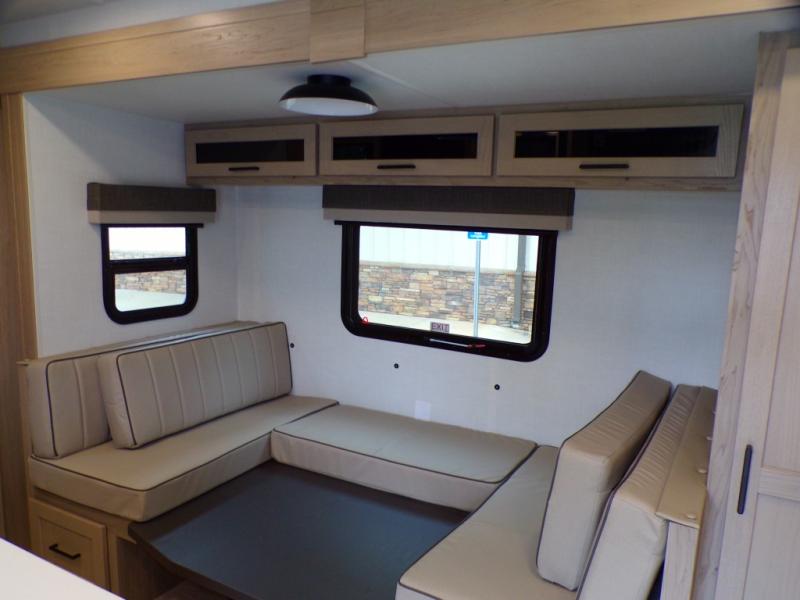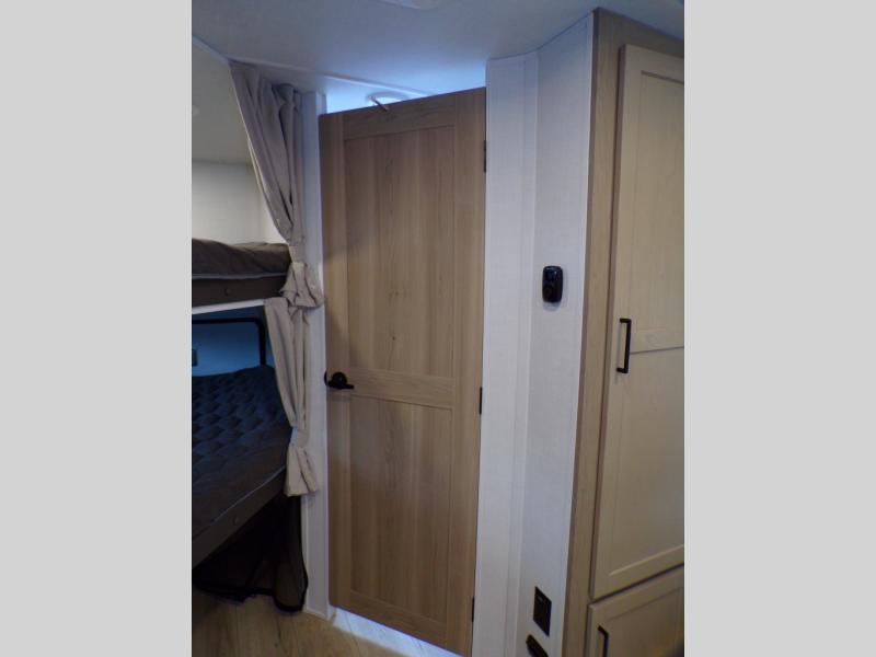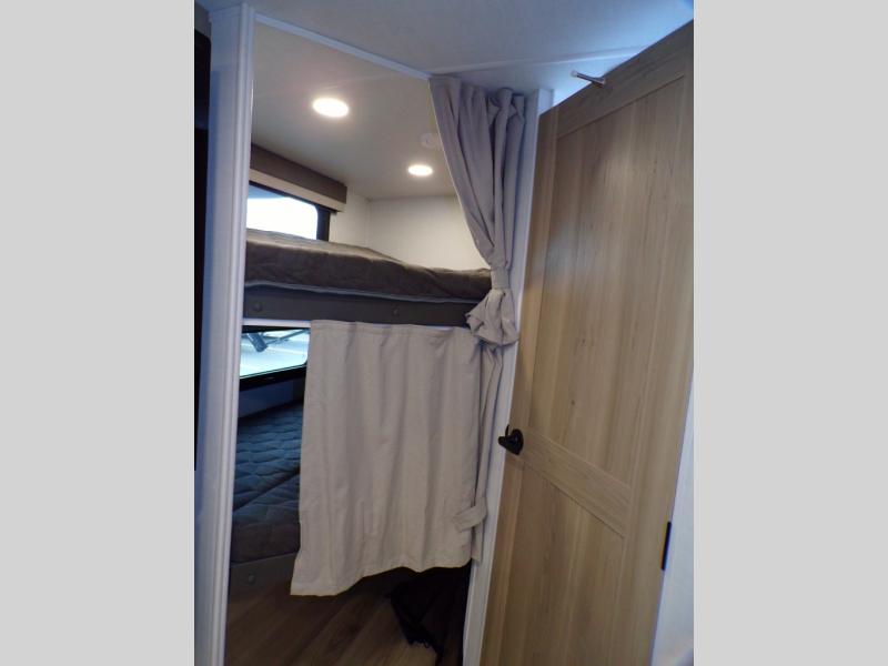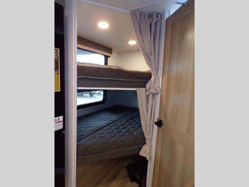 Finally, a lightweight travel trailer with double-size bunks for the kids or your guests! You'll find the versatile Murphy bed up front will be super convenient when you need more space to move around, and the 72" sofa will provide comfy seating space when the bed is put up. This model also includes a U-shaped dinette slide perfect to dine around, play games, and sleep additional guests. A 32" TV in the main living area will allow you to watch your favorite shows in the evenings, or you may just find yourselves outdoors under the 18' power awning with LED lights. And check out the pass-through storage, plus additional exterior storage for your hiking gear!