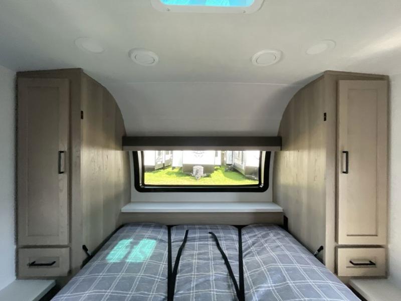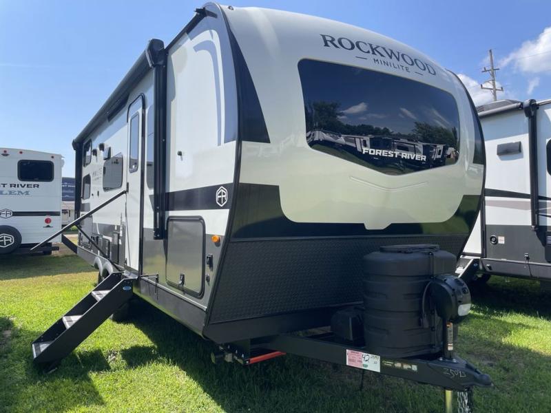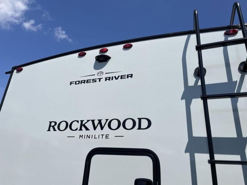 Each Rockwood Mini Lite travel trailer by Forest River is constructed with a fully laminated one-piece walkable roof, sleek frameless windows, and a six-sided full aluminum frame for strength and durability. The 12V thermostatically controlled heated tanks, plus radiant foil in the underbelly will allow you to camp well into the colder months, and the 200W roof solar panel will be perfect for a little off-gridding. Each model includes solid surface kitchen countertops, hidden hinge cabinet doors, roller shades, plus many more interior features. Having an AIR 360+ omnidirectional antenna with WiFi prep on board gives you the option to get some work done if it's needed, and the power tongue jack provides hassle-free set up, so you can enjoy more time relaxing!