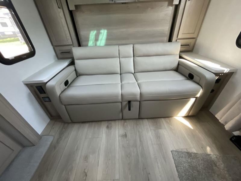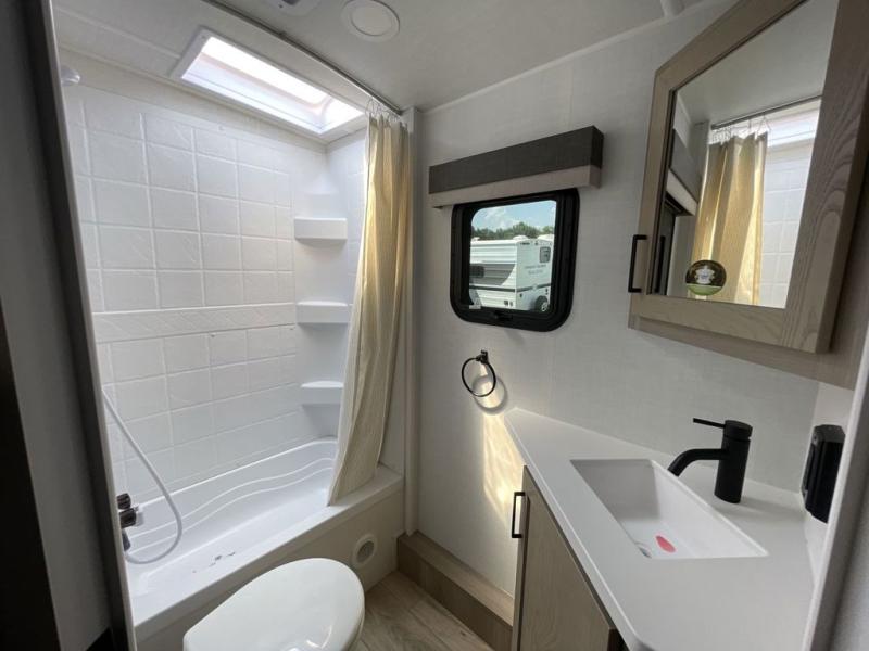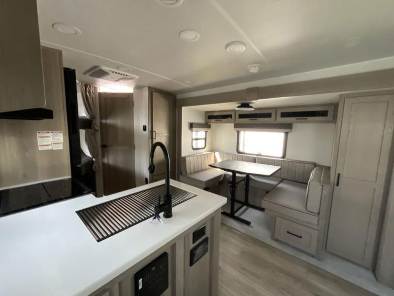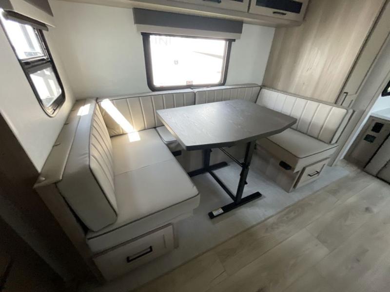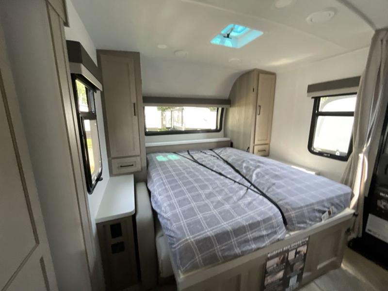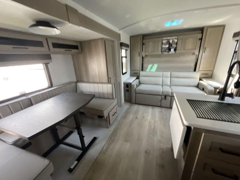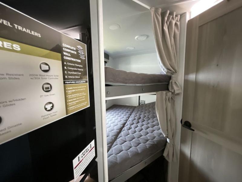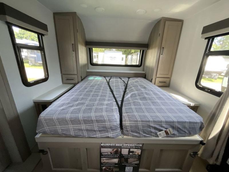 Finally, a lightweight travel trailer with double-size bunks for the kids or your guests! You'll find the versatile Murphy bed up front will be super convenient when you need more space to move around, and the 72" sofa will provide comfy seating space when the bed is put up. This model also includes a U-shaped dinette slide perfect to dine around, play games, and sleep additional guests. A 32" TV in the main living area will allow you to watch your favorite shows in the evenings, or you may just find yourselves outdoors under the 18' power awning with LED lights. And check out the pass-through storage, plus additional exterior storage for your hiking gear!